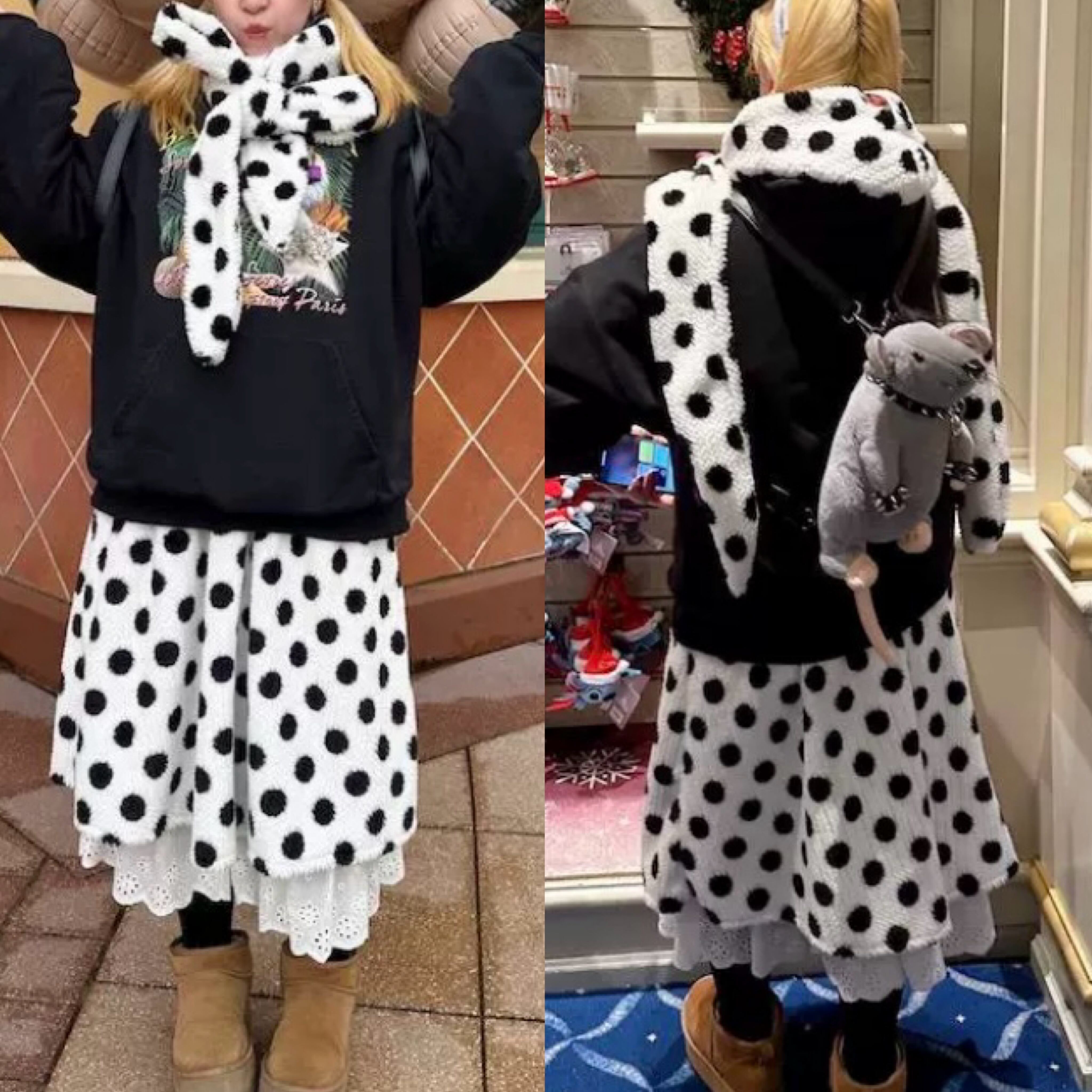 【スカート】水玉 ドット 白 黒 ボトムス 可愛い 原宿 ガーリー ふわふわ
