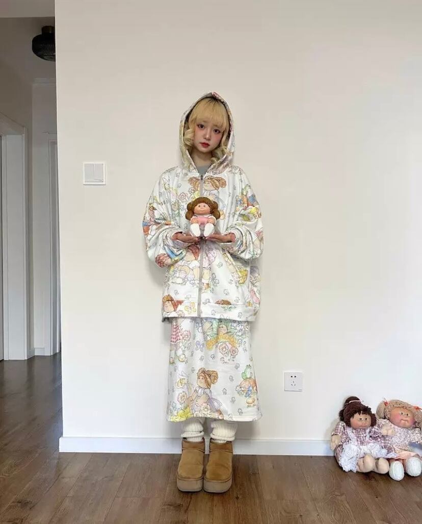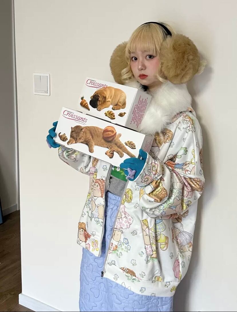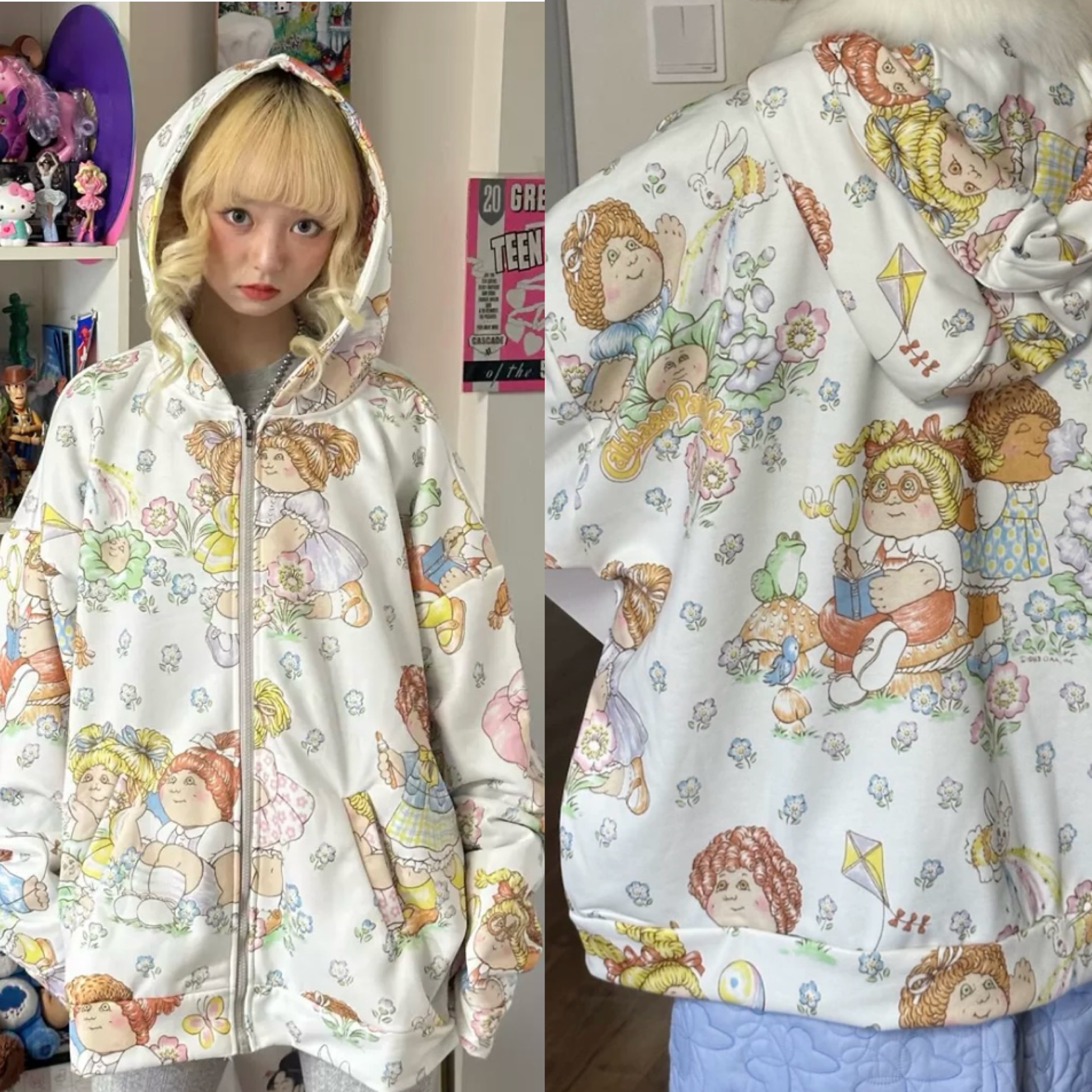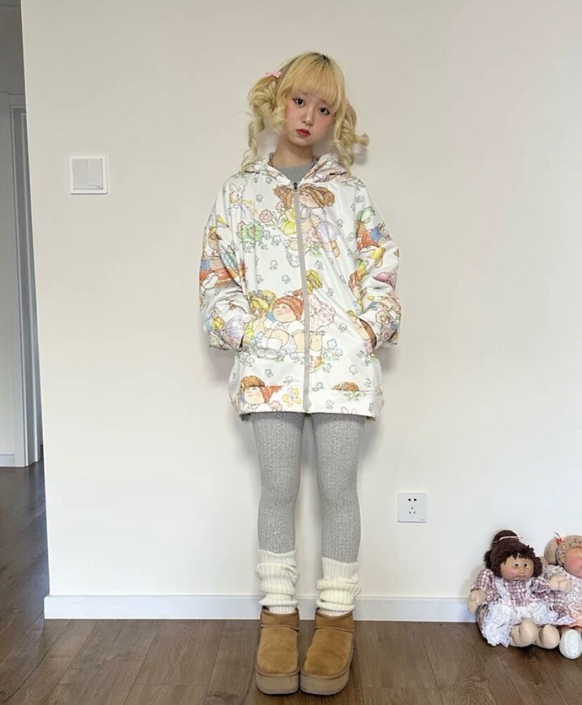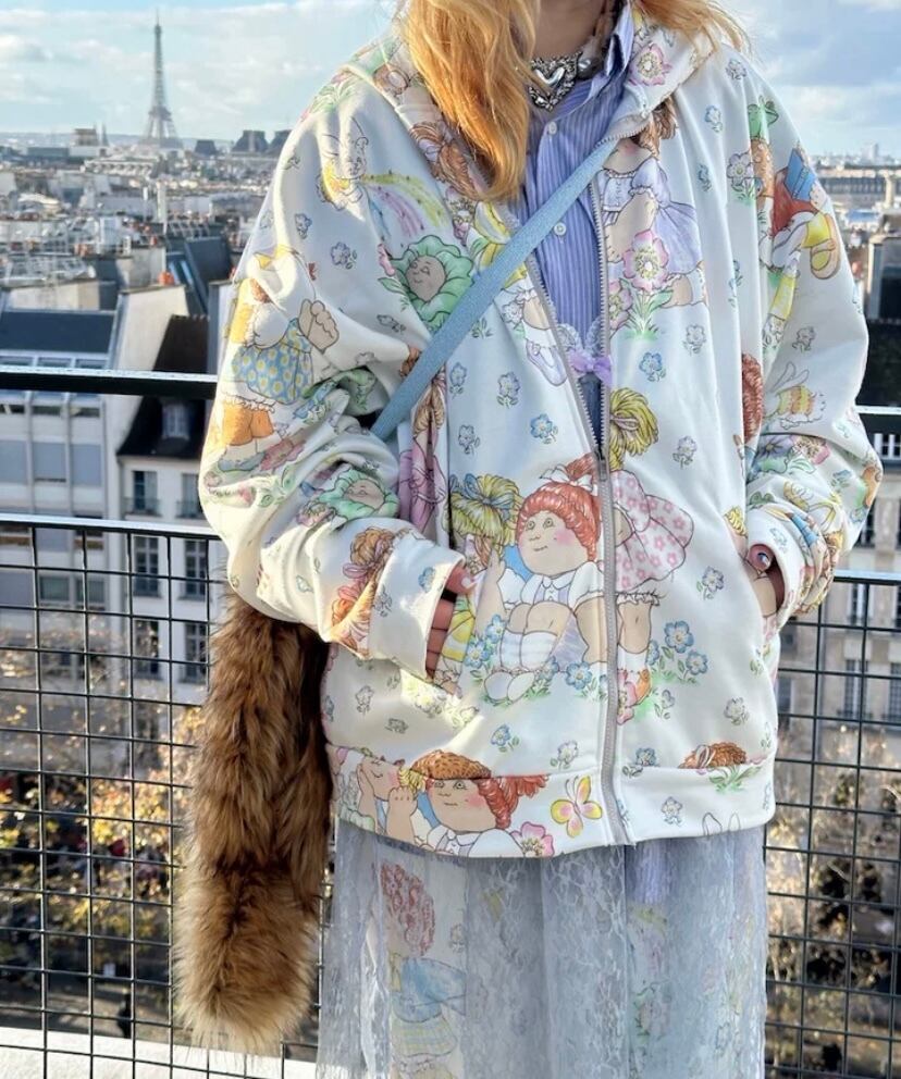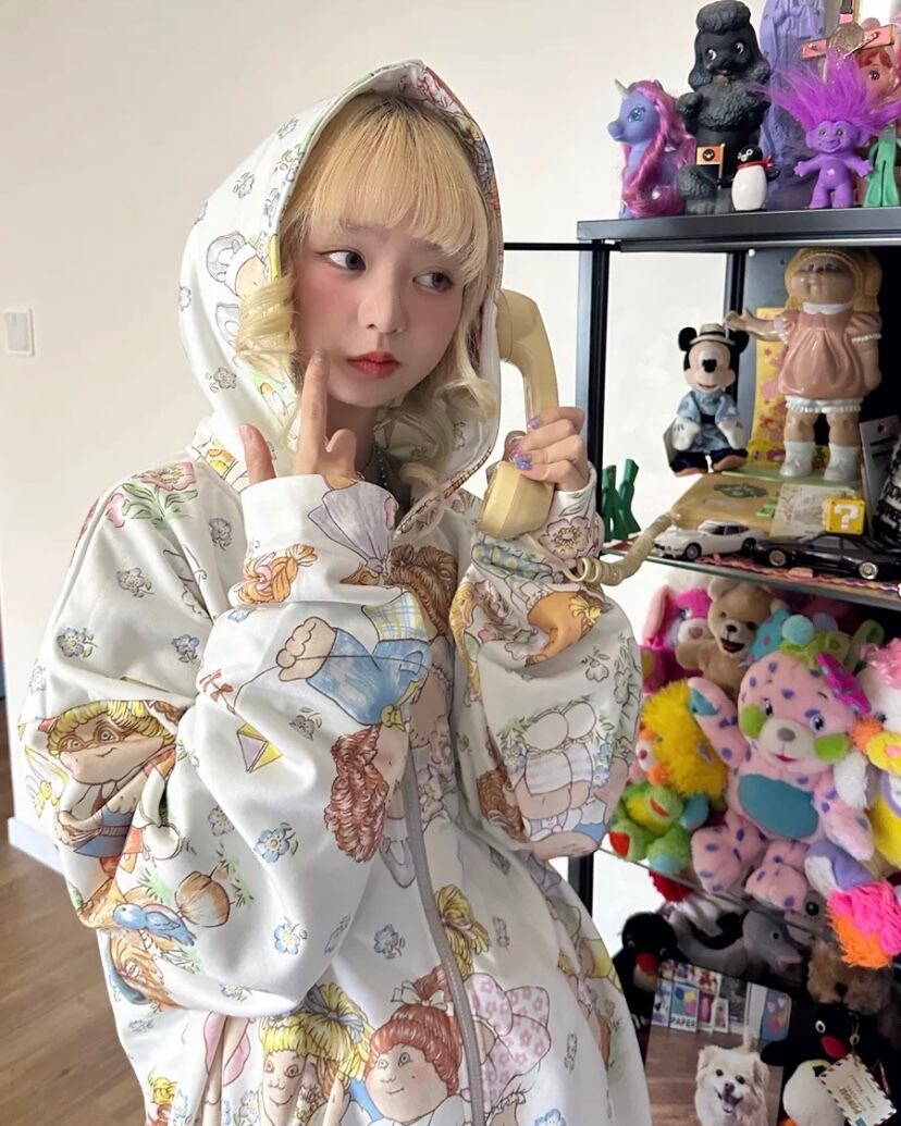 【パーカー】 トレーナー 可愛い スウェット トップス カラフル 白 ガーリー カジュアル レトロ 人形 原宿