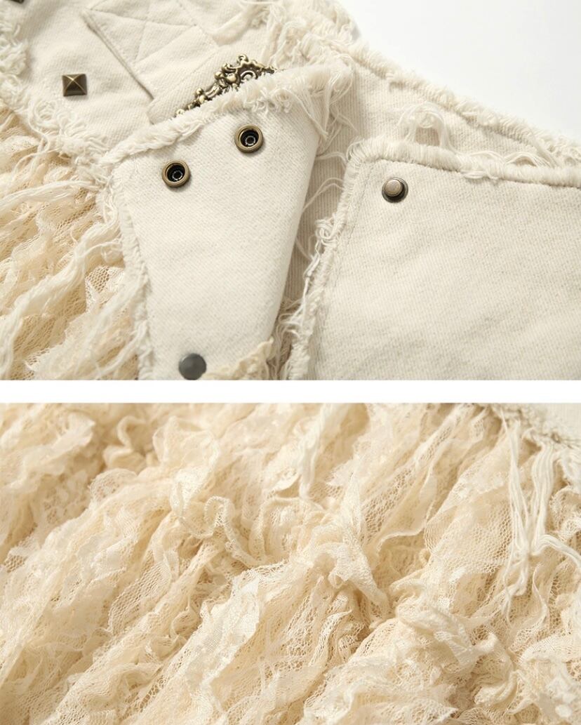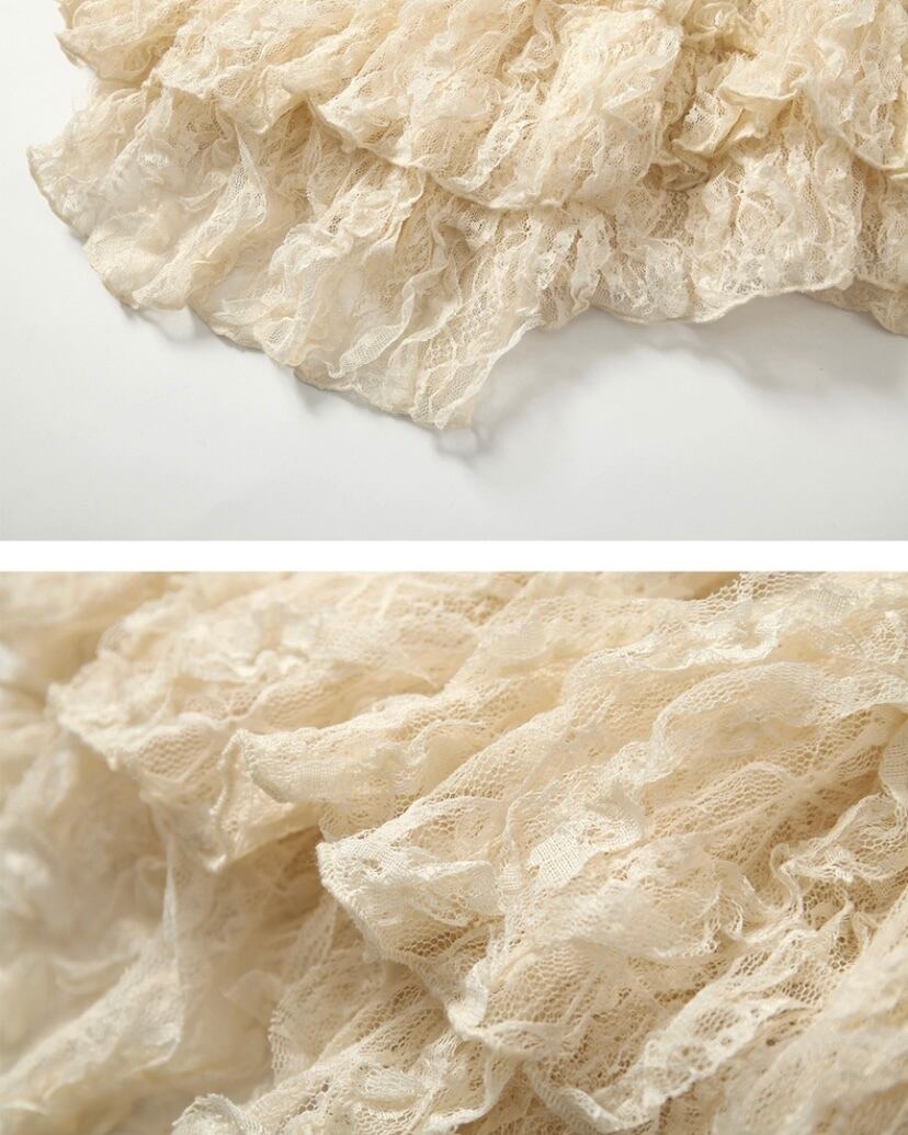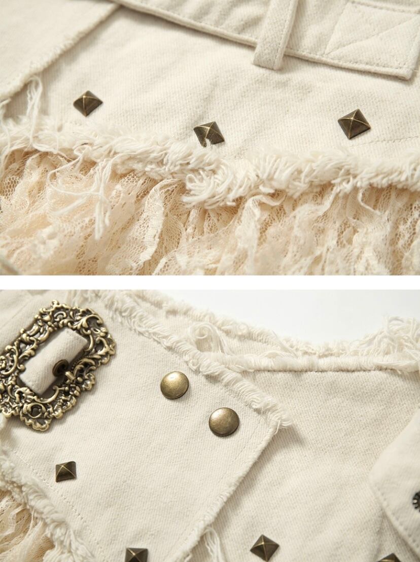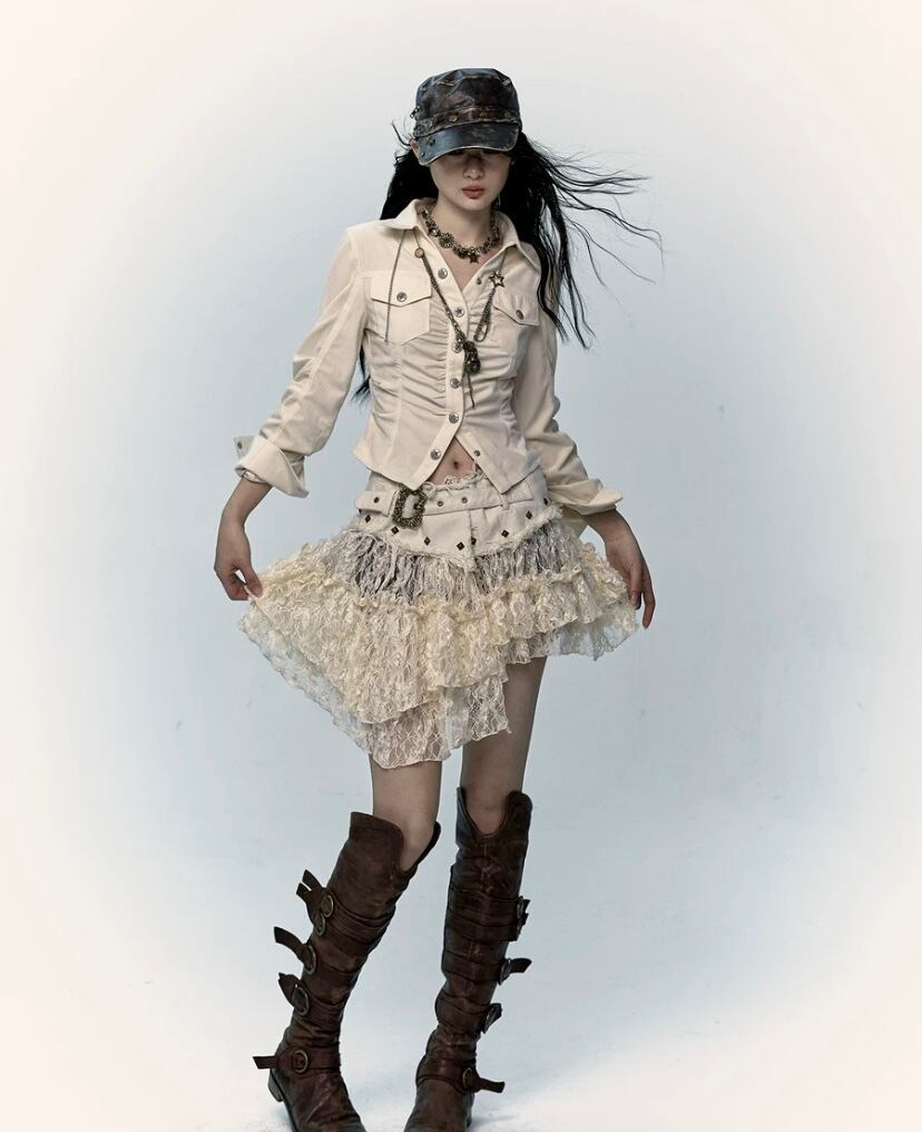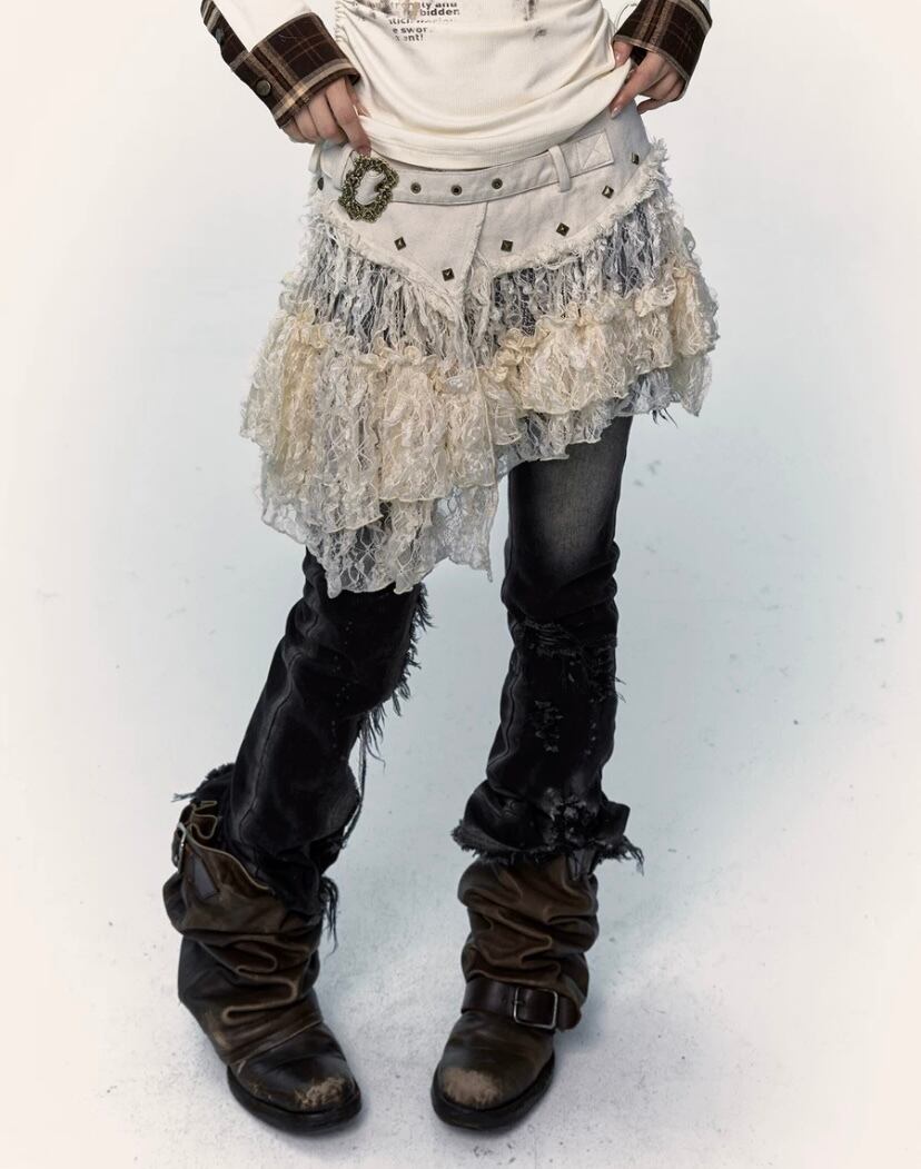 ミニスカート ベージュ、白レース、重ね着 ボトムス パンク バンド ミニスカート ベージュ レース