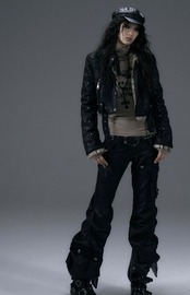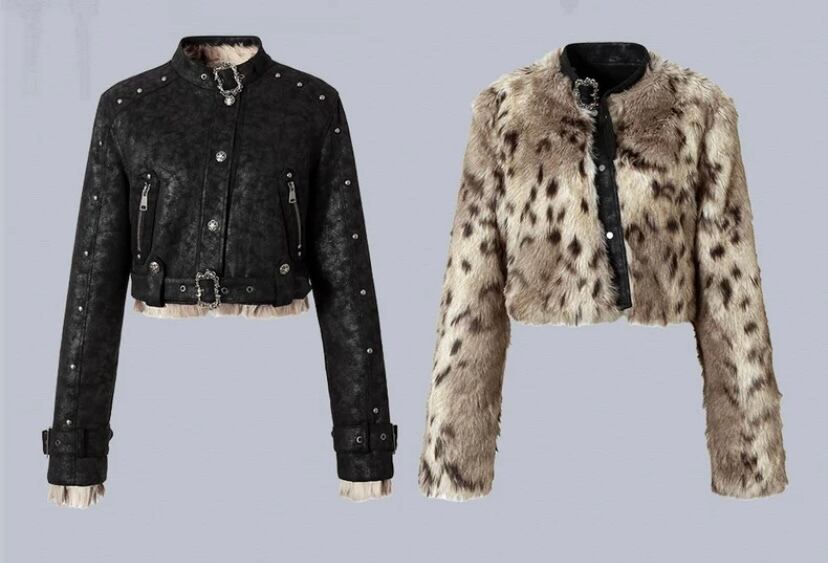 【リバーシブル】黒 ブラック かっこいい ライダース レザー系 ジャケット アウター、豹柄 カーディガン、アウター ジャケット ブルゾン ゴージャス