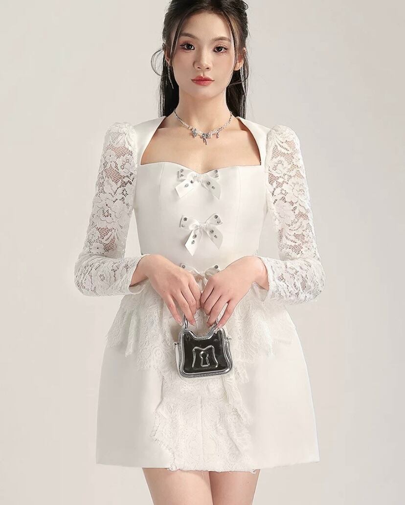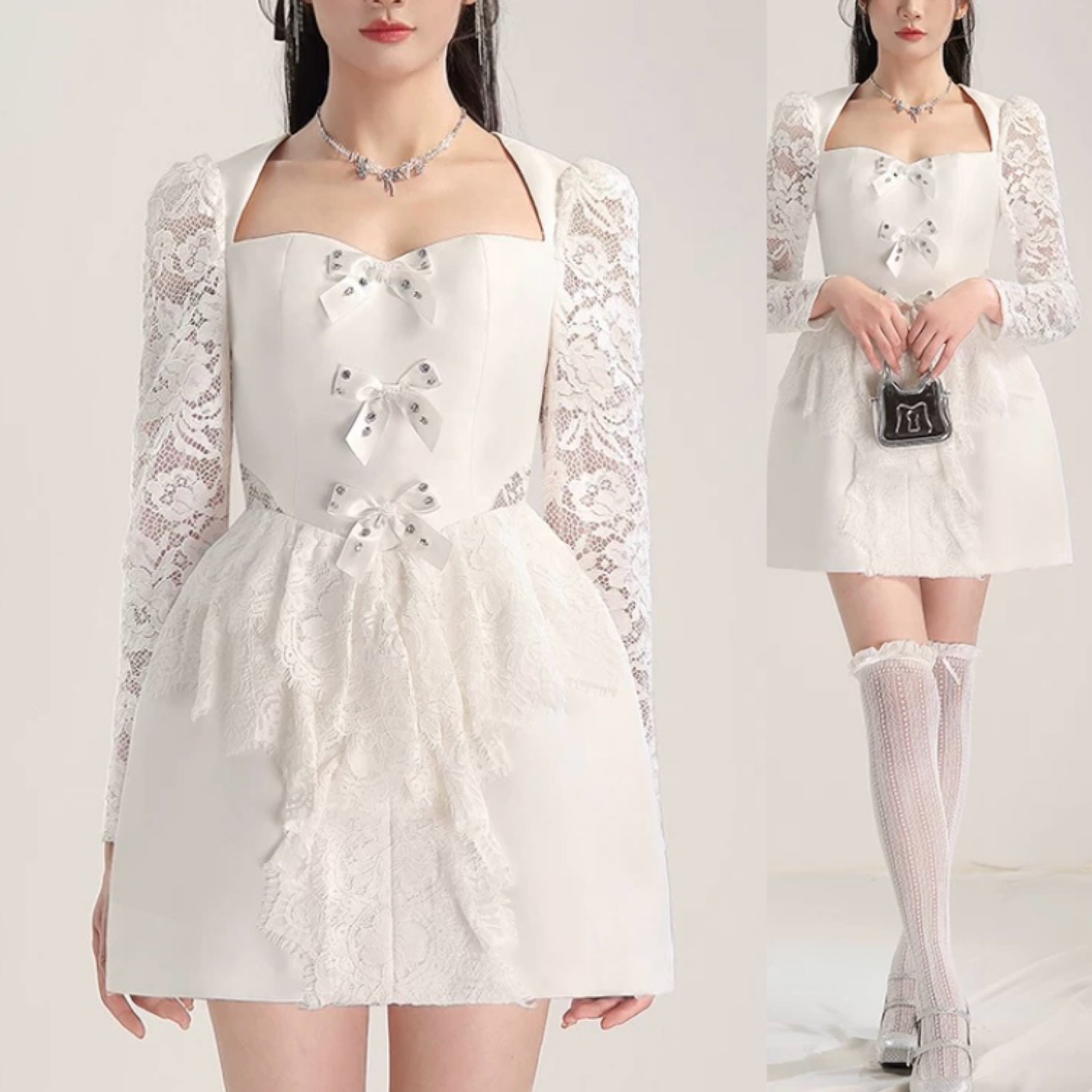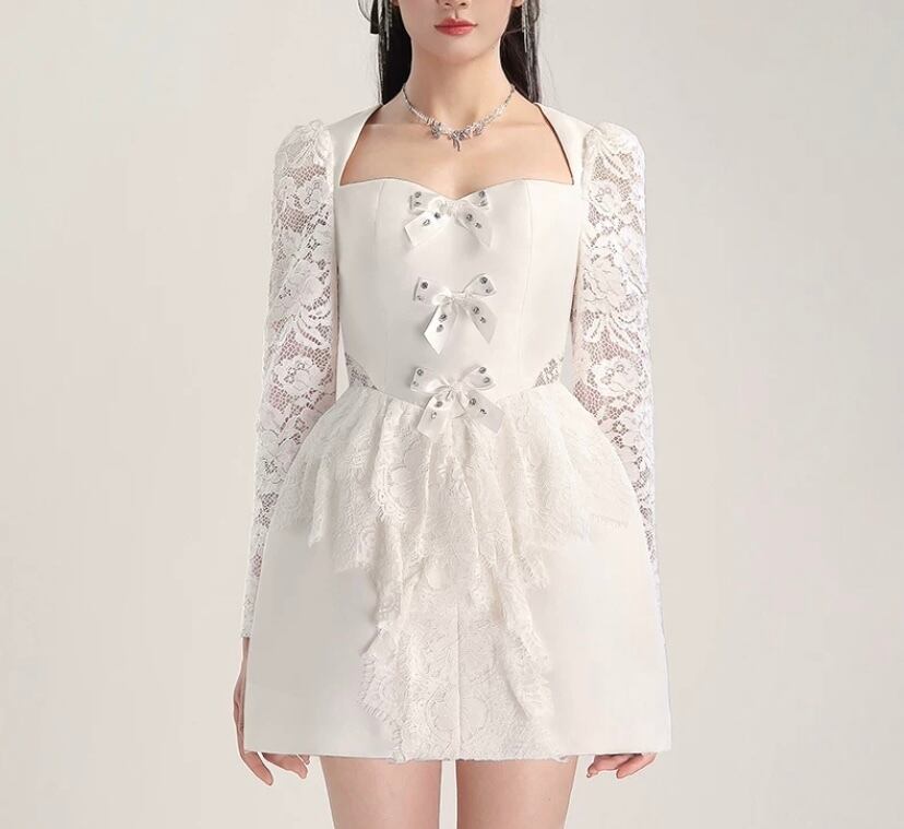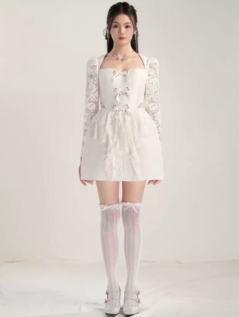 白 エレガント ワンピース リボン ドレス ガーリー ホワイトデー