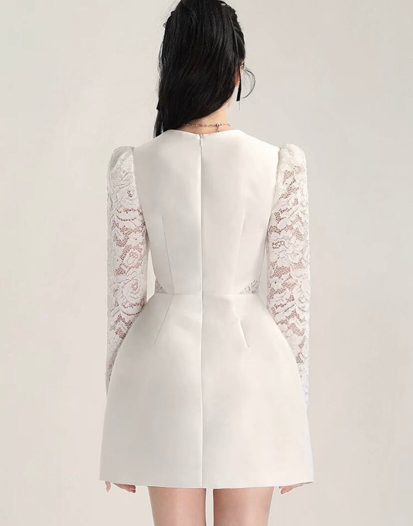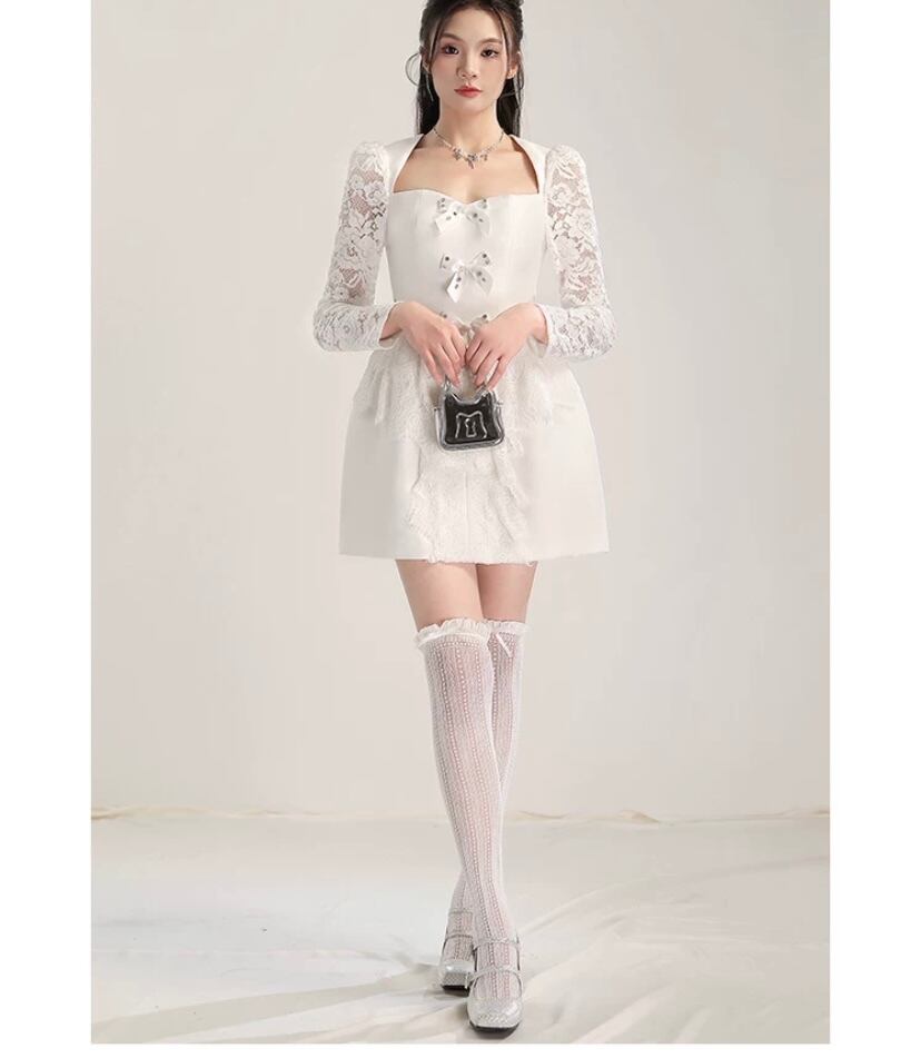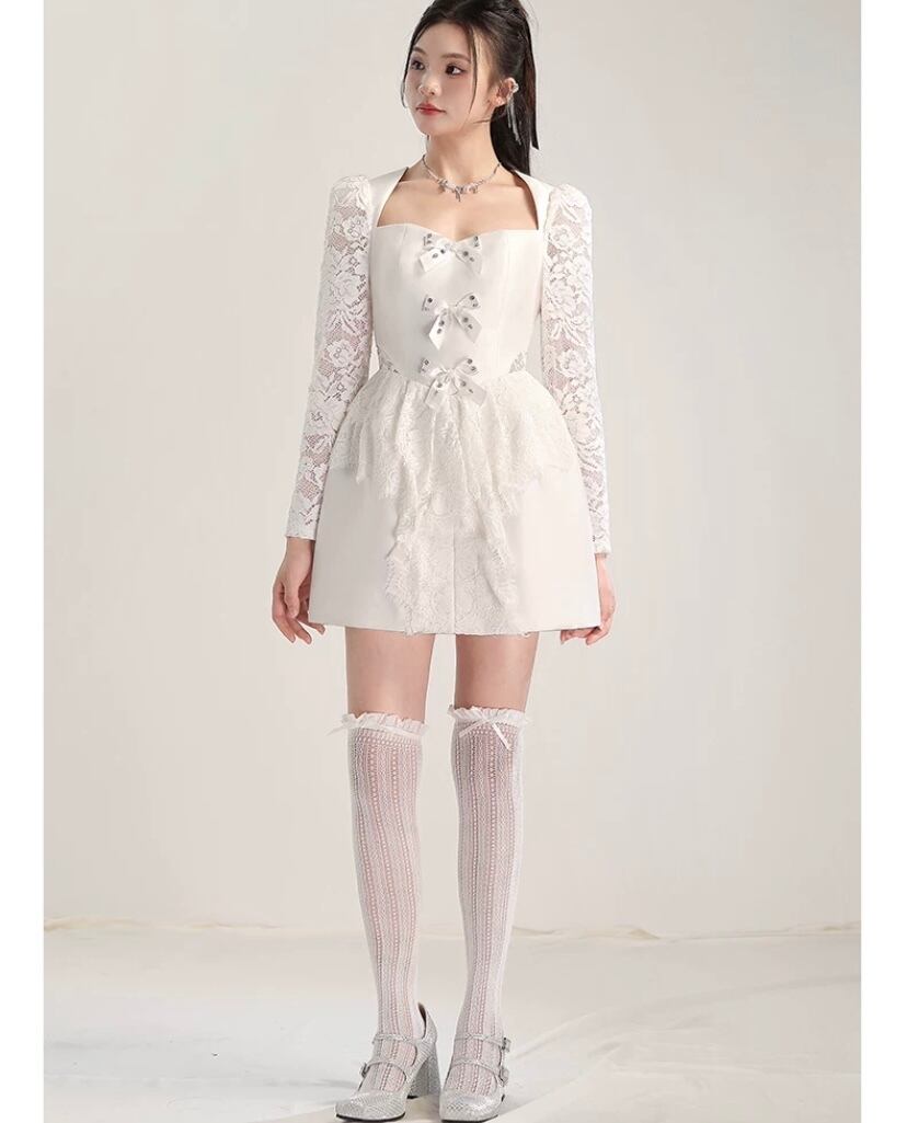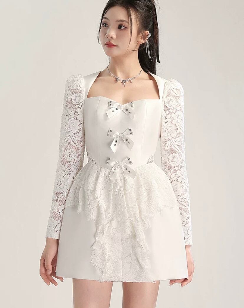 白 エレガント ワンピース リボン ドレス ガーリー ホワイトデー