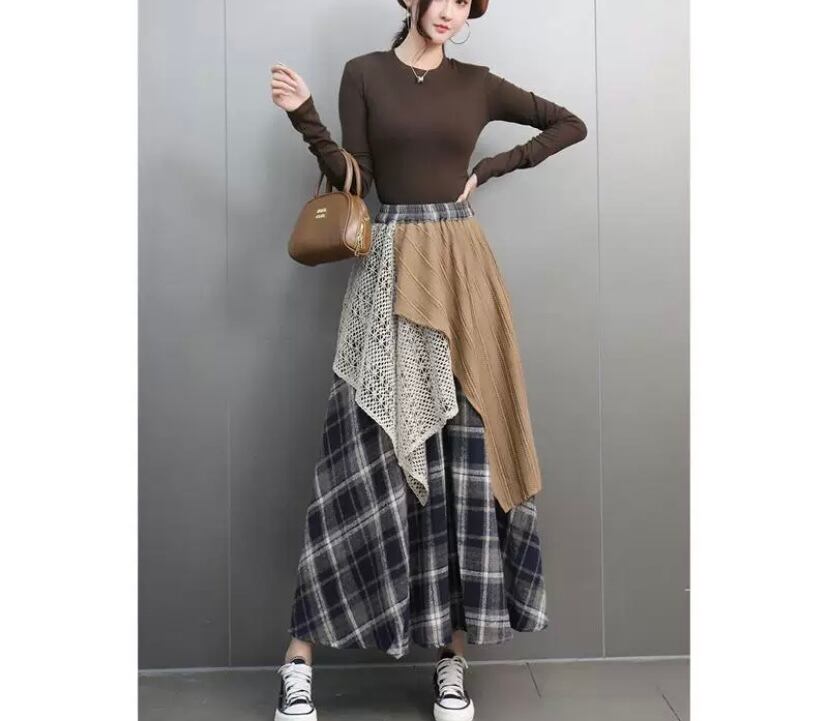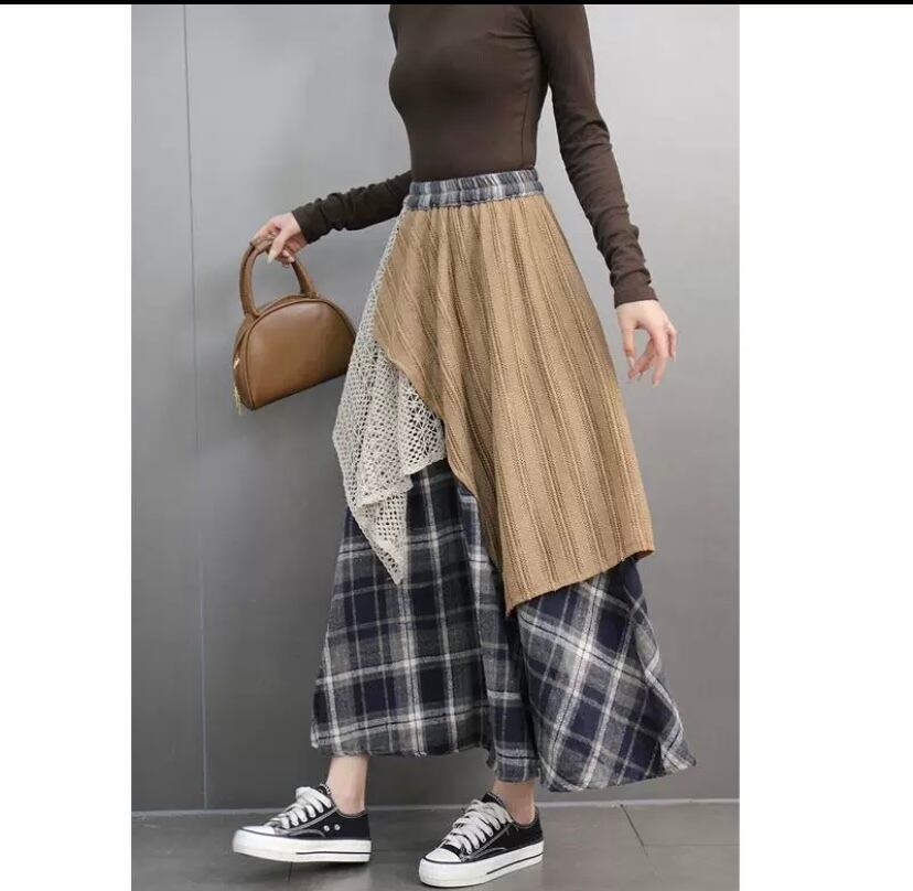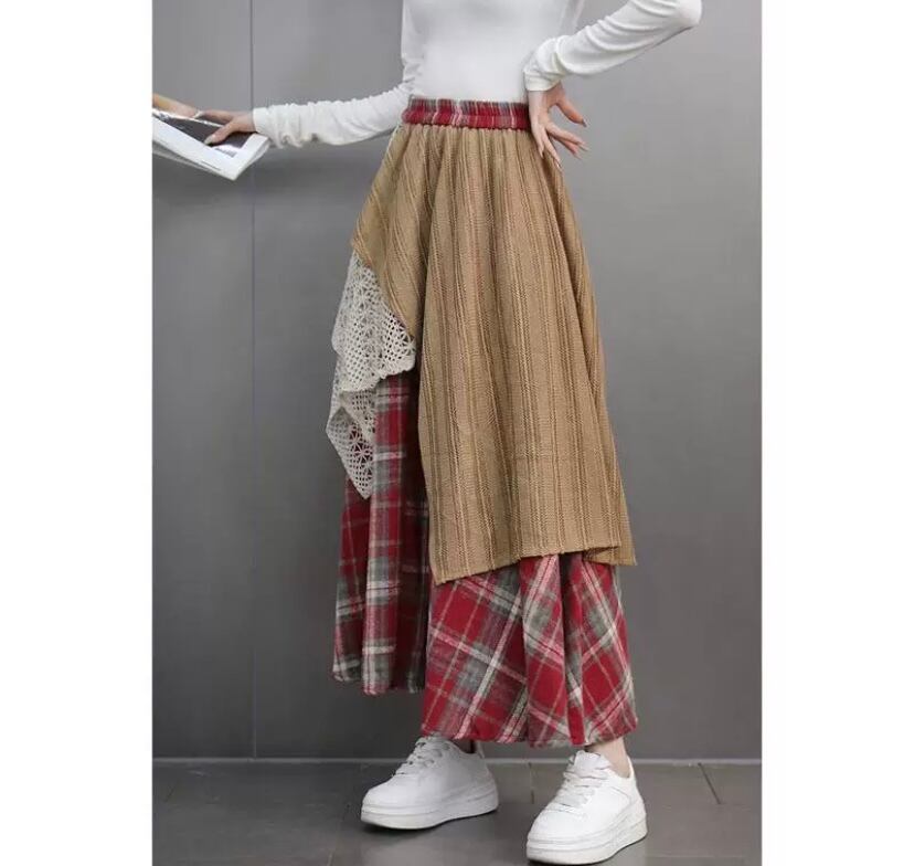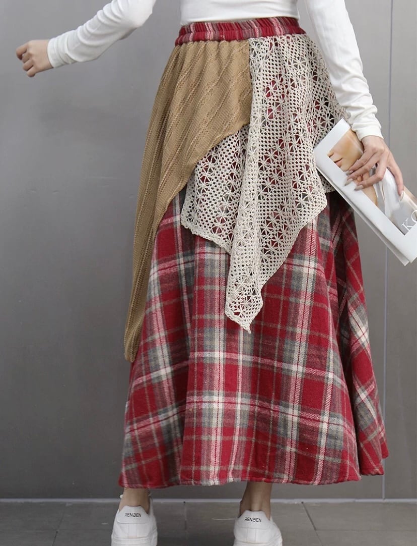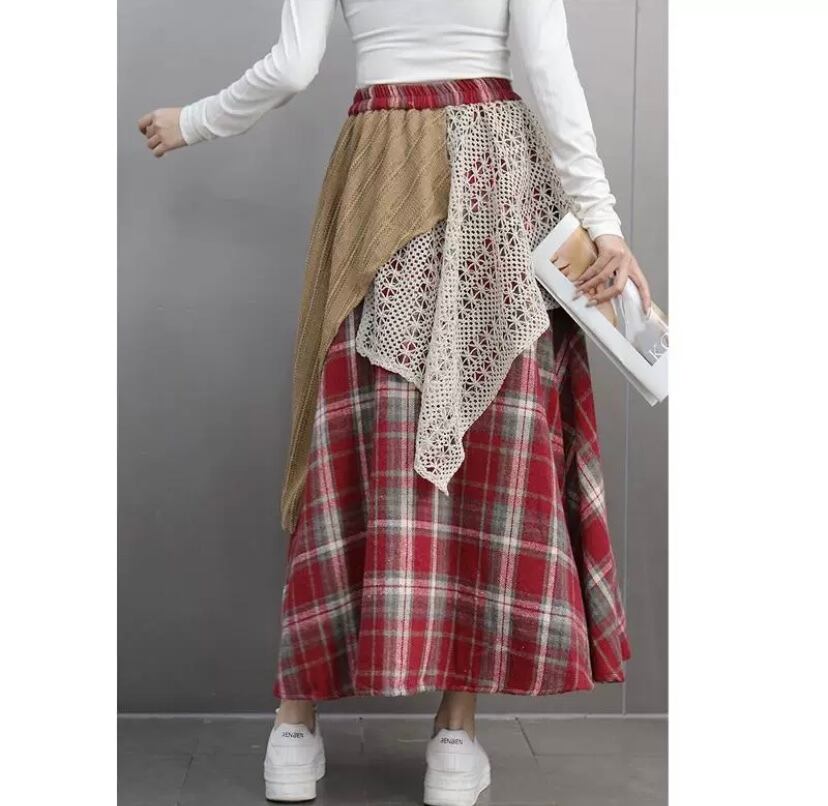 赤 黒 チェック マキシ エプロン ボトムス スカート