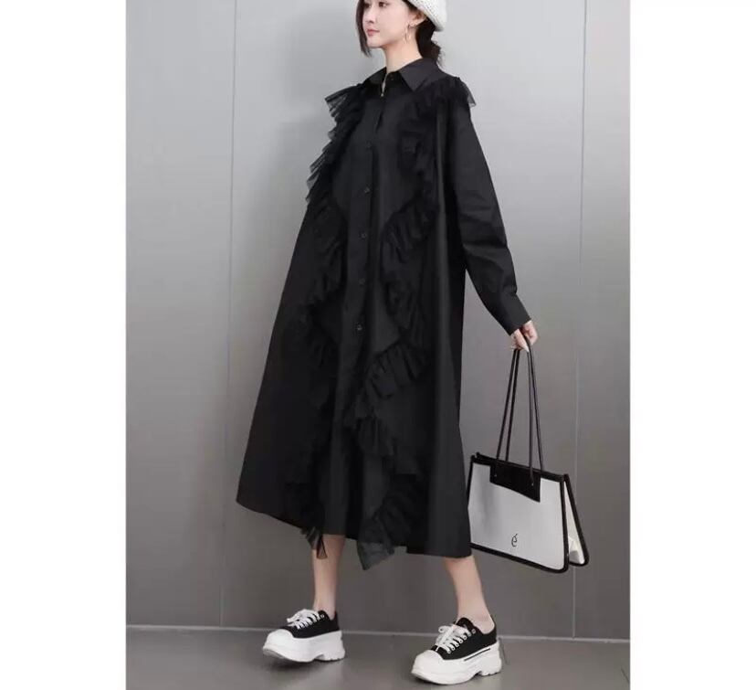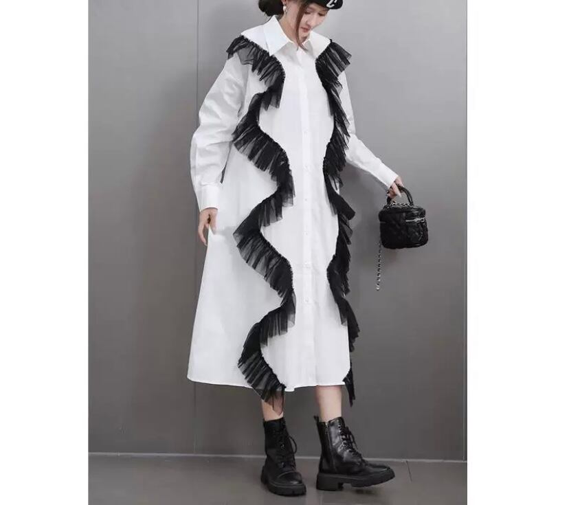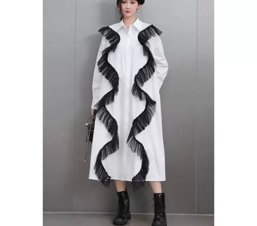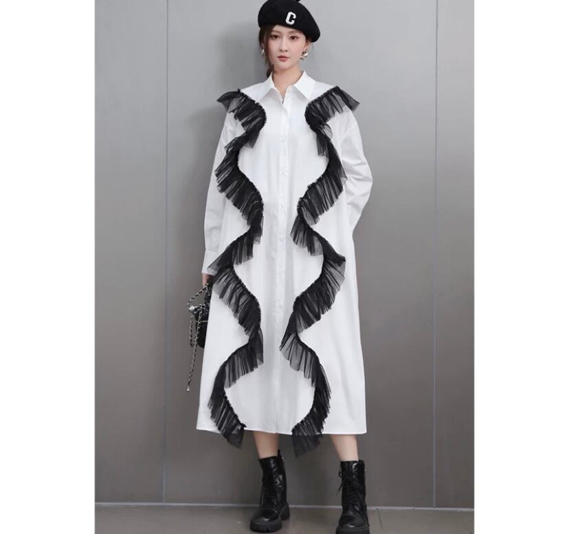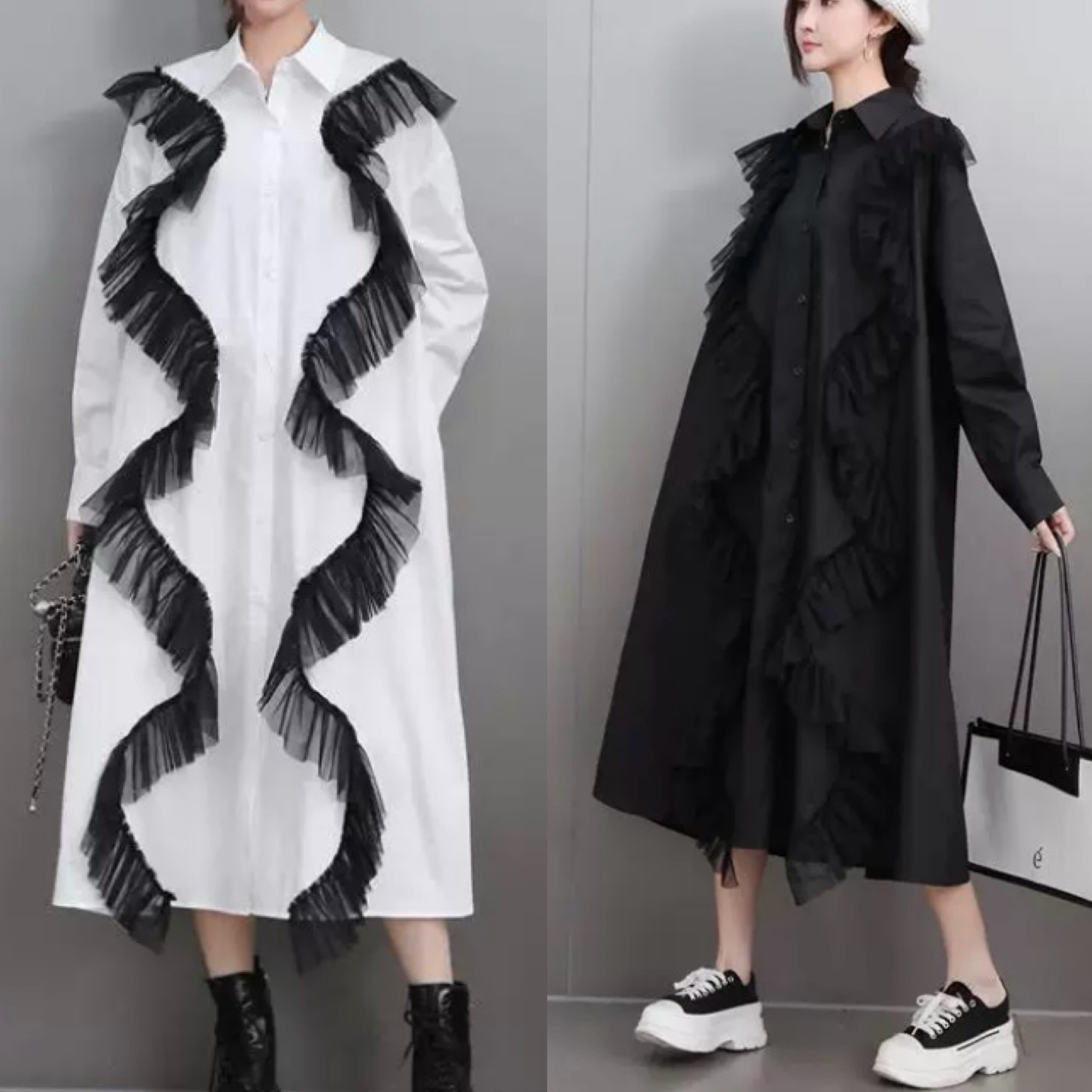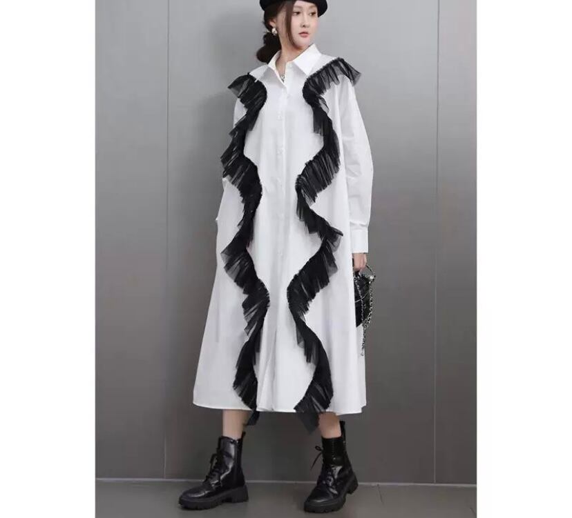白 黒 ブラウス カジュアル ゆったり ワンピース フリル
