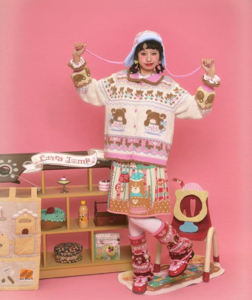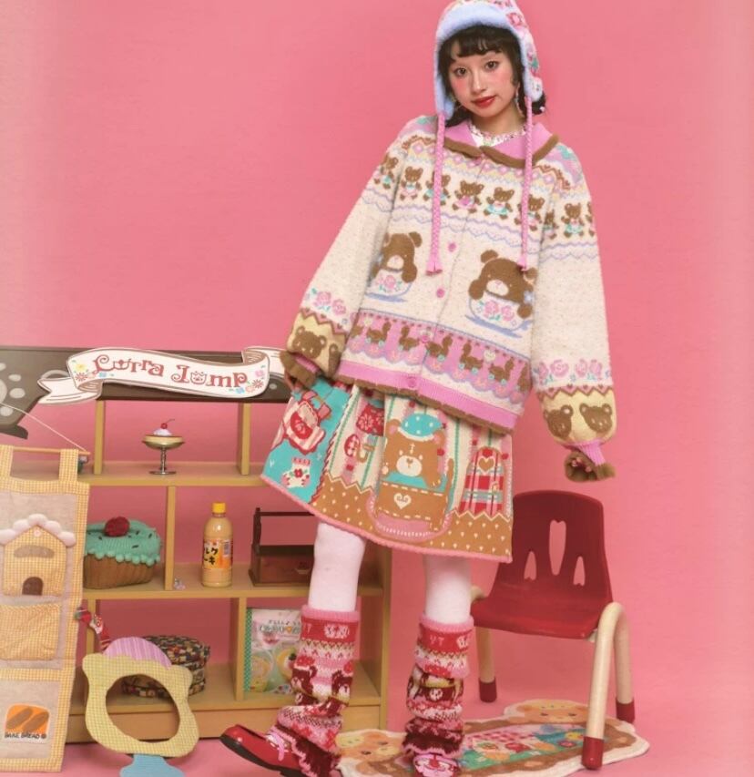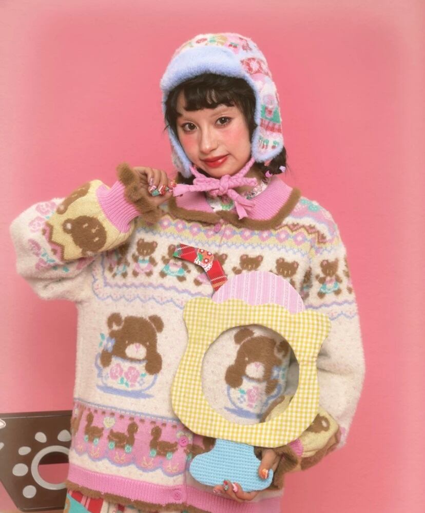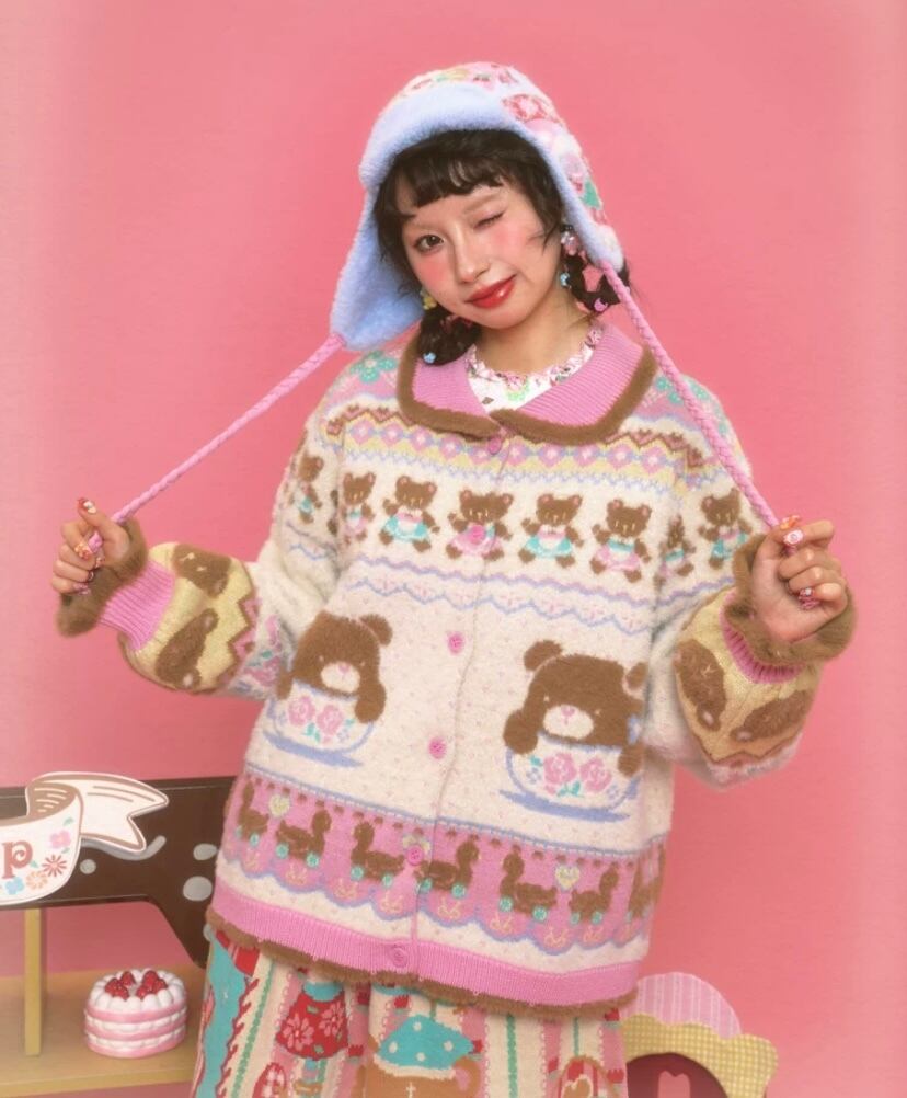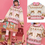 ピンク 白 クマさん、丸襟、カーディガン、トップス、アウター、セーター、ジャケット 原宿、ロリータ 姫 かわいい コート