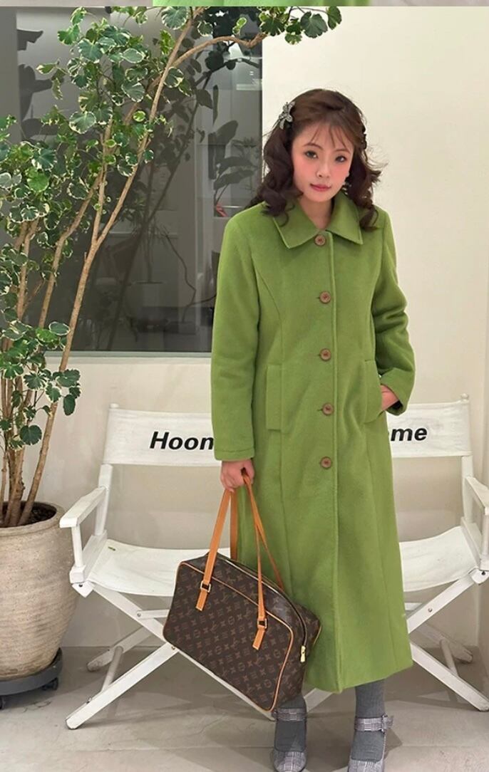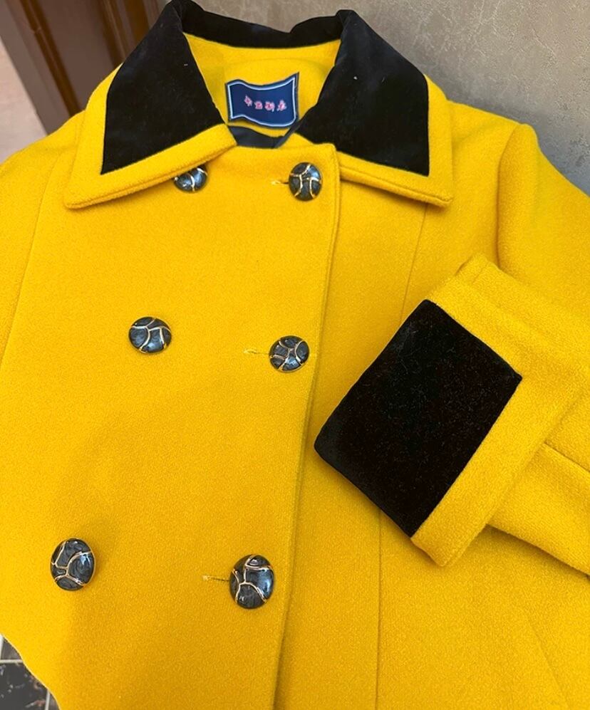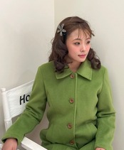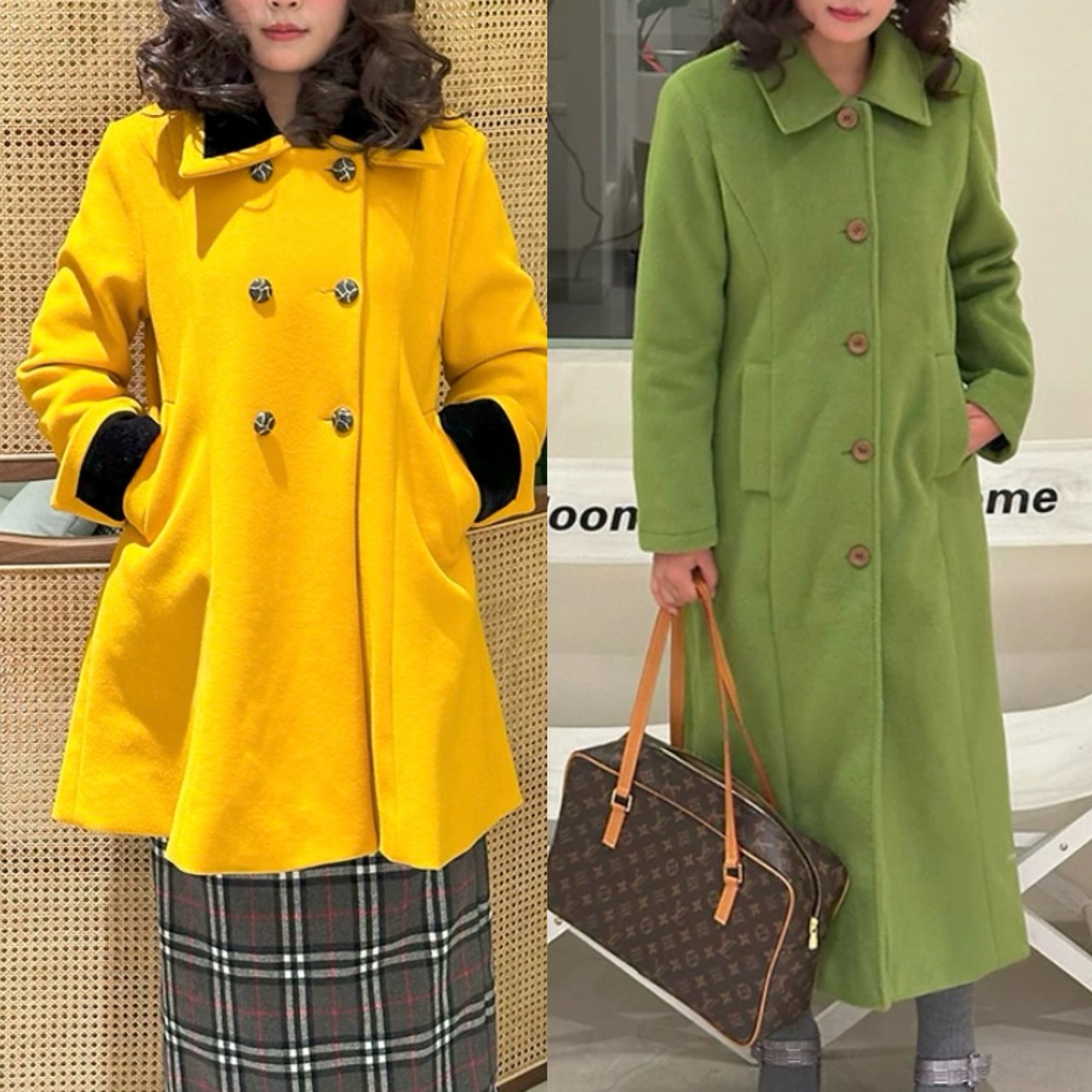 黄色 緑 レトロ クラシック、ヴィンテージ ジャケット、コート、シンプル、アウター ワンピース、原宿、古着、高円寺 下北沢