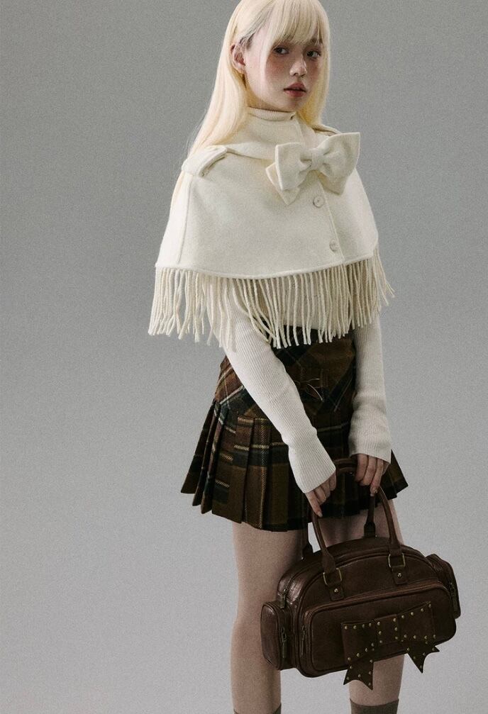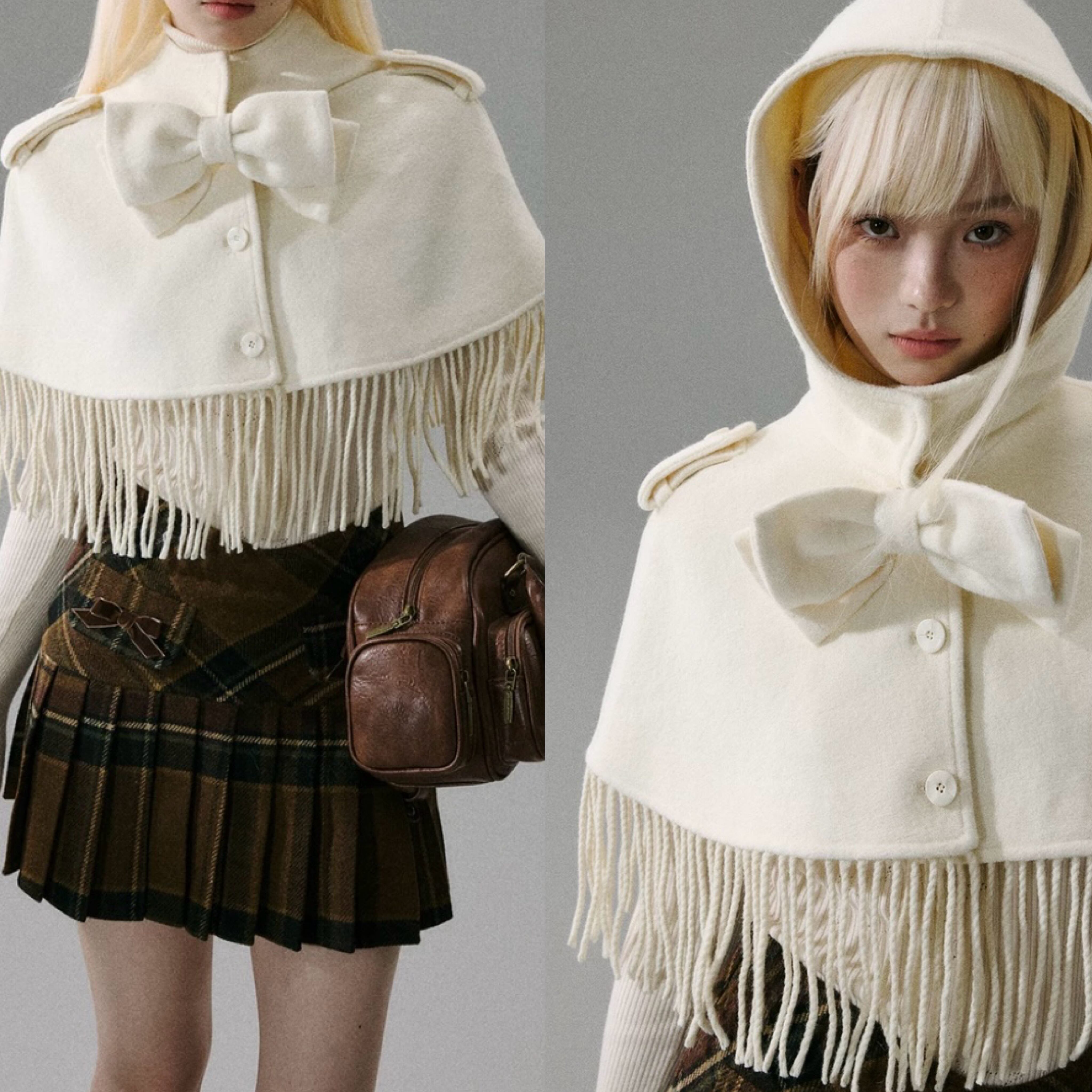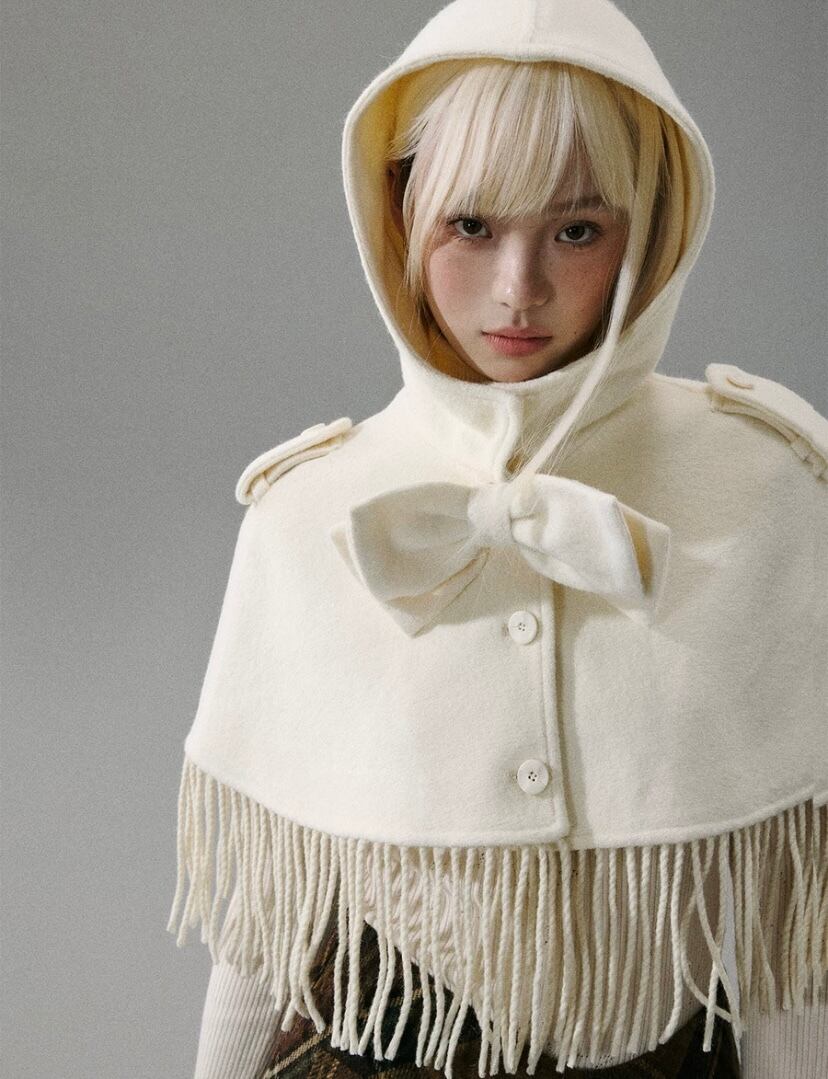 白 パーカー アウター ジャケット コート リボン 可愛い ガーリー 白 カーディガン アウター コート フリンジ ホワイト