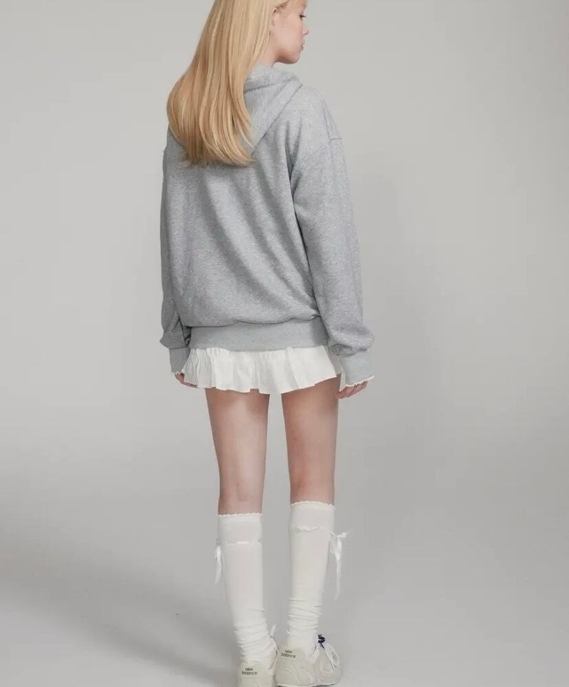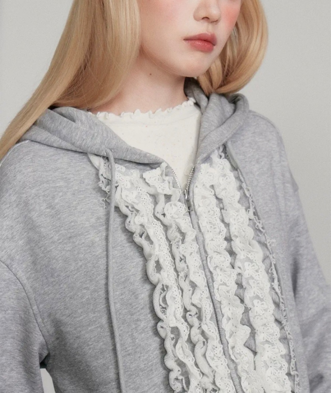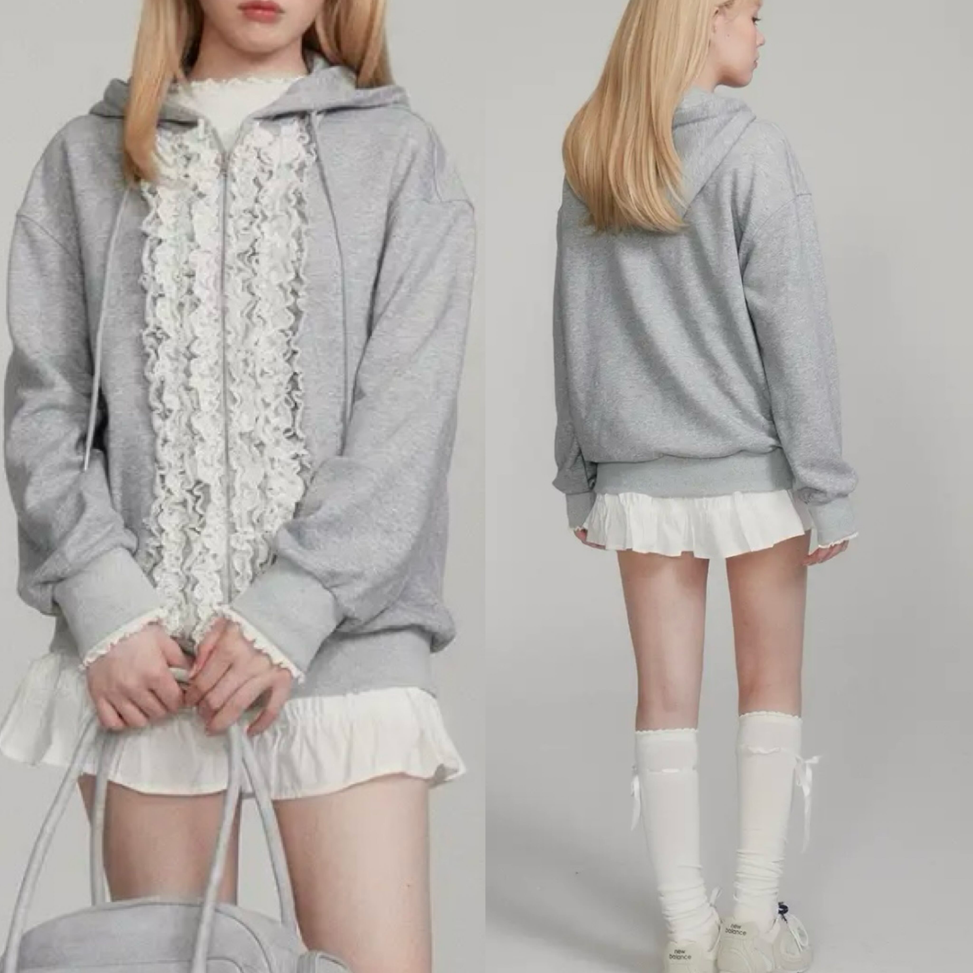 パーカー グレー リボン フリル ジャケット カーディガン トレーナー カジュアル ガーリー 可愛い トップス フード スウェット