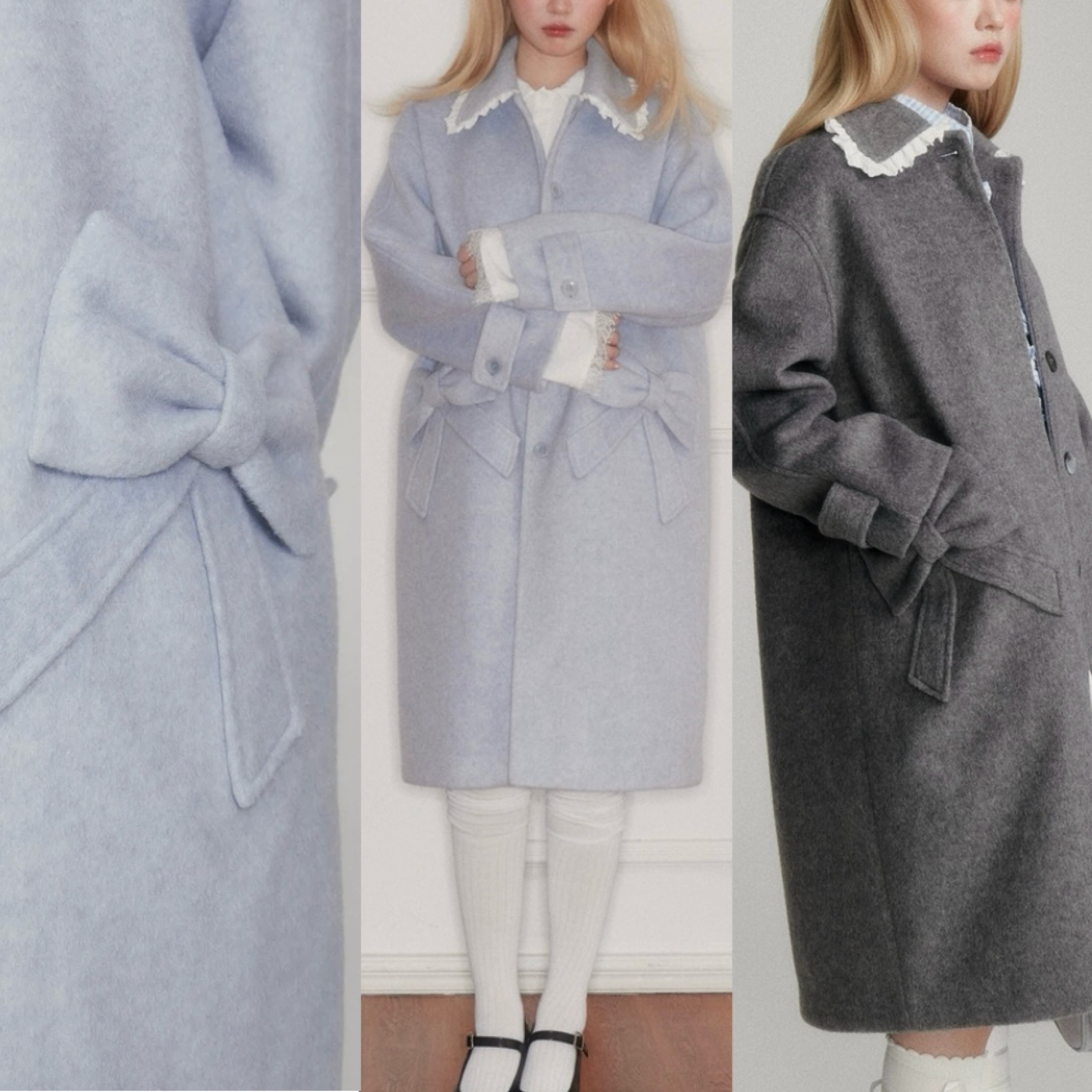 リボン ポケット アウター ジャケット 丸襟 コート ワンピース リボン ポケット シンプル かわいい ガーリー 原宿 カーディガン ブルゾン
