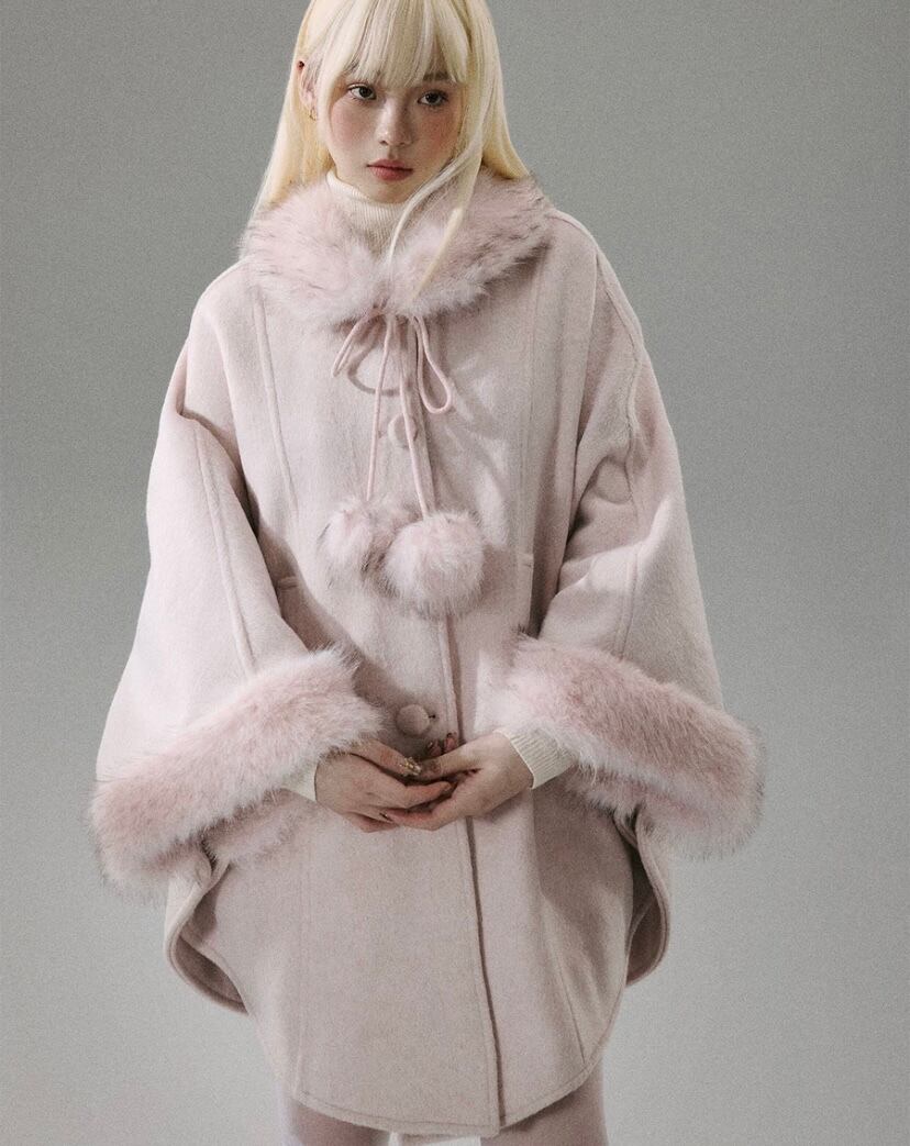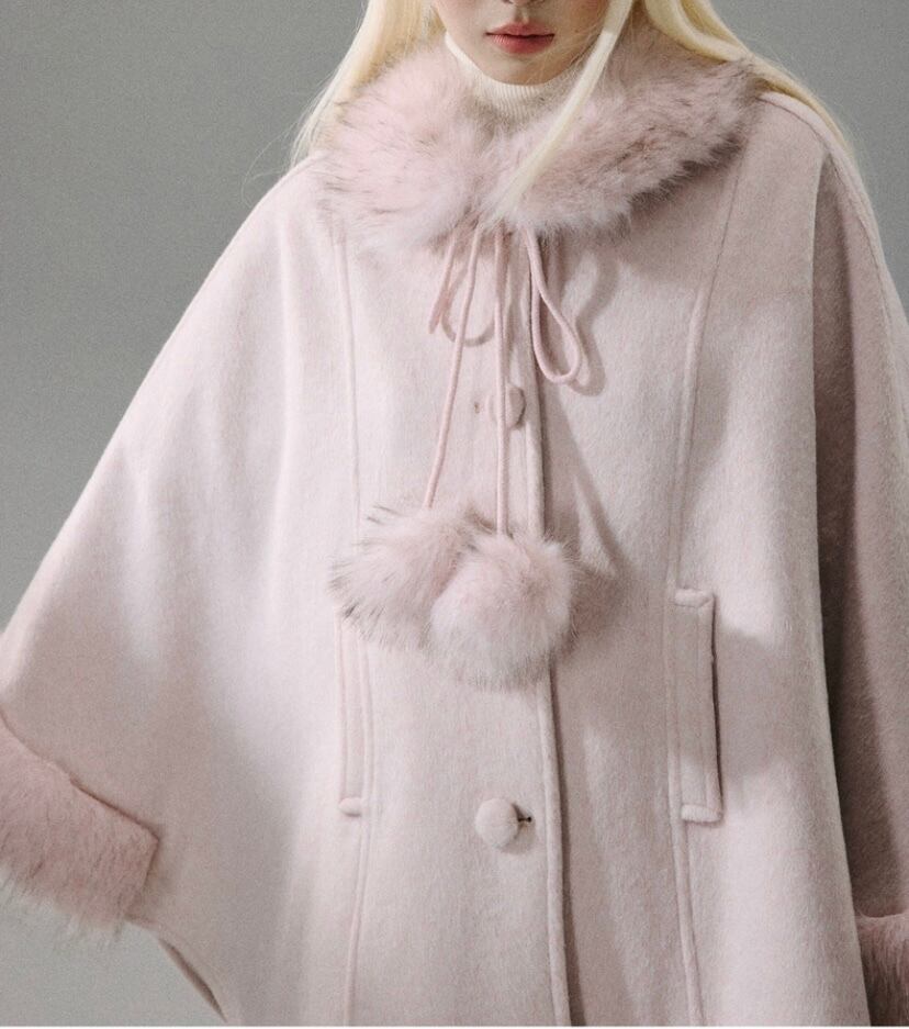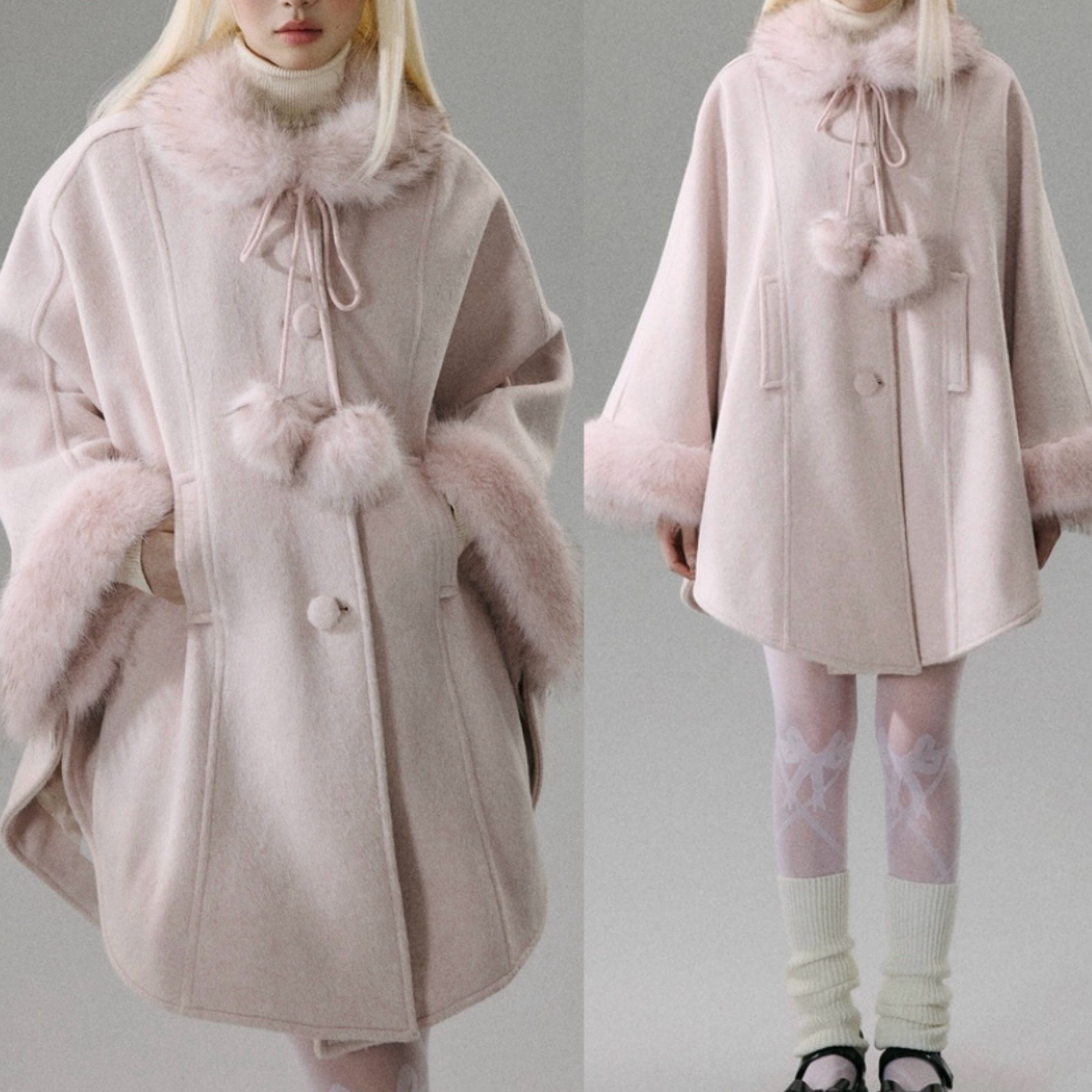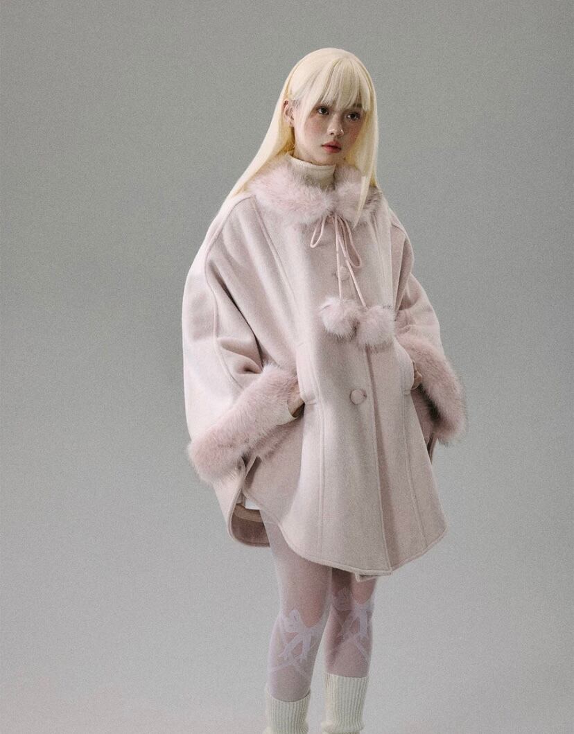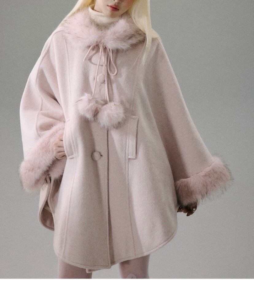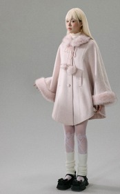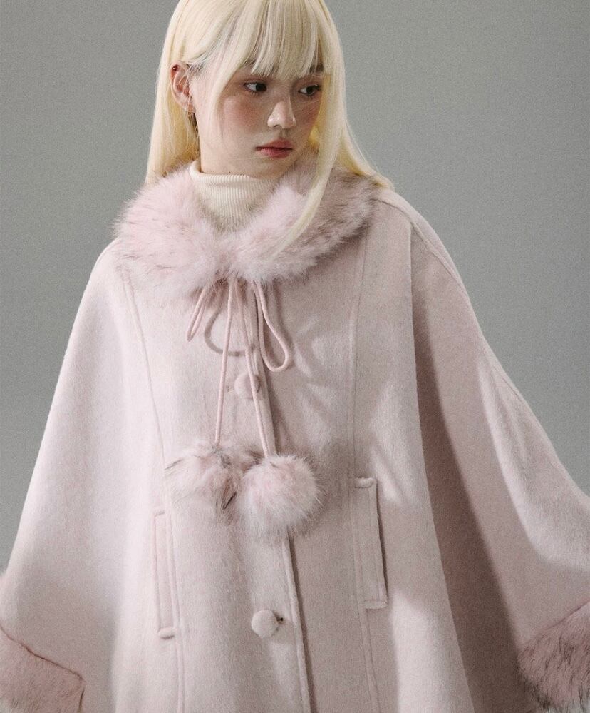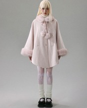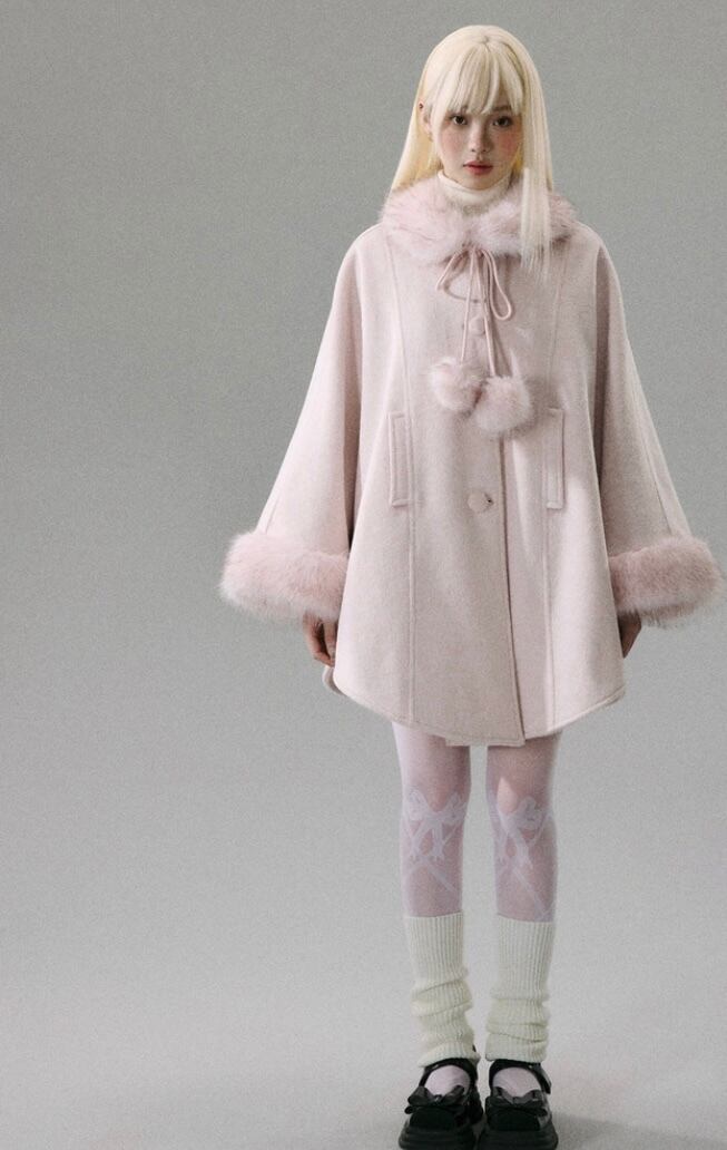 ピンク アウター コート ファー リボン ポンポン カーディガン コート ワンピース ガーリ かわいい エレガントお嬢様ポンチョ