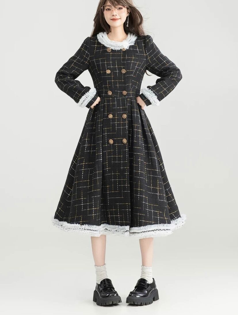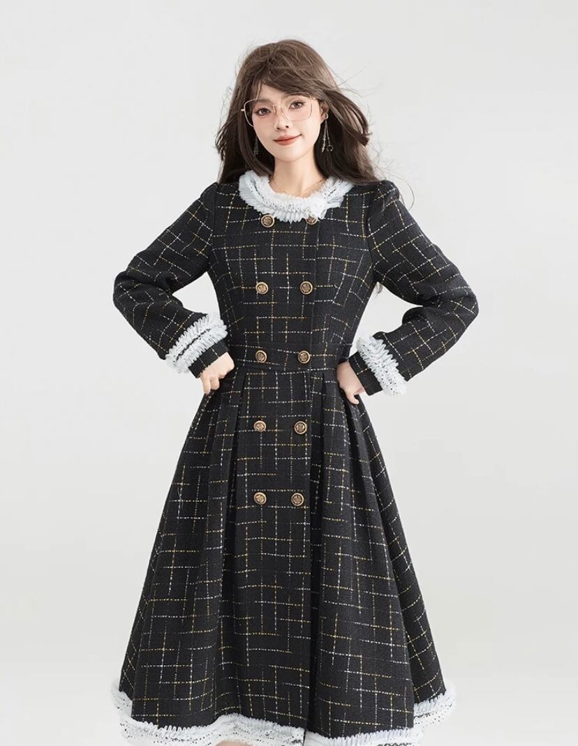 ガーリー お嬢様 エレガント コート ジャケット ワンピース チェック フリル かわいい XL カーディガン コート