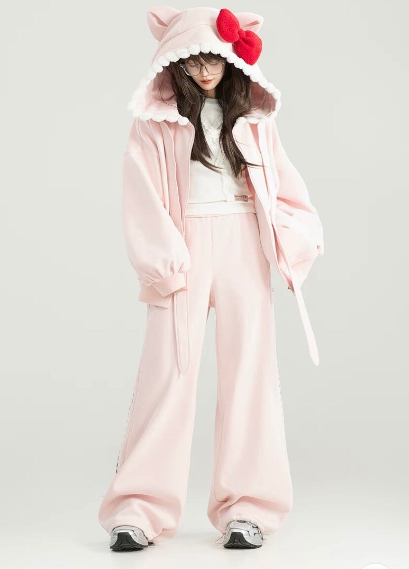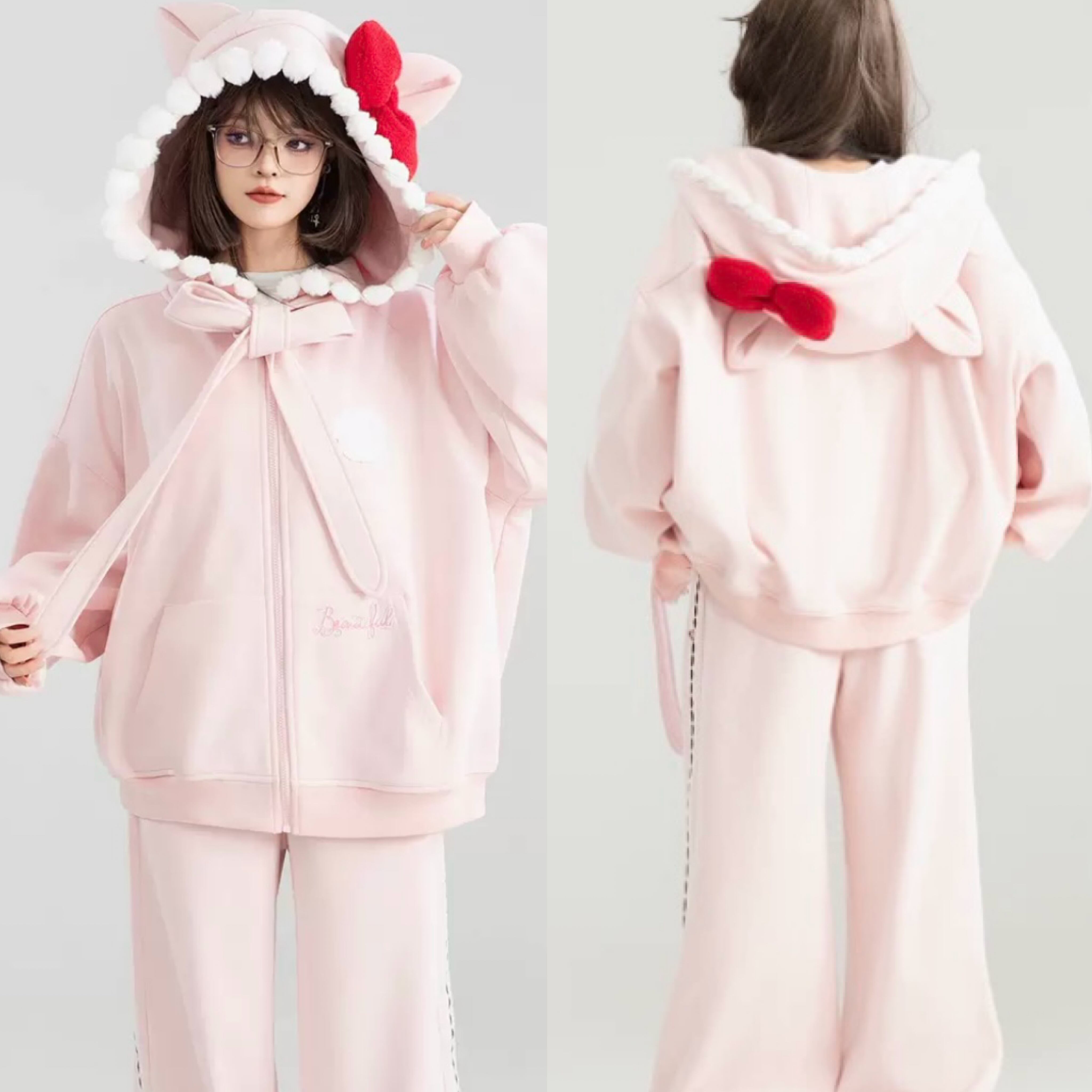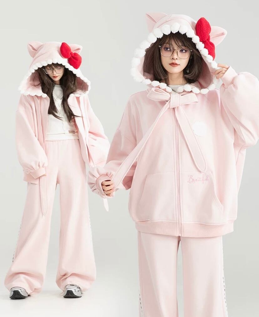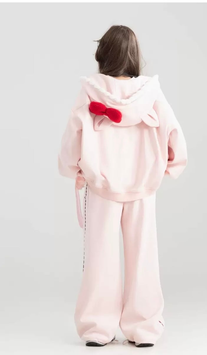 パーカー トレーナー フーディー フード 赤リボン ピンク リボン かわいい 裏きも スウェット カジュアル XL 原宿 トレーナー