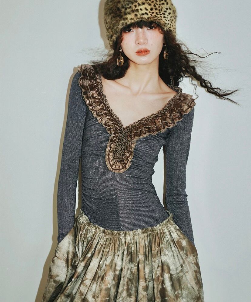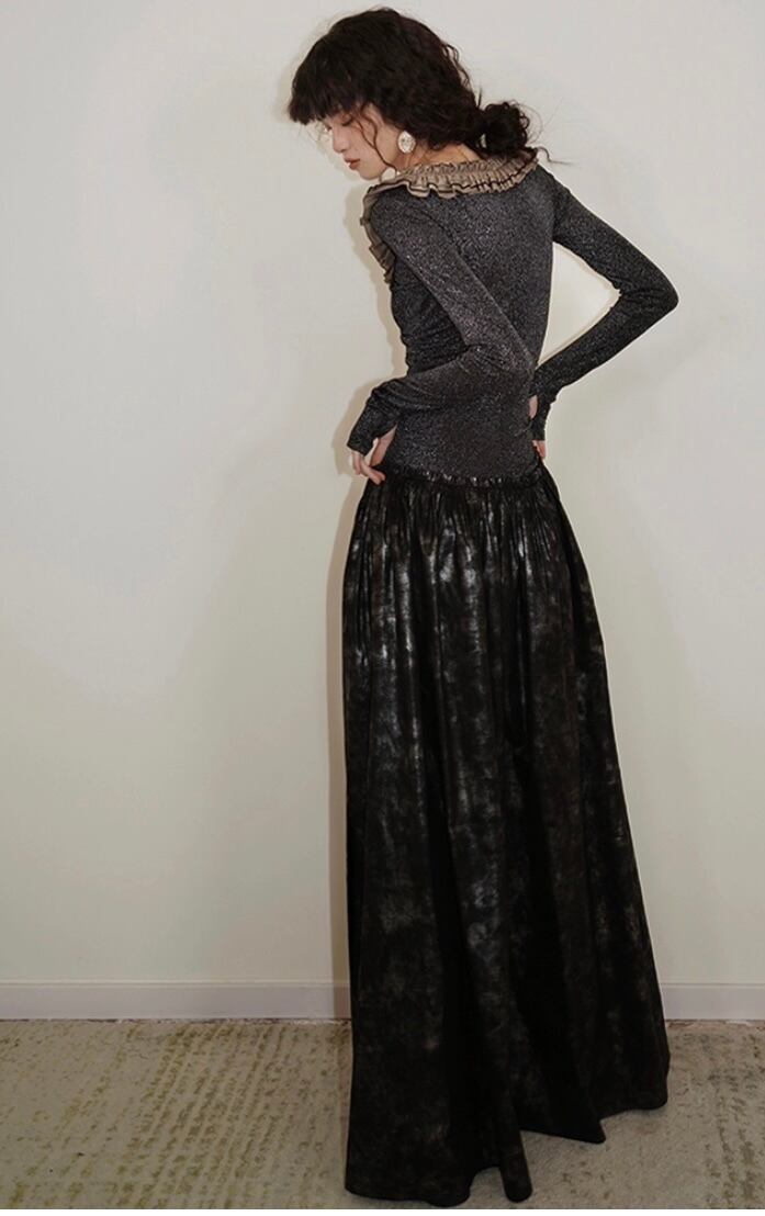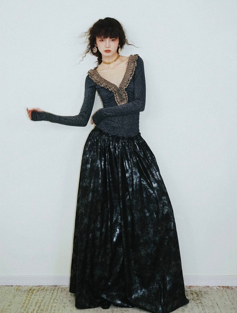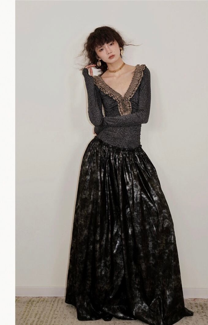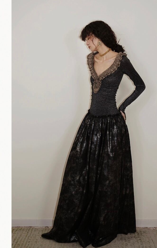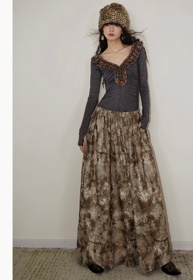 茶色 黒 マキシ ロング ワンピース トップ Vネック だいだい グラデーション セクシー ワンピース ドレス