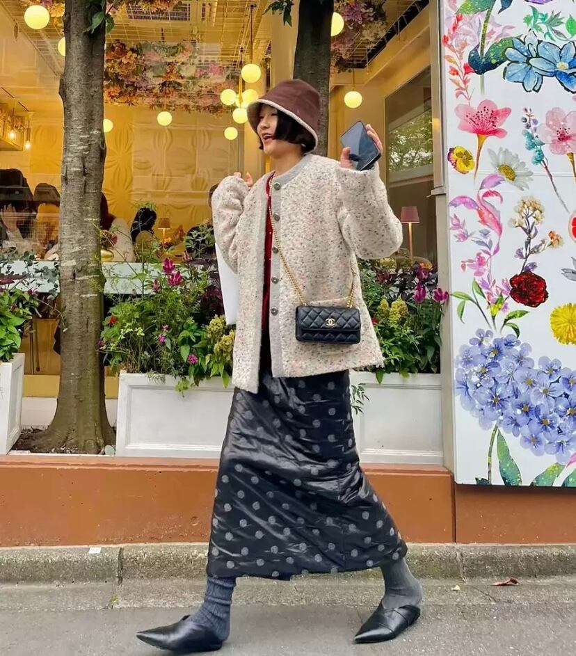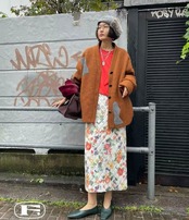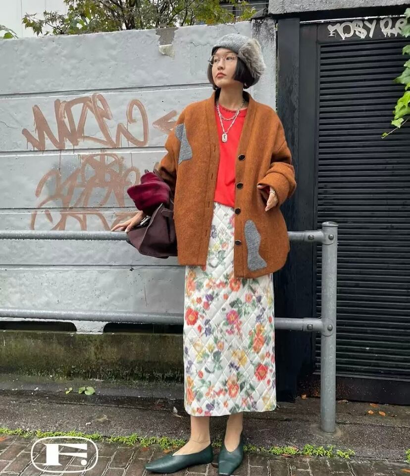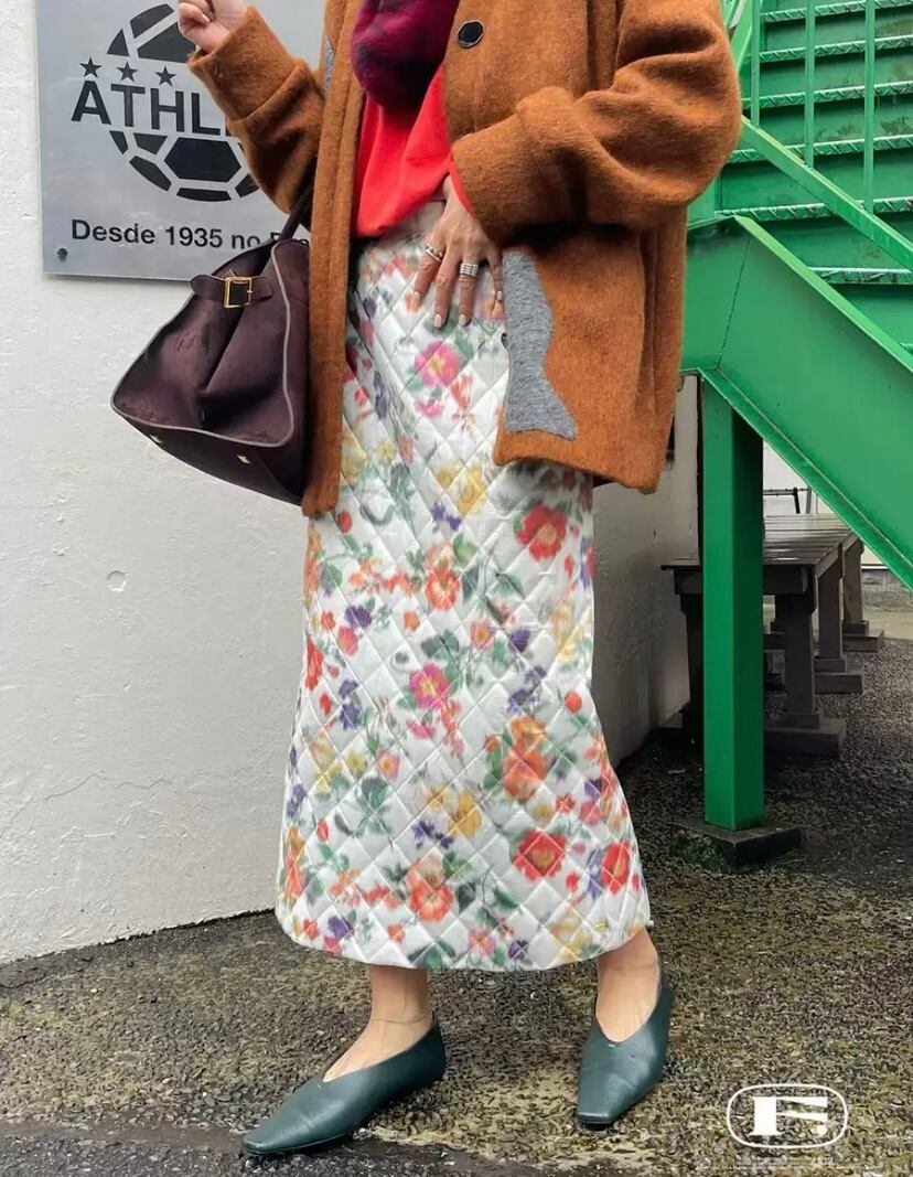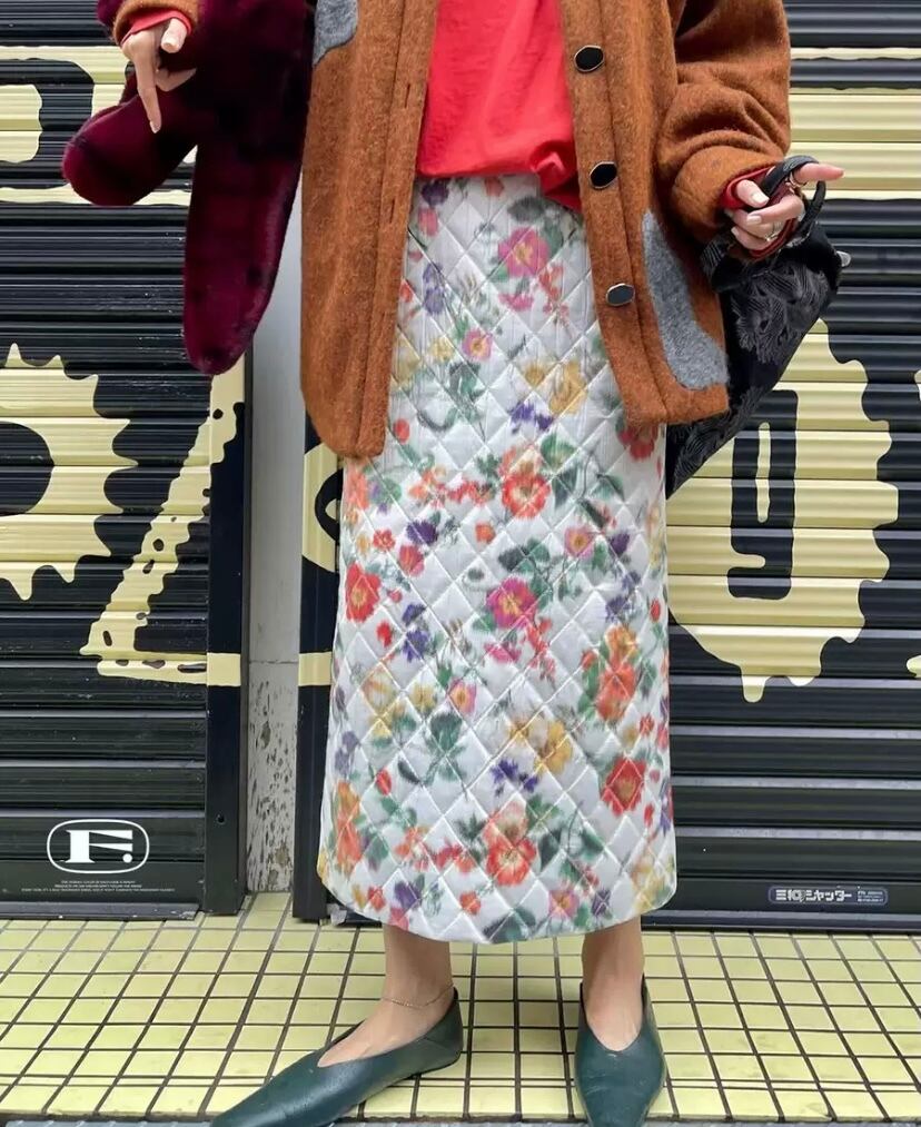タイトスカート 黒 白 フラワー 花柄 ドット ボトムス ガーリー 古着 レトロ マキシ ロング 原宿