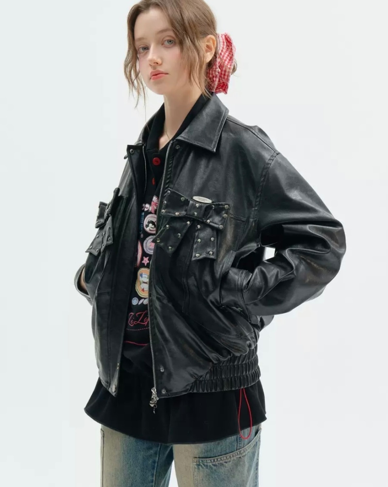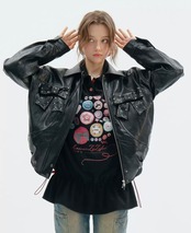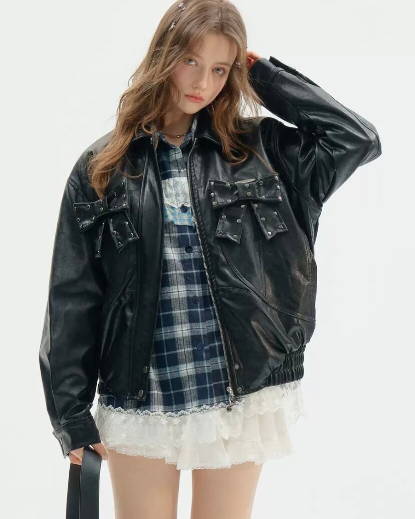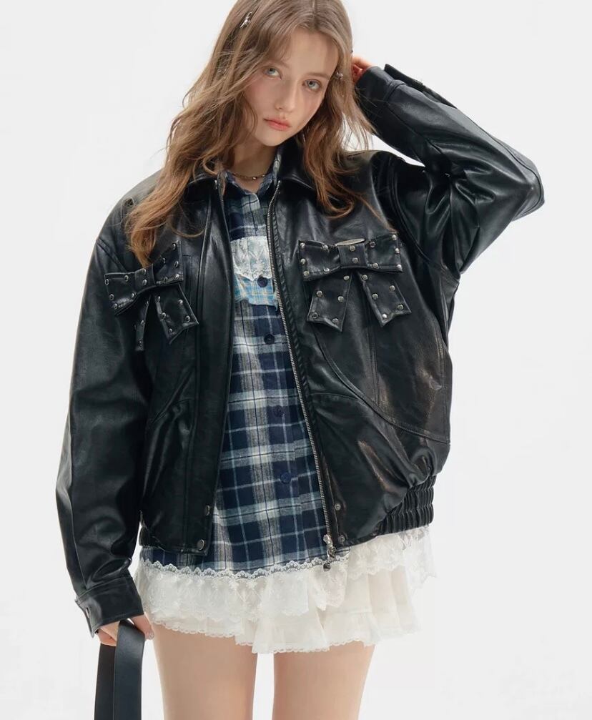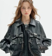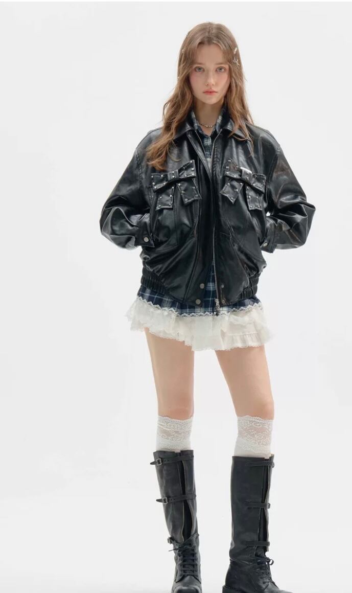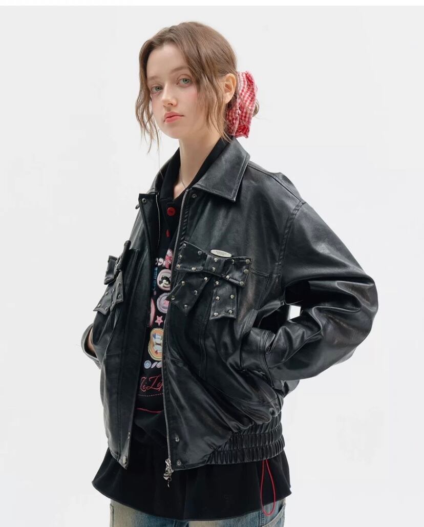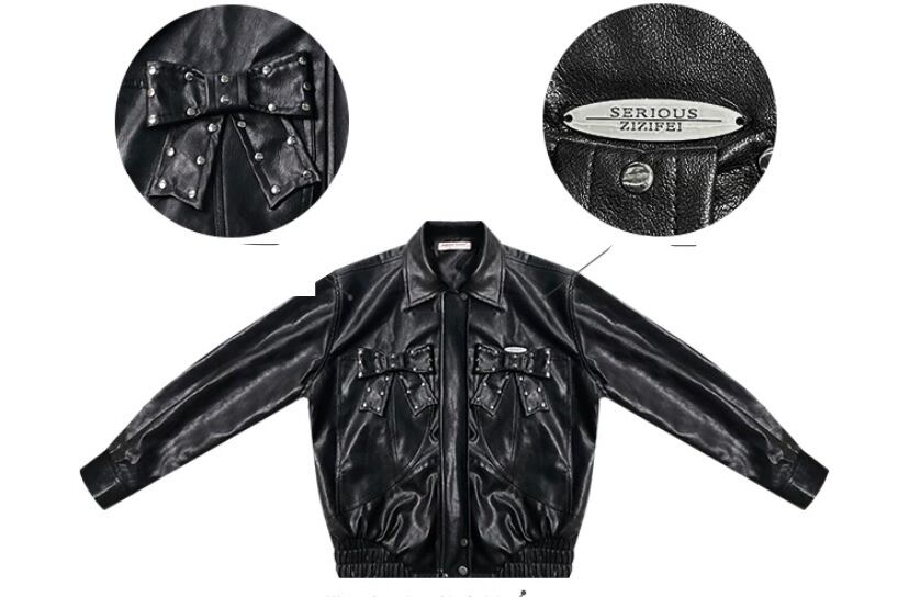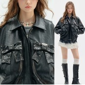 黒 ブラック 革ジャン レザージャケット アウター ブルゾン ワイルド バイク カーディガン コート 原宿 ストリート パンク ロック