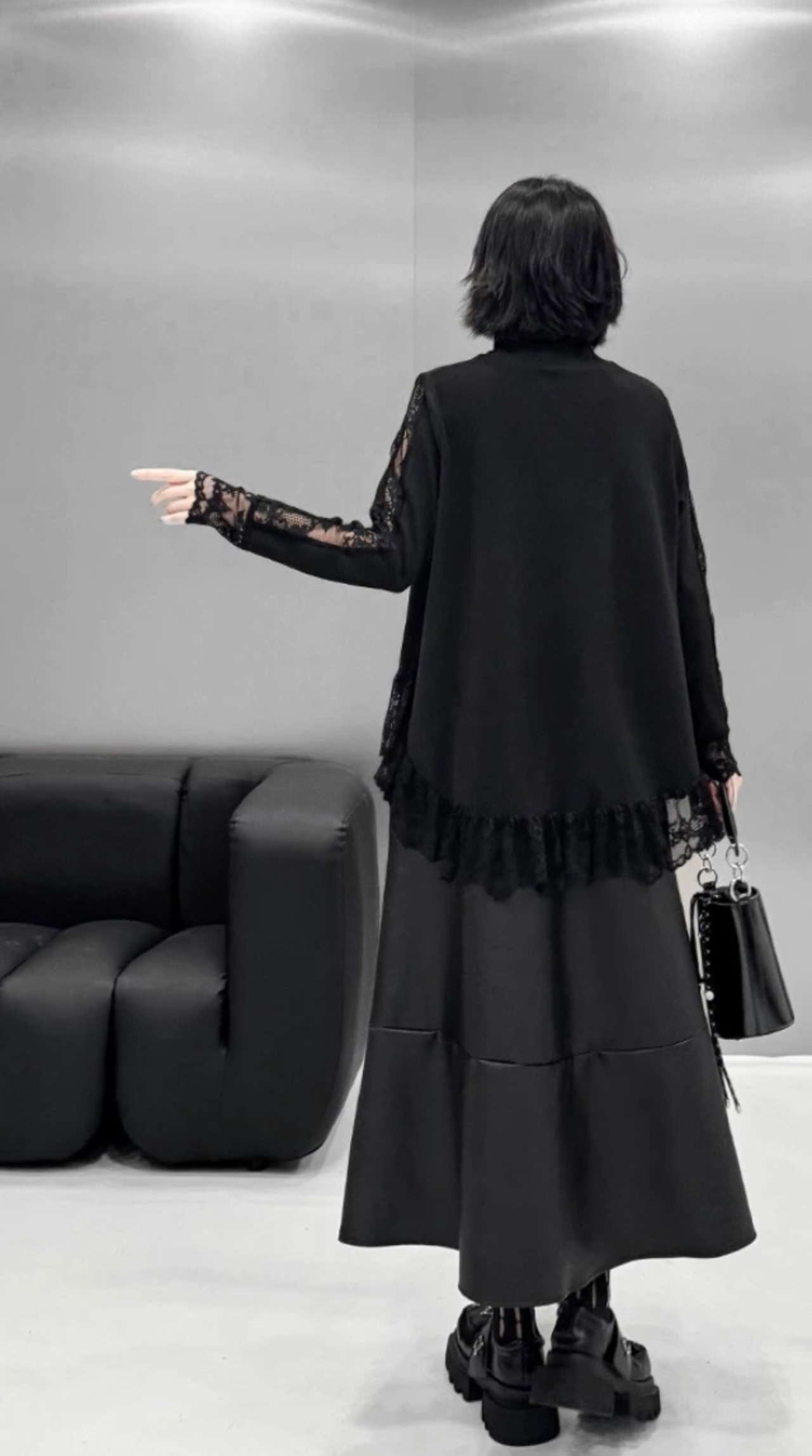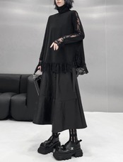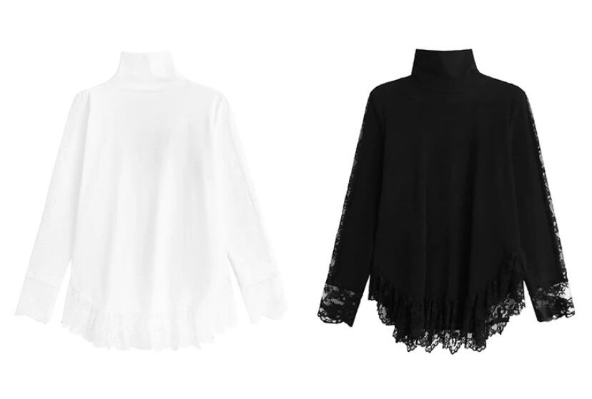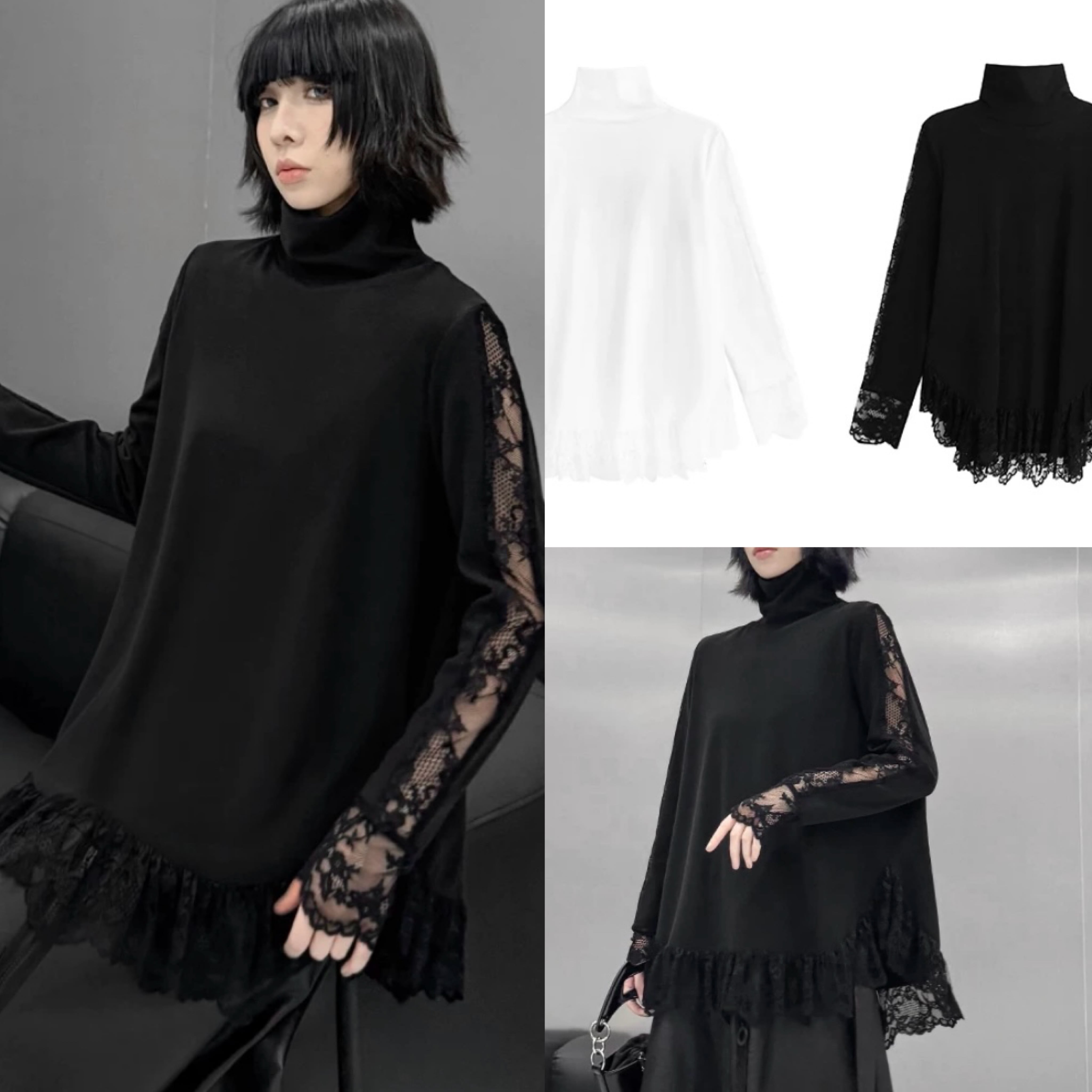 白 黒 オーバーサイズ ブラウス チュニック ハイネック トップス カジュアルジュ モード ホワイト シンプル