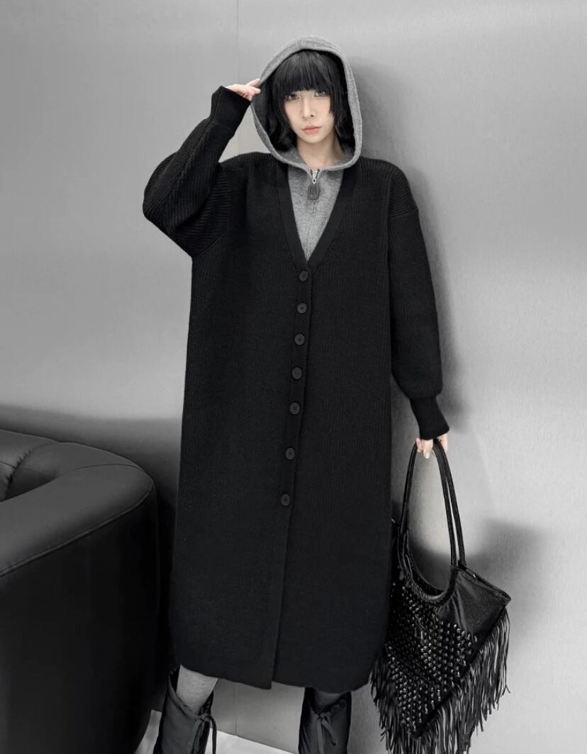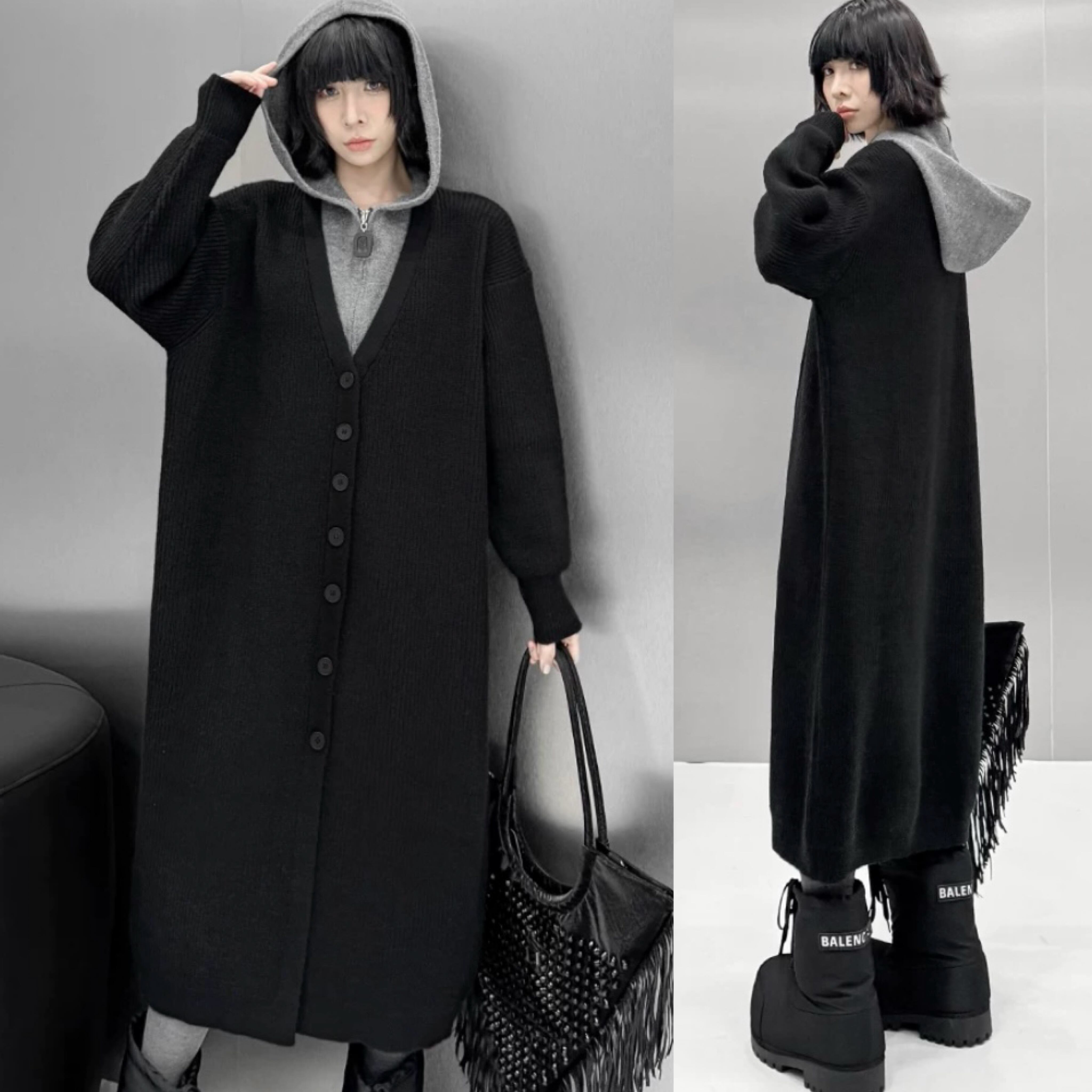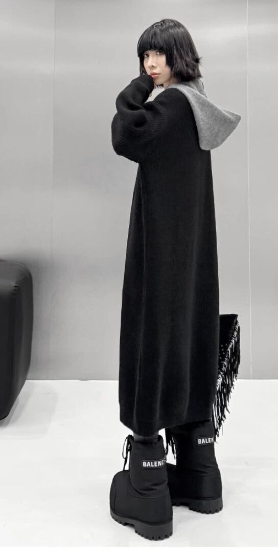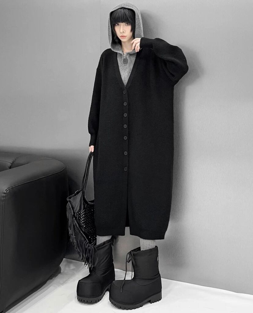 ニット グレー 黒 カジュアル カーディガン ワンピース トップス オーバーサイズ ゆったり パーカー スウェット Simple