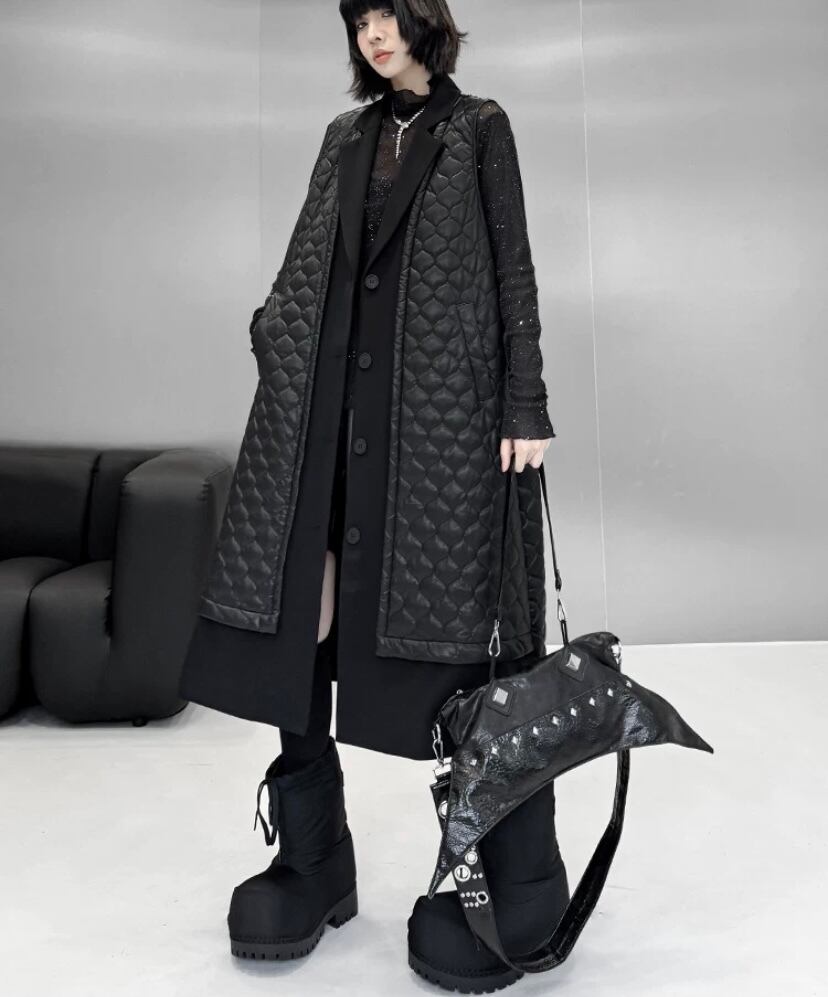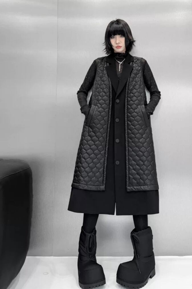 ロングベスト ダウンコート ジャケット インナーコート わた ジャケット コート ワンピース シンプル 黒 アウター ストリート