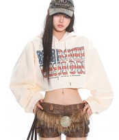 ベージュ グレー パーカー スウェット オフショルダー Y2K ギャル スウェット ヒップホップ 原宿 クラブ 夜遊び ダンス トレーナー ファー カジュアル ストリート セクシー トップス トレーナー パーカー ブラス トレーナー アメリカン