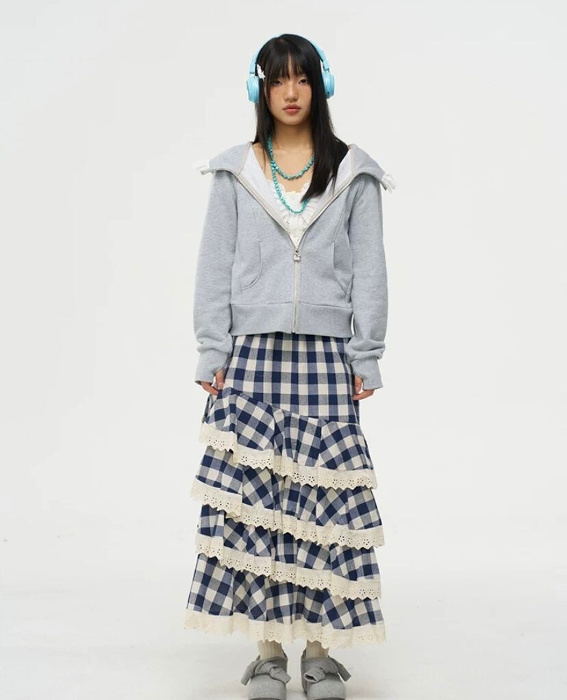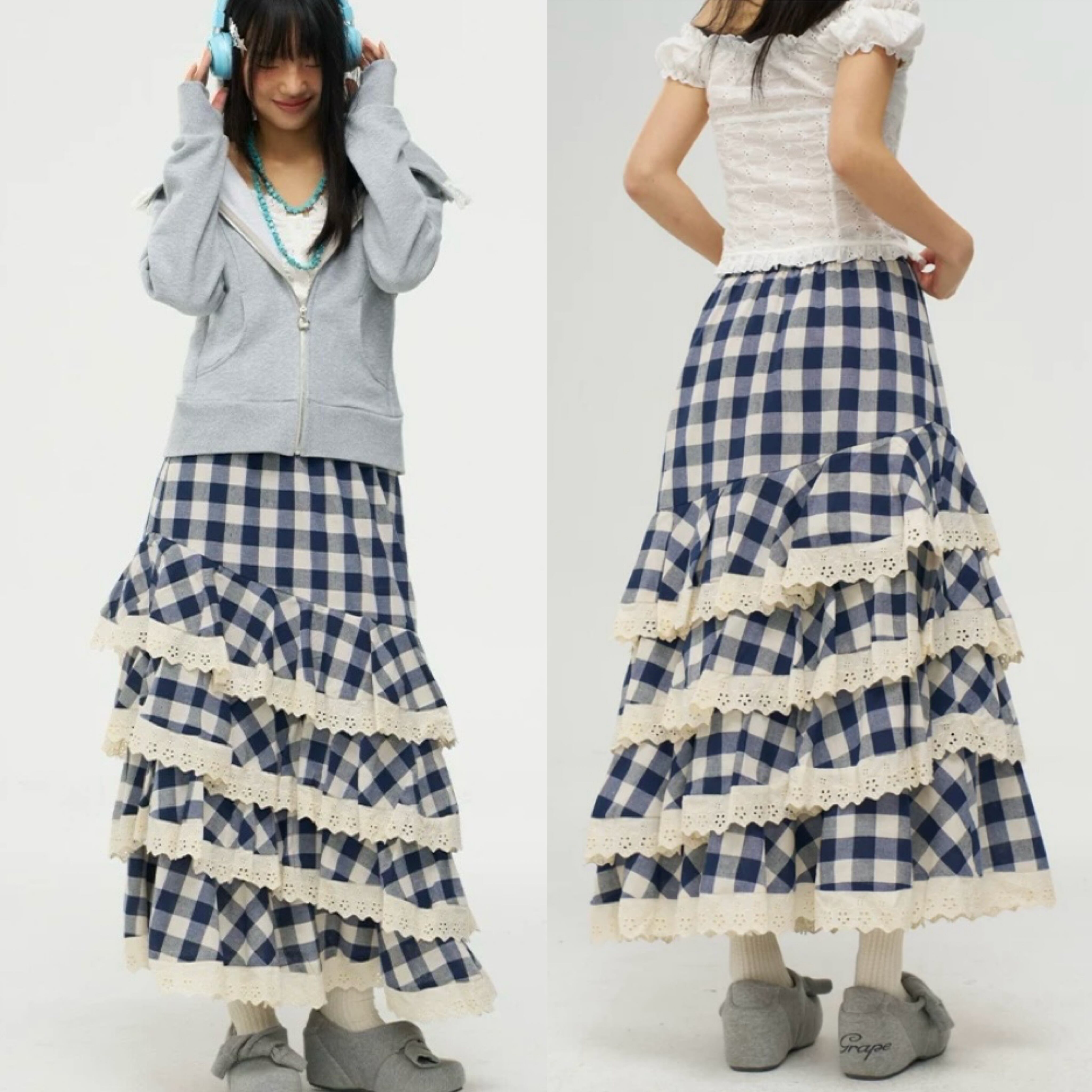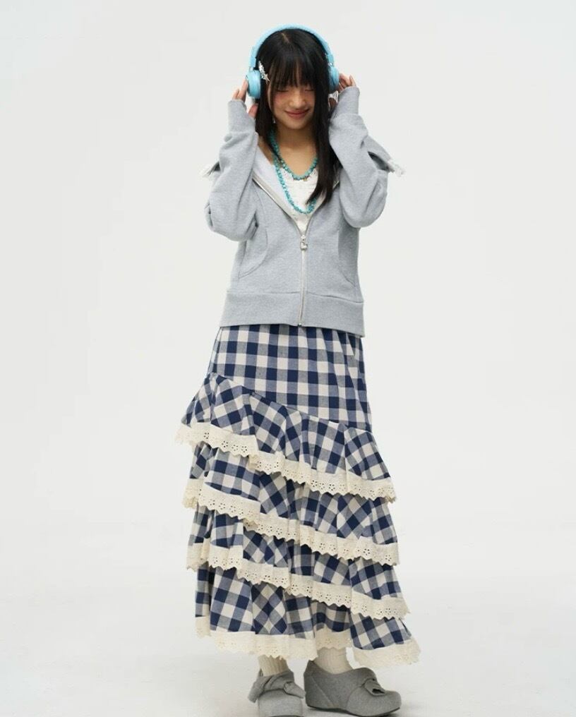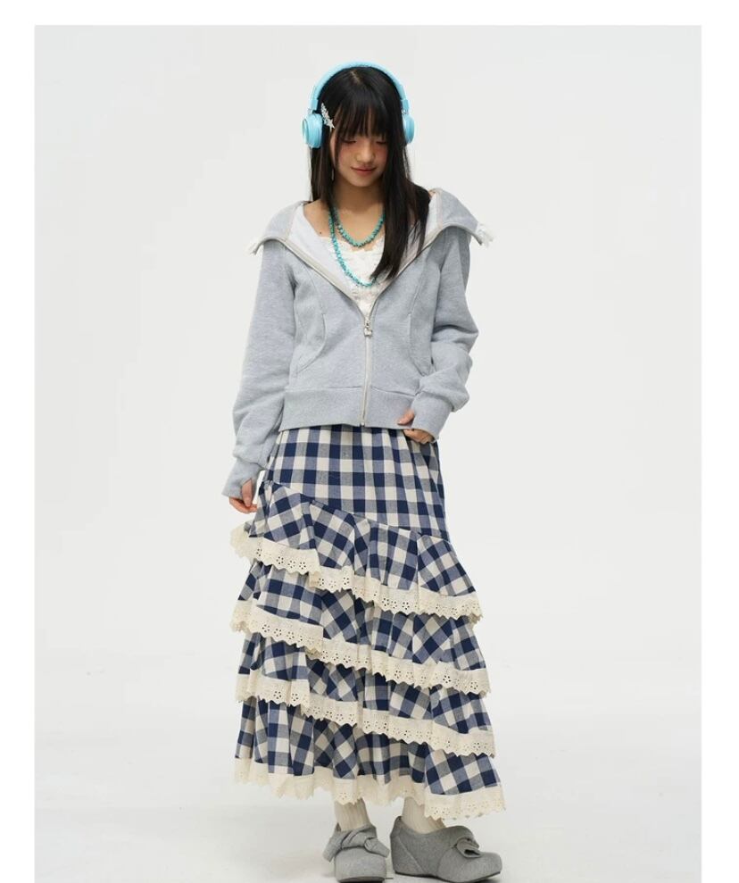 ネイビー チェック 白 ボトムス フリル マキシ マーメイド スカート かわいい 原宿 ホワイト ガーリー ギンガムチェック
