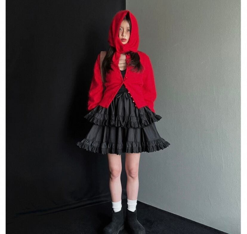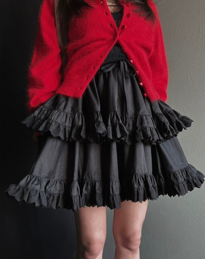 黒 白 アイボリー フレアスカート、ミニスカート、膝丈、フレア ボトムス、シンプル 無地 原宿、かわいい 姫 リボン