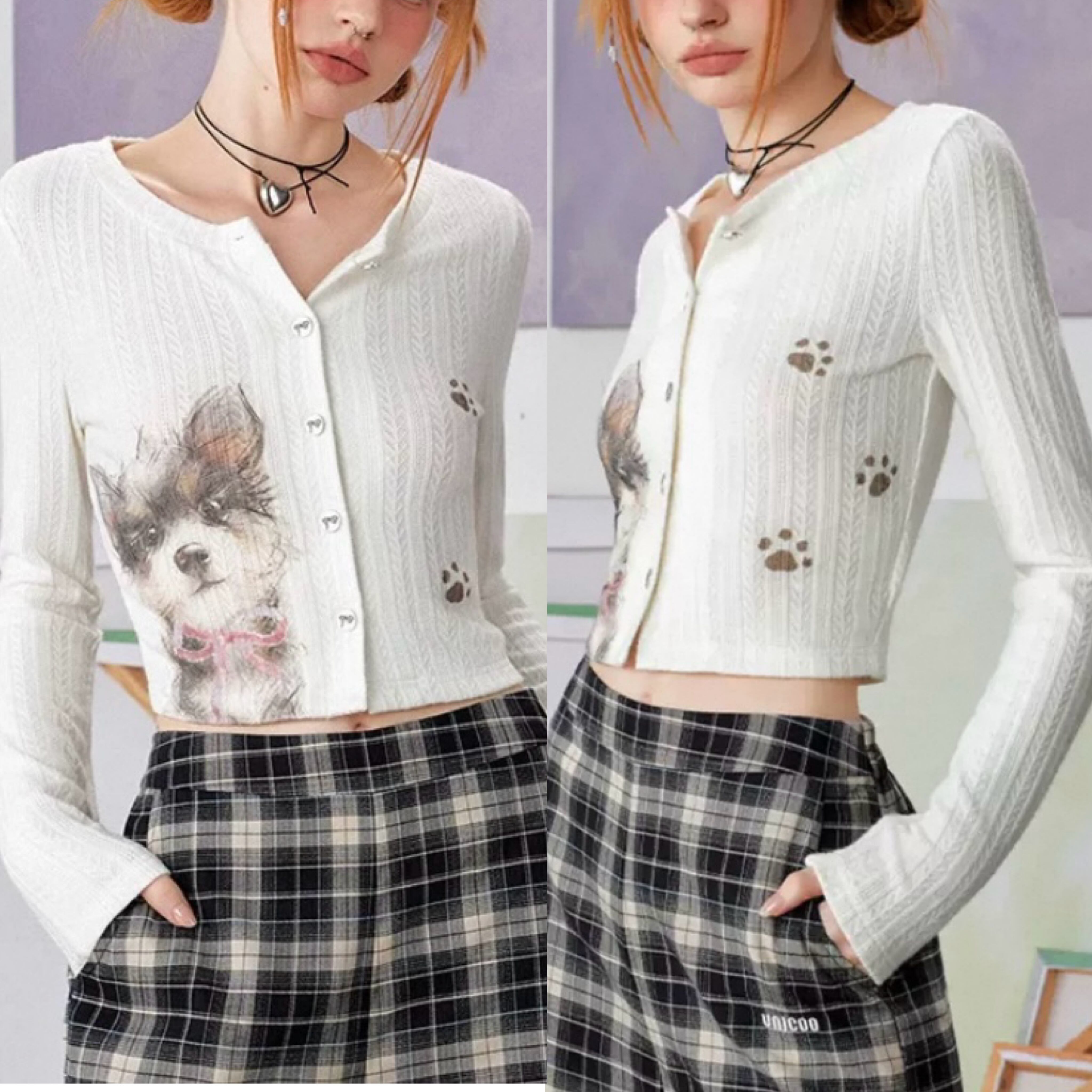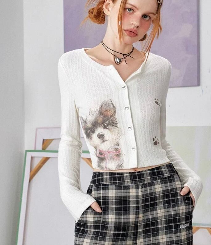 白犬、ホワイト、ペット、ヨークシャー、テリア、アニマル、カーディガン、トップス、アウター、ブラウス、原宿、かわいいチワワ
