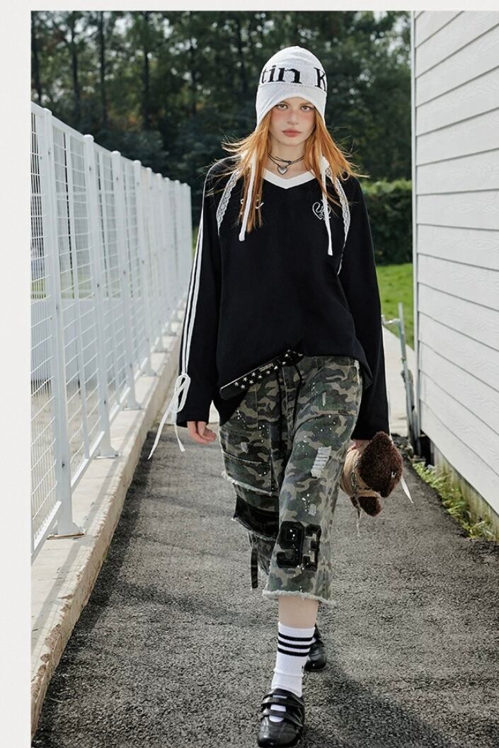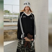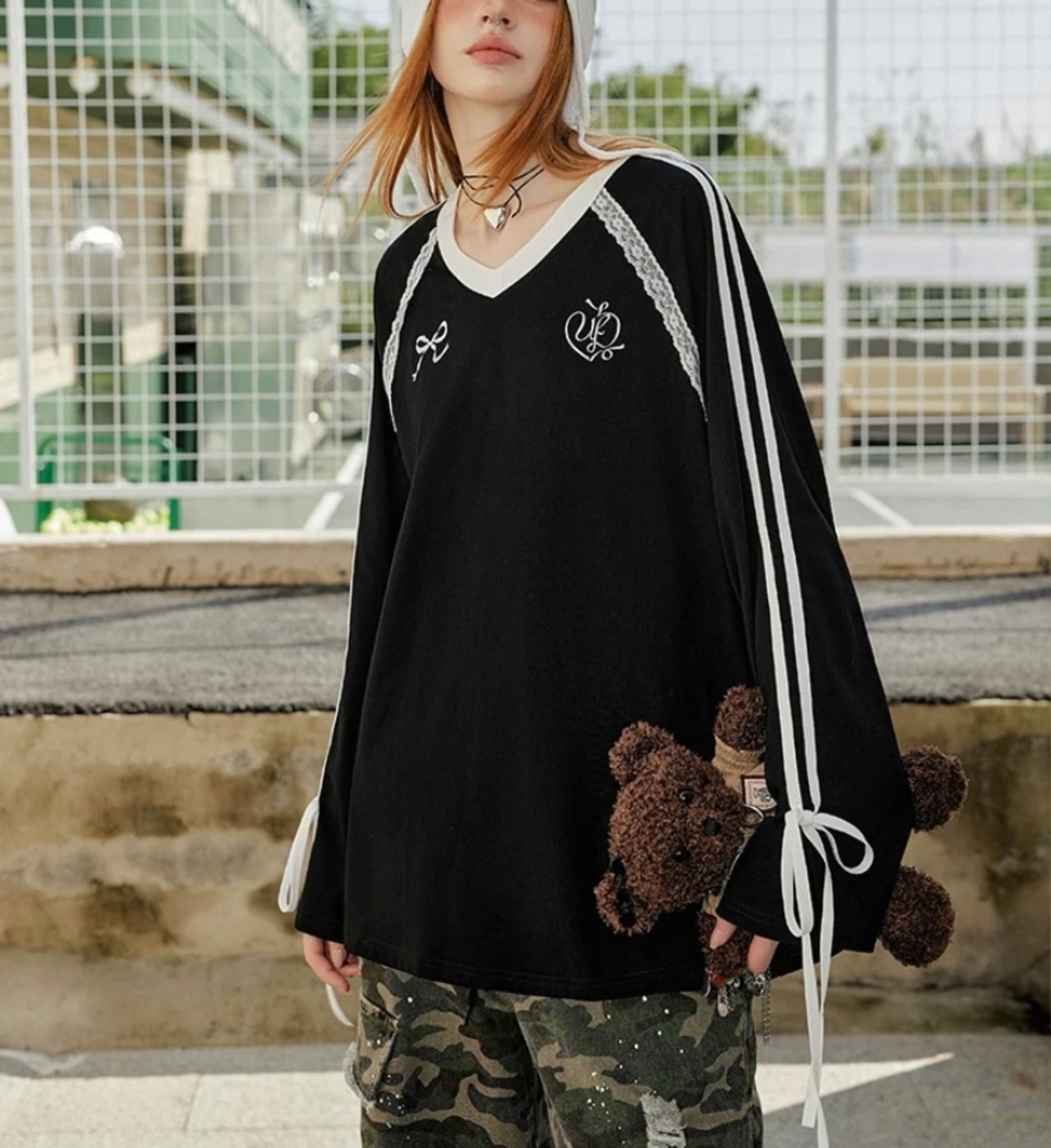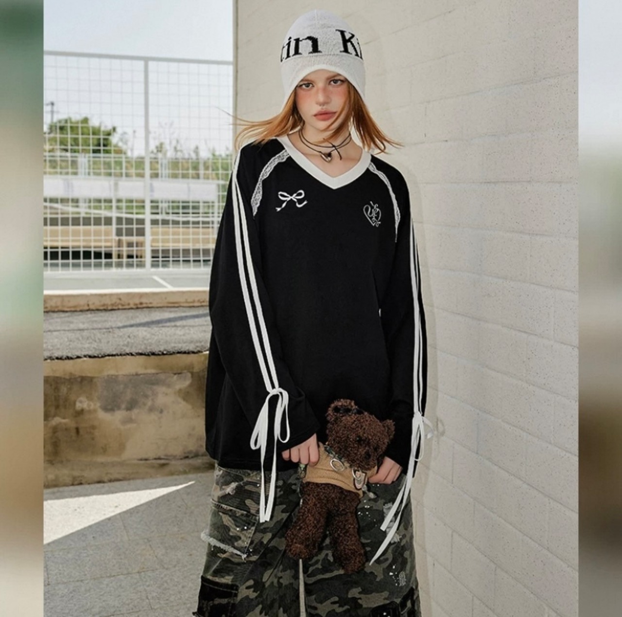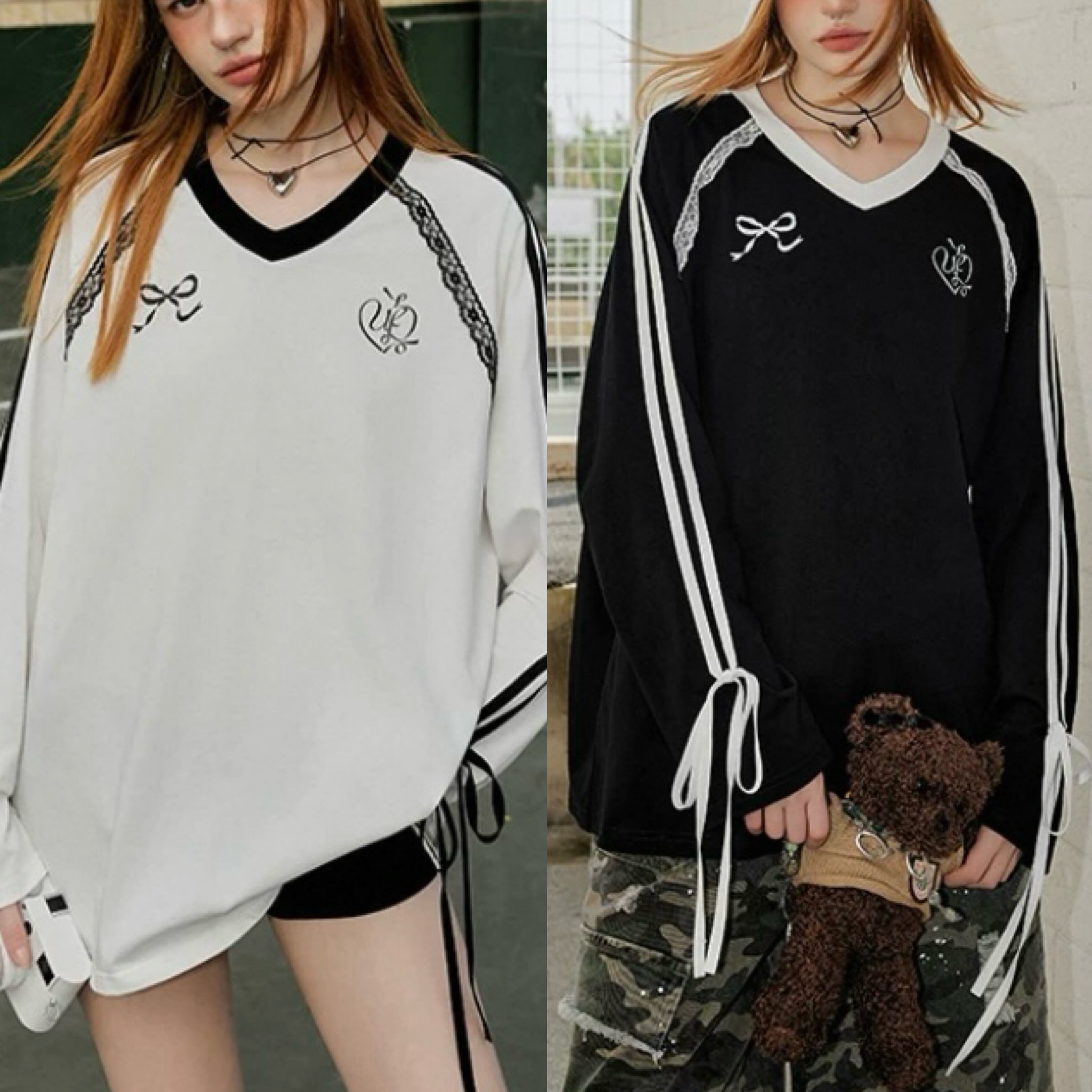 白 黒 リボン、ナンバー、トップス、カジュアル 23 Tシャツ、ブラウス、原宿 ルームウェア スウェット トレーナー ボーダー、シンプル スポーティー