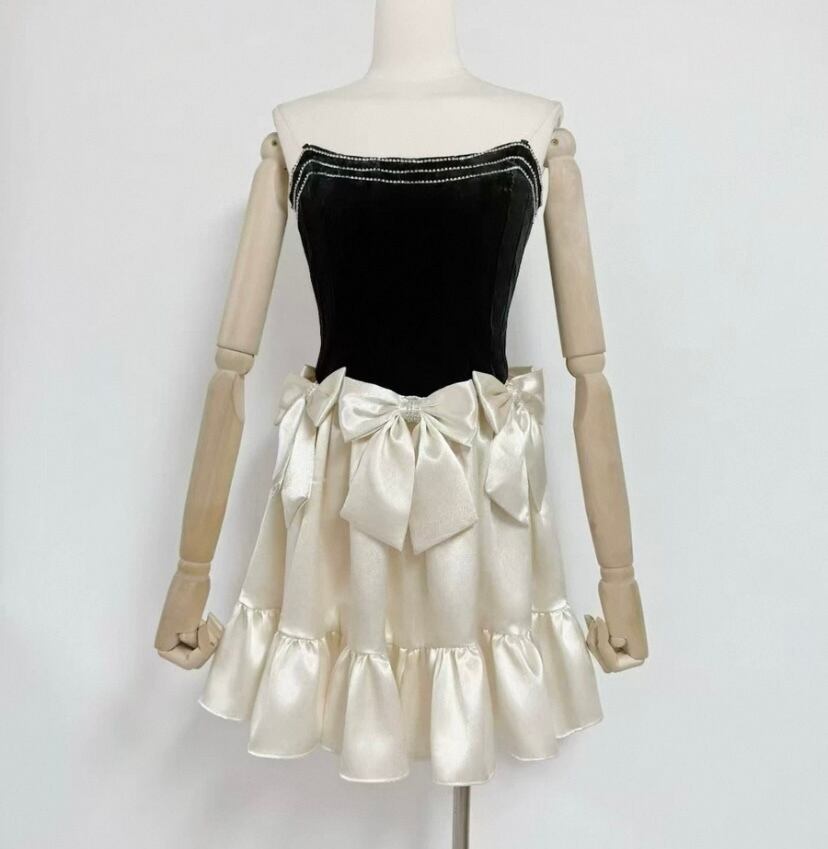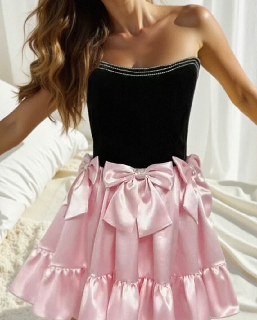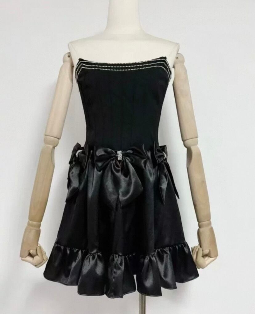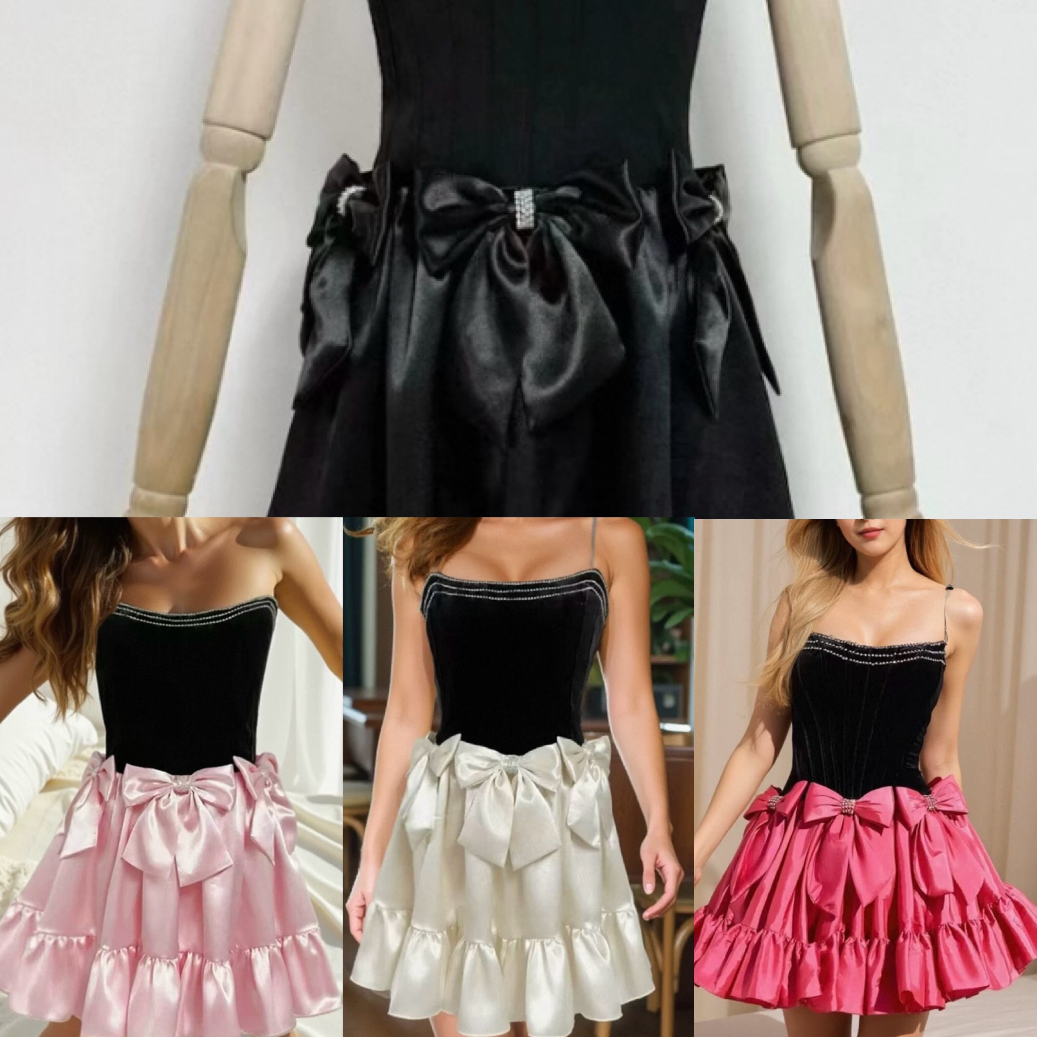 キャミソール ドレス リボン パーティー 発表会、ピンク 黒 白 ラインストーン かわいい 姫 ロリータ 銀座 ドレス ワンピース XL