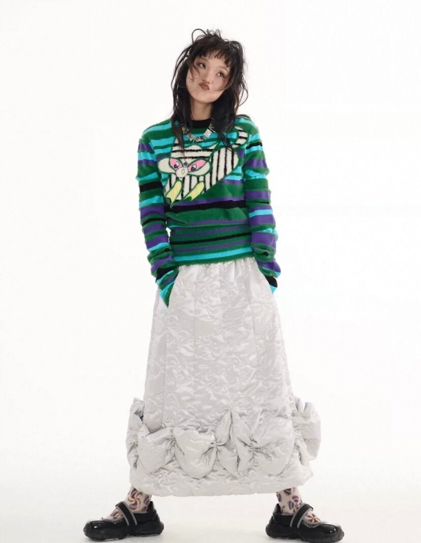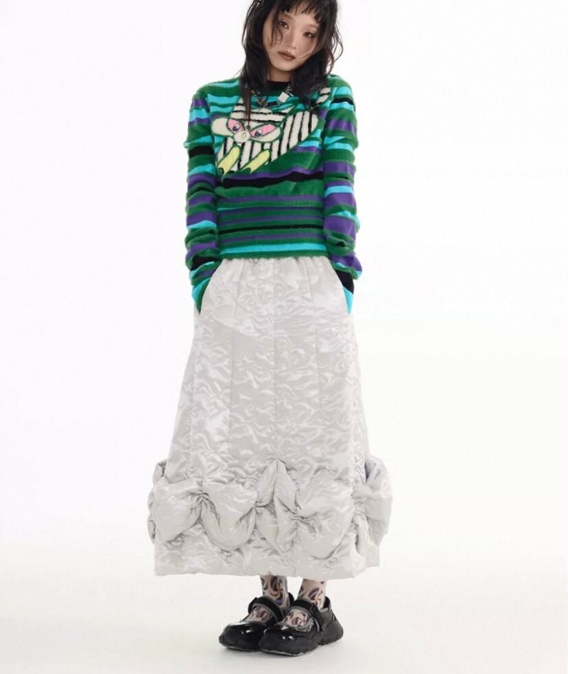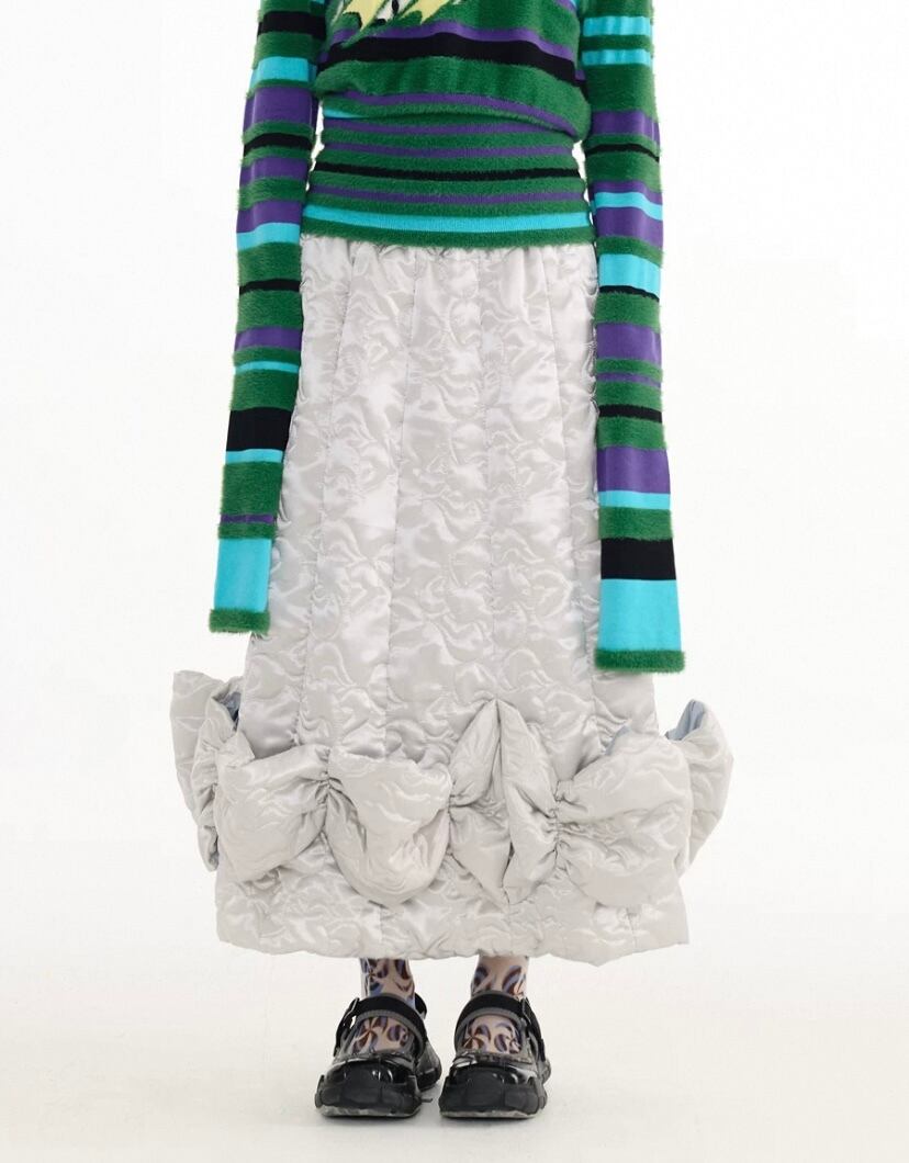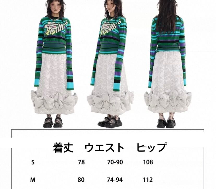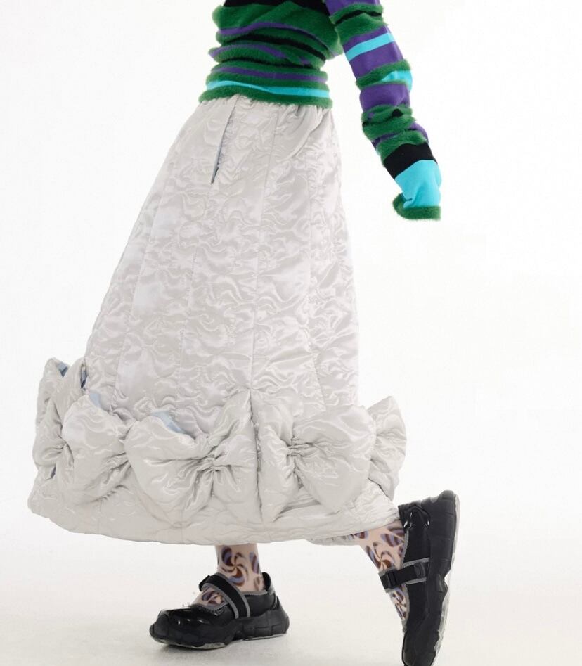 リボン、シルバー、白、ふわふわ、マキシ、スカート、ボトムスタイト、かわいい ガーリー、個性的、原宿 デコレーション