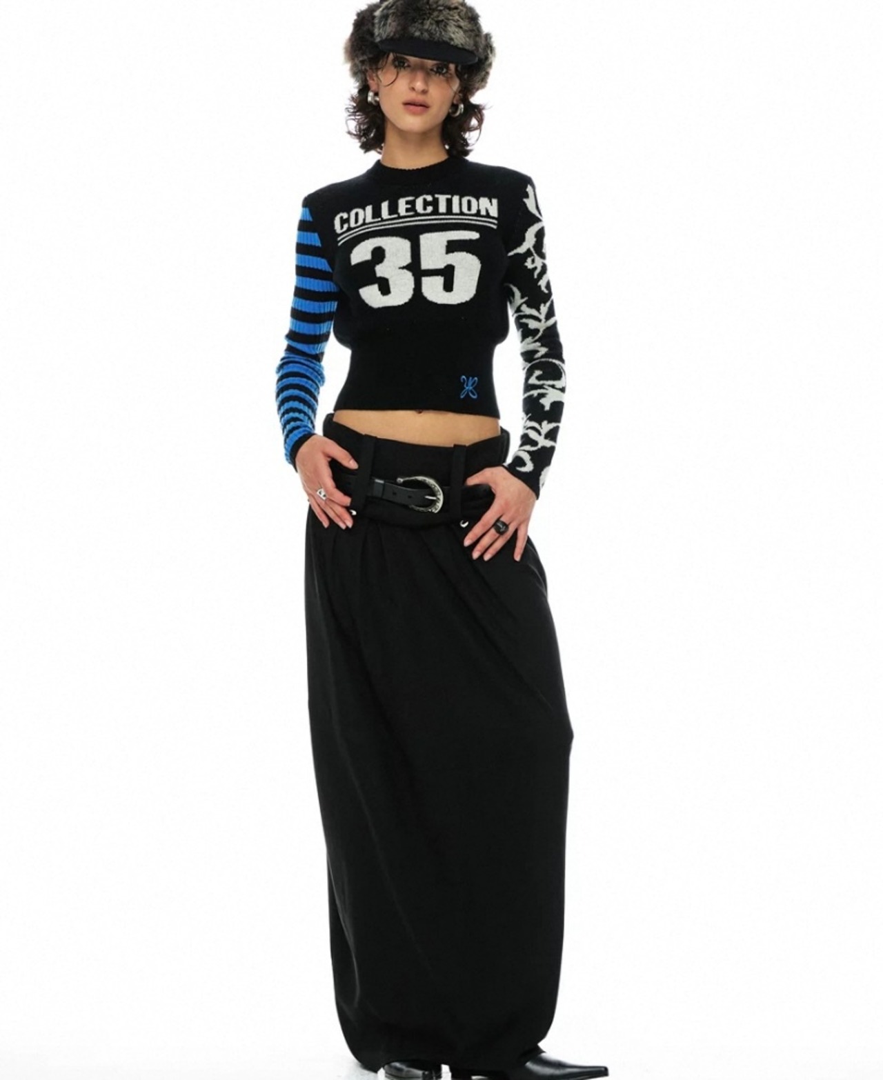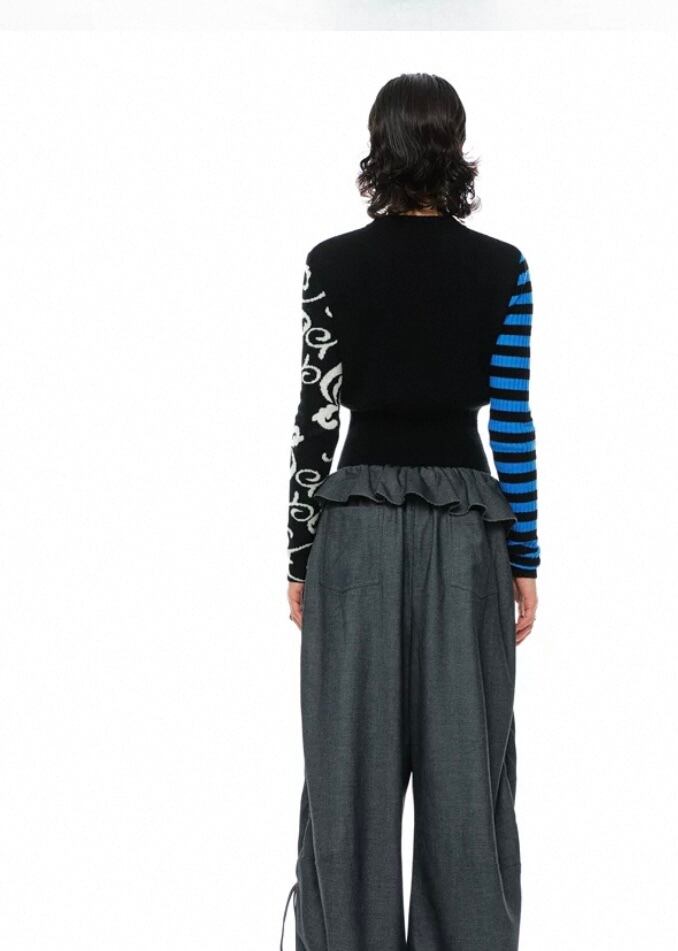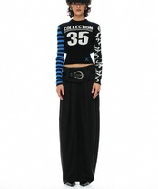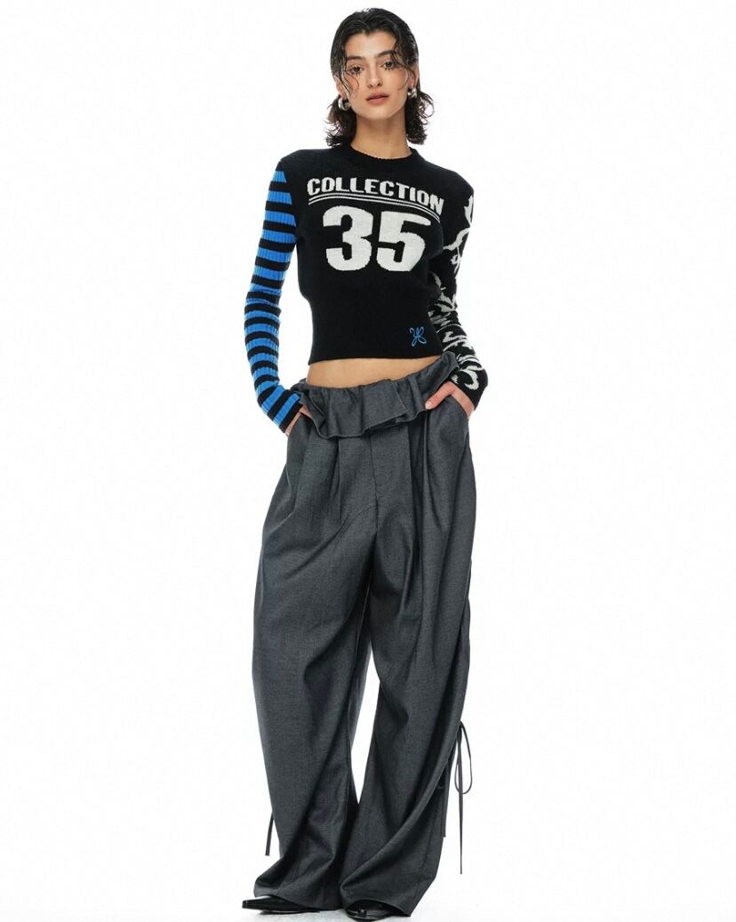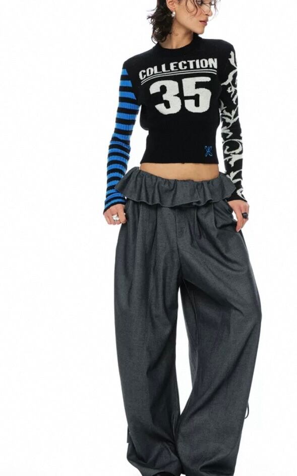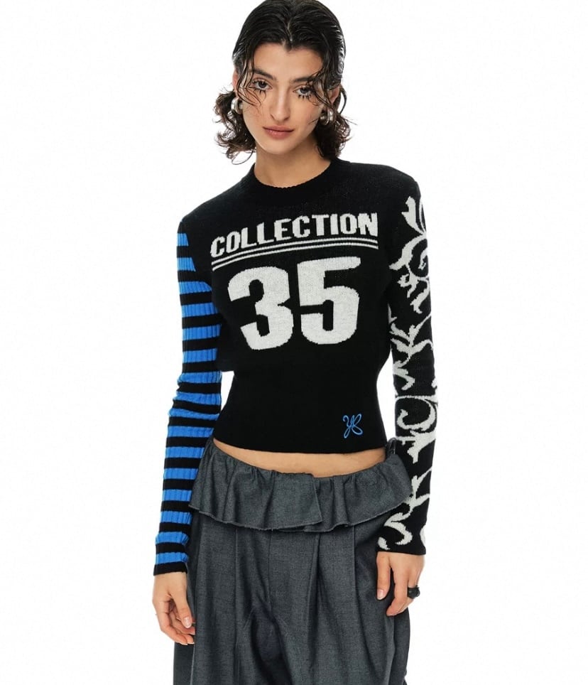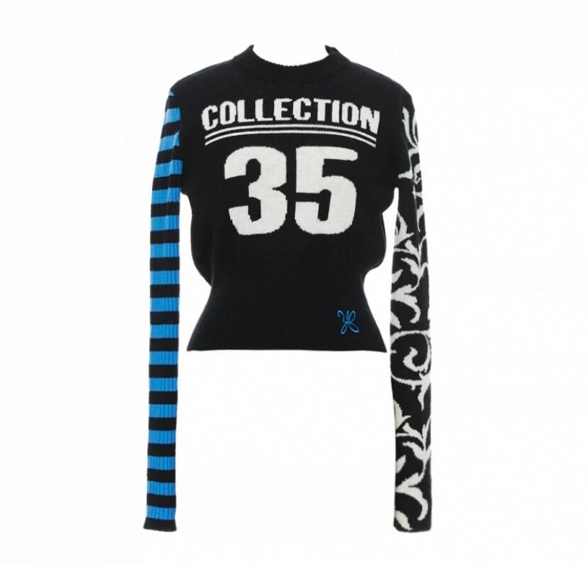 黒 ボーダー 水色、ネイビー白 ナンバー 35 セーター、カーディガン ブラウス、トップス、短い クラブ、ダンス ストリート ギャル ヒップホップ