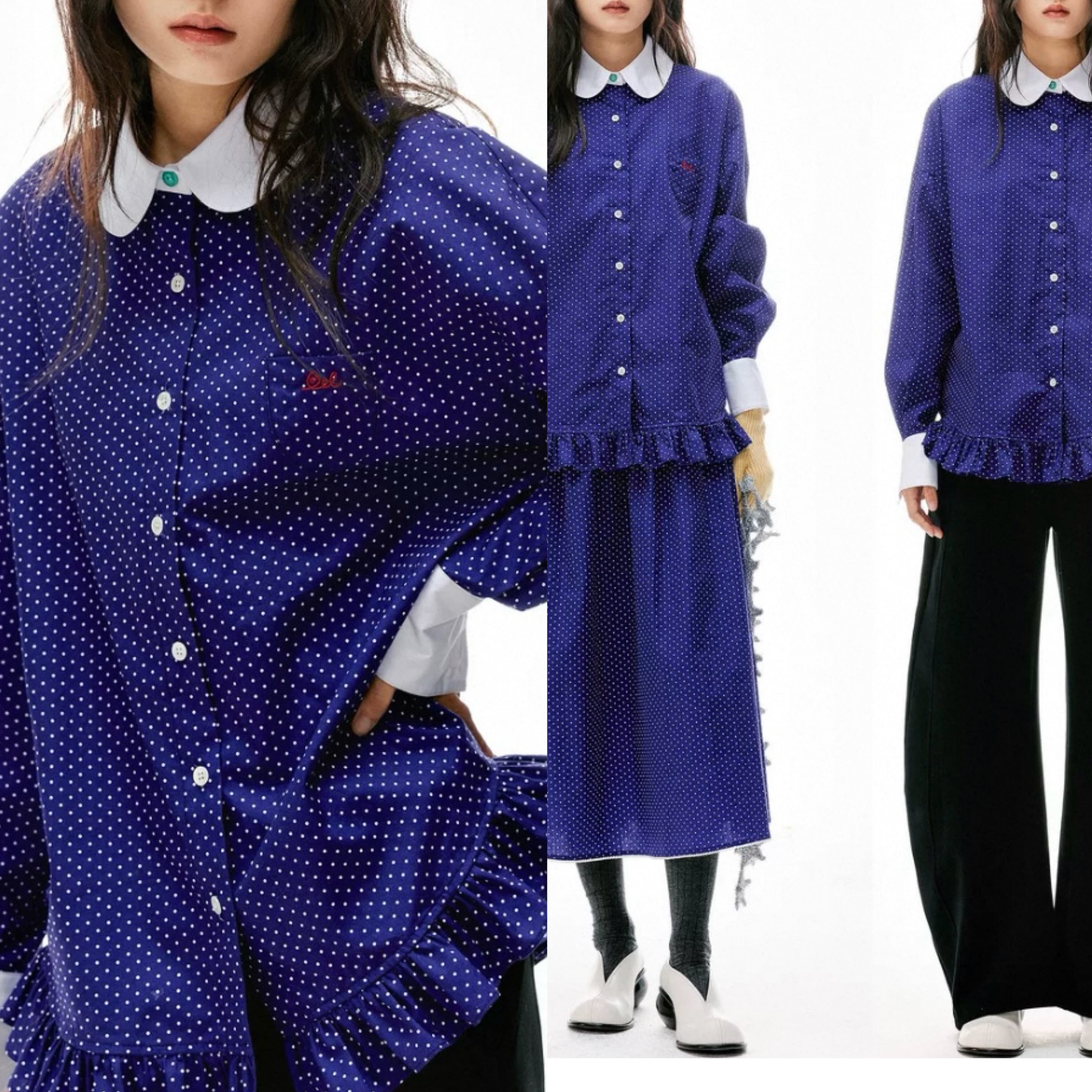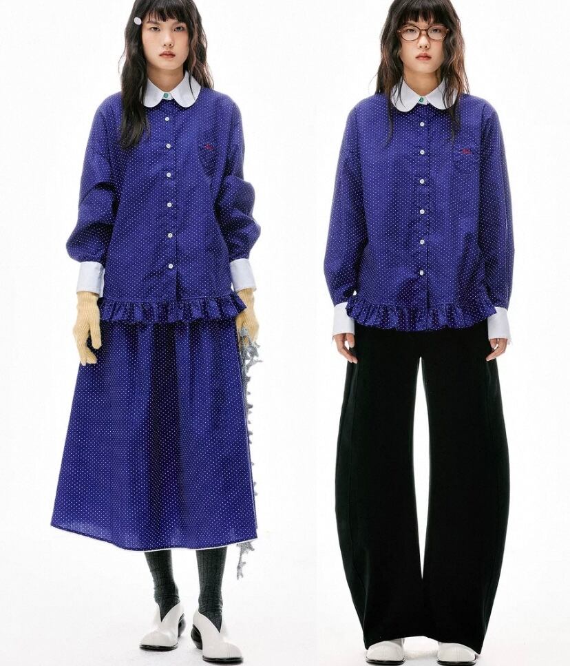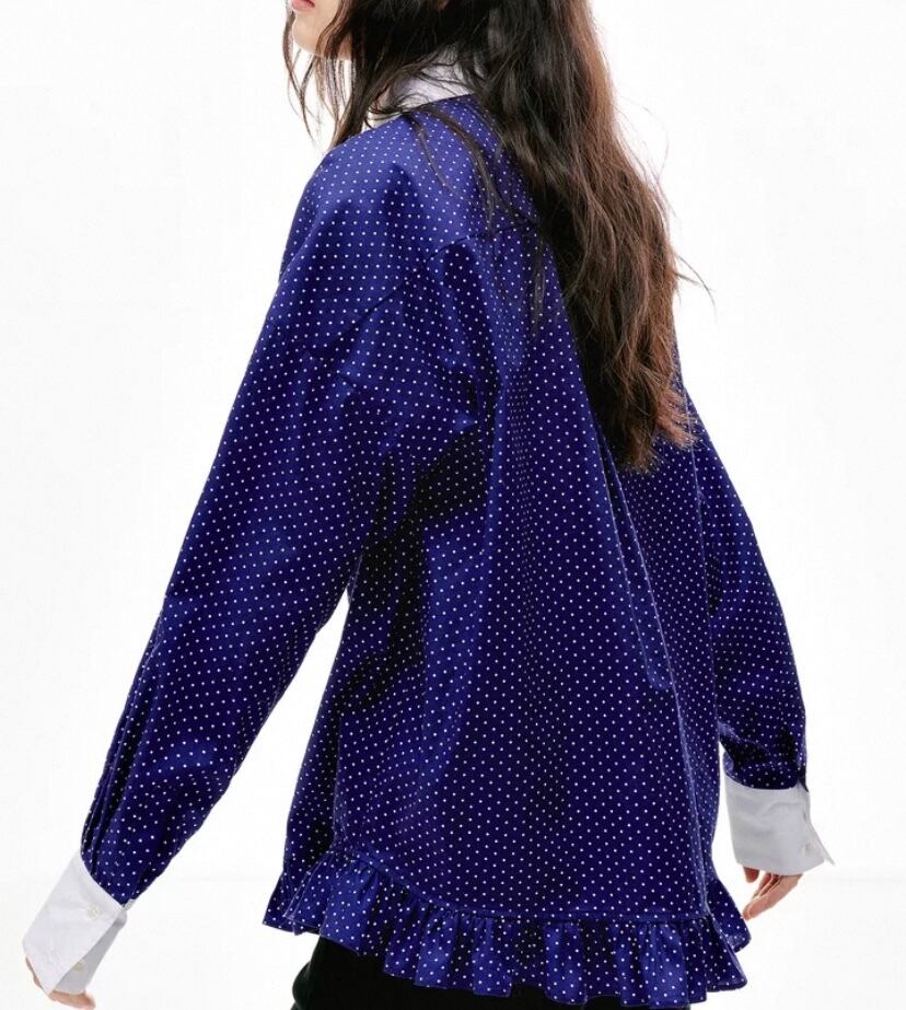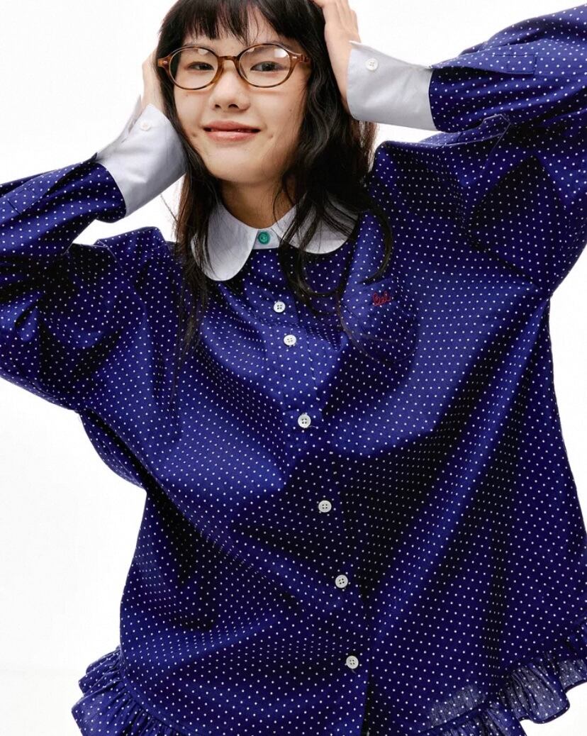 ネイビー ガーリー、白、襟 丸襟、ブラウス、オーバーサイズ、トップス、原宿 、裏原宿、ゆったり、シンプル