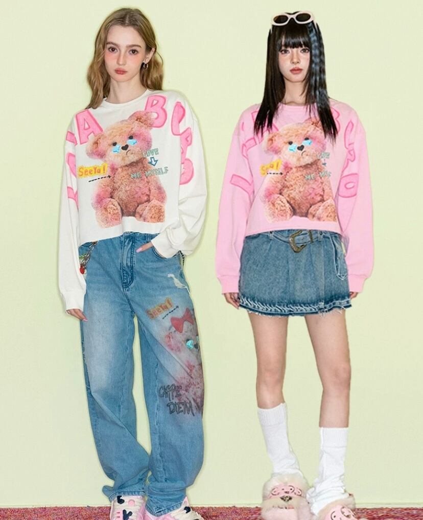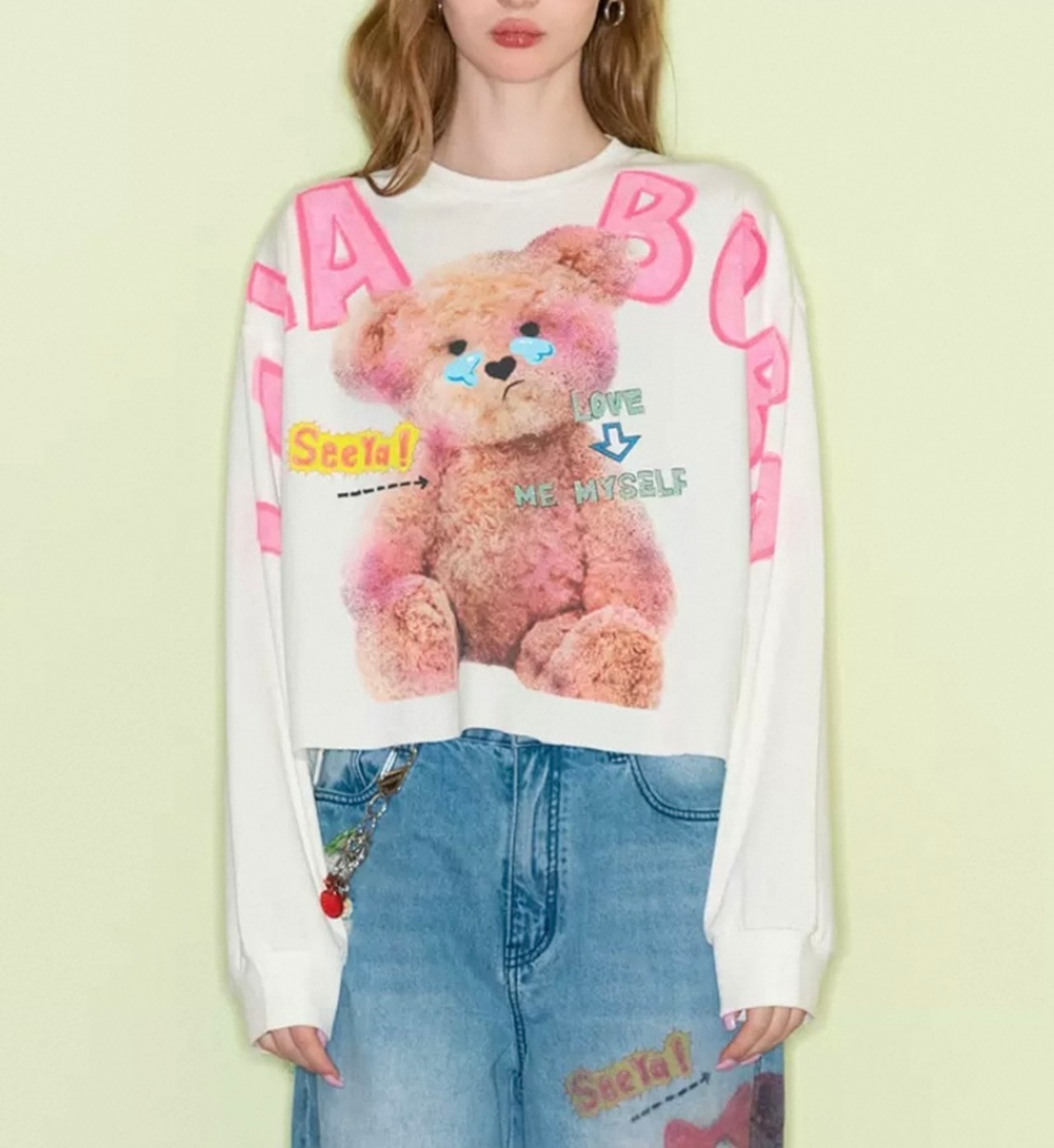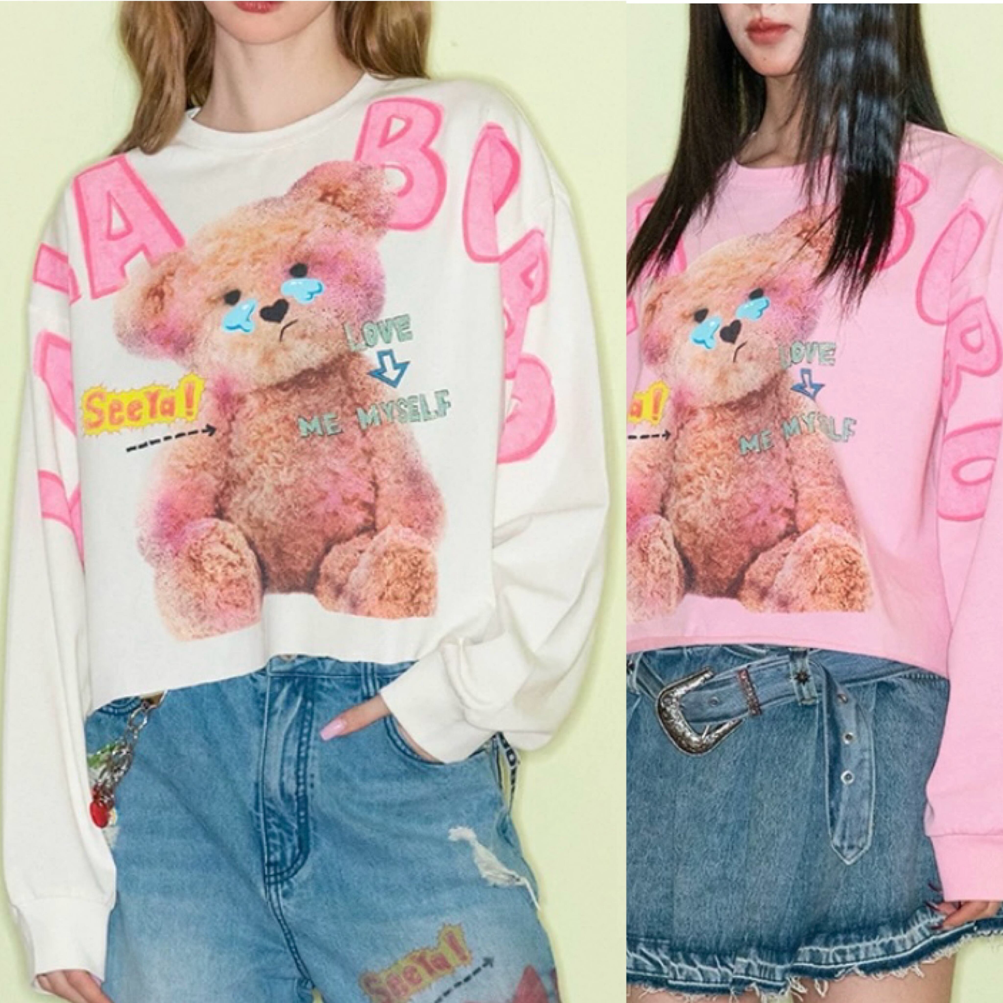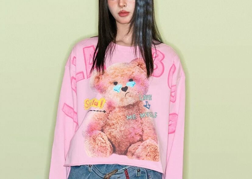 ★サイズ 熊、ピンク、スエット、白 リボン かわいい くまさん、トップス、ギャル 原宿 スウェット パーカー トレーナー カーディガン ブラウス トップス