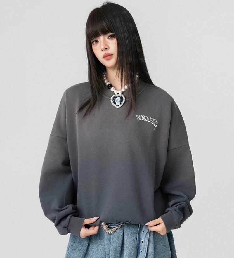 グレー くまさん、スエット トップス パーカー トレーナー ストリート、カジュアル ダンス ルームウェア タグ、原宿 可愛い