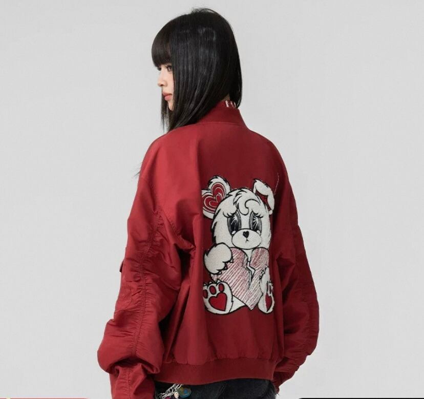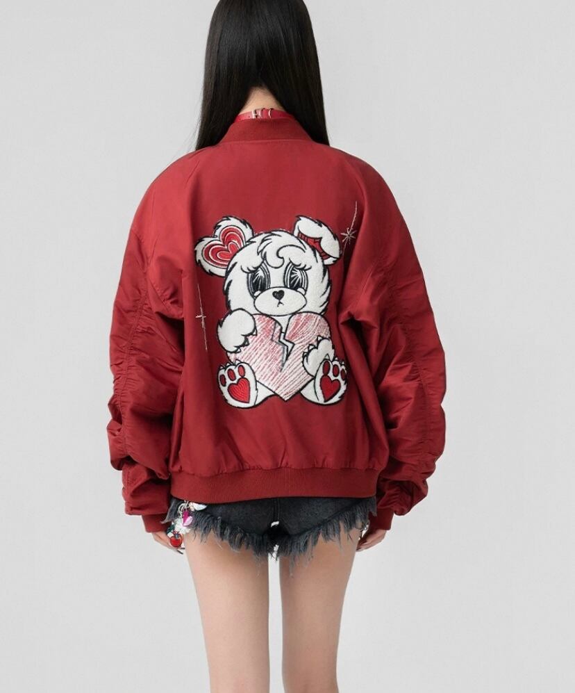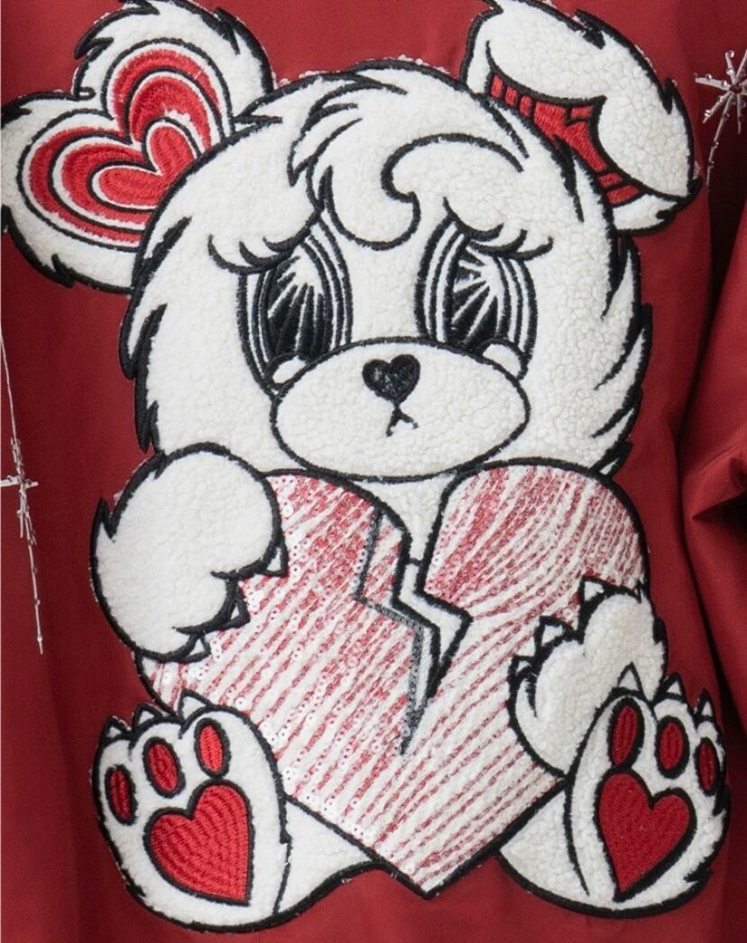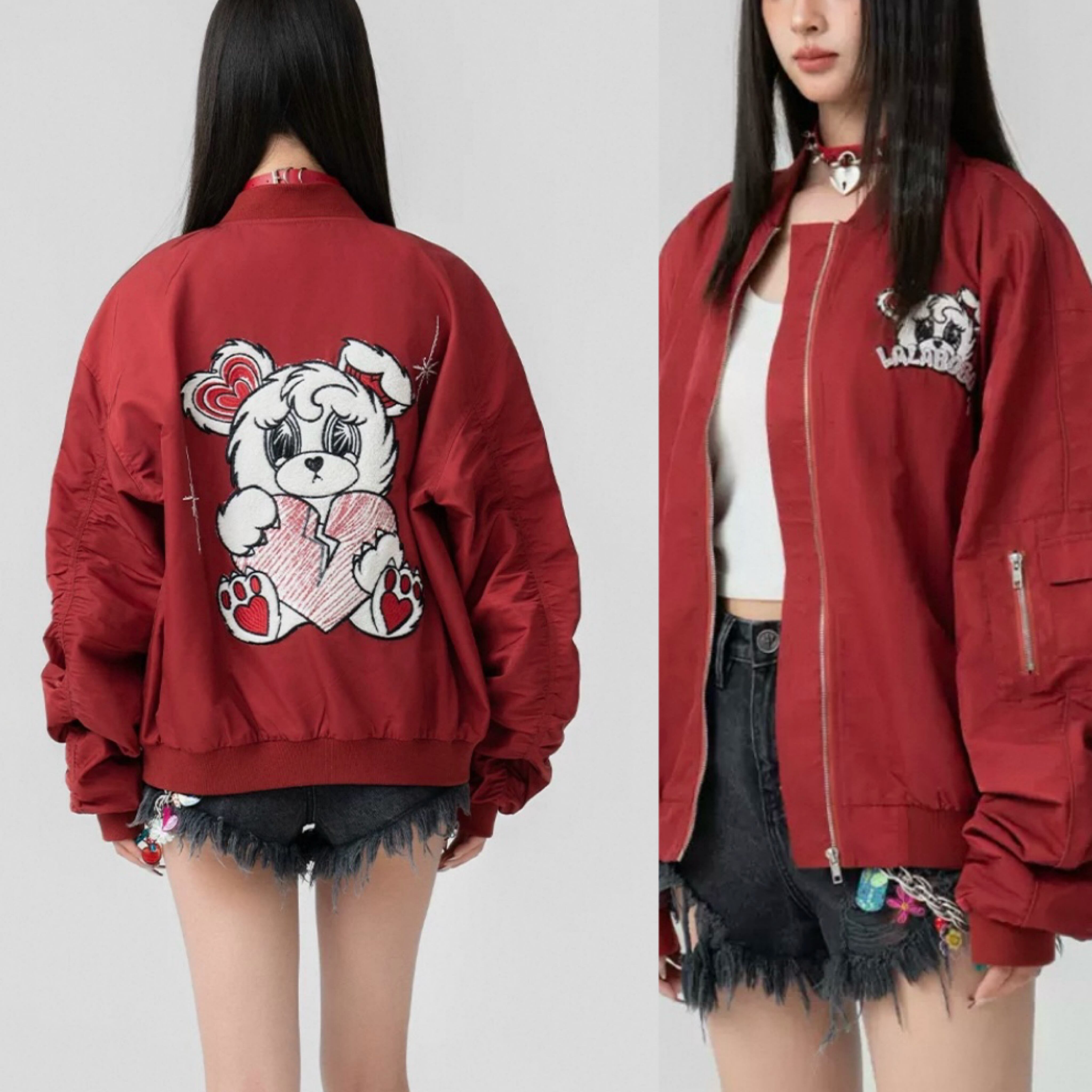 ★サイズ 赤 熊 ハート スエット ジャンバー、ブルゾン、カーディガン、トップス、アウターコート、かわいい リボン、原宿 ガーリー ストリート スウェット