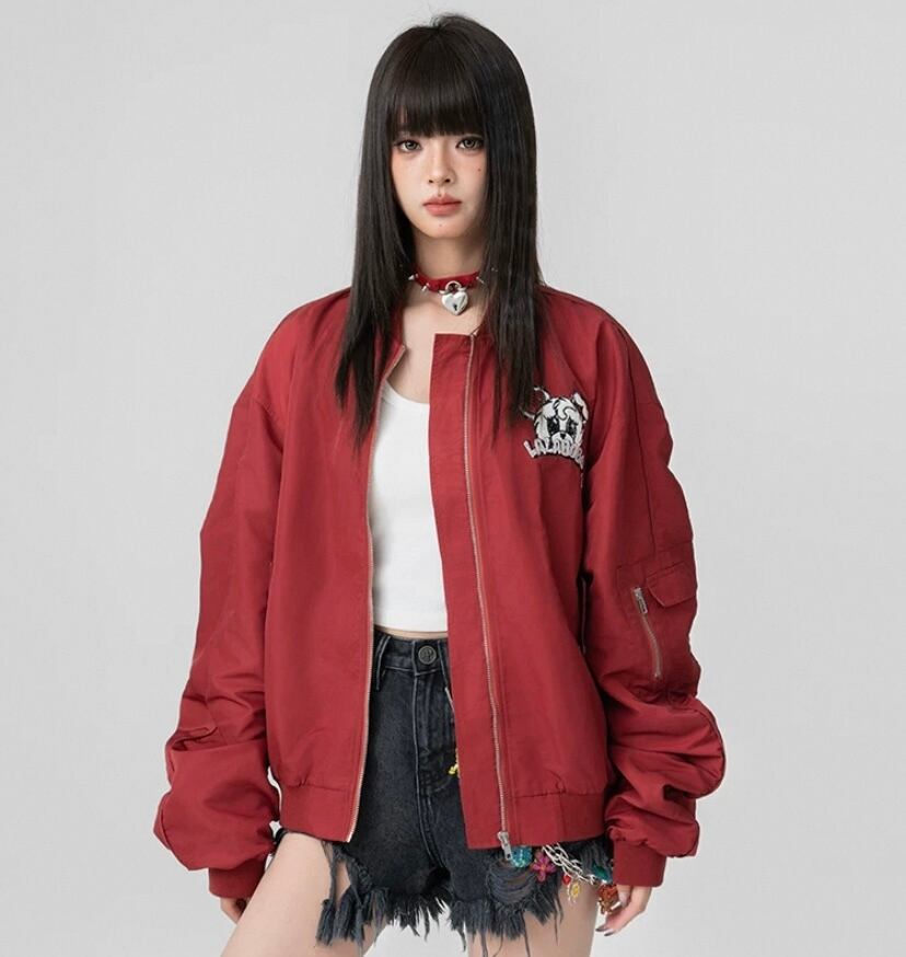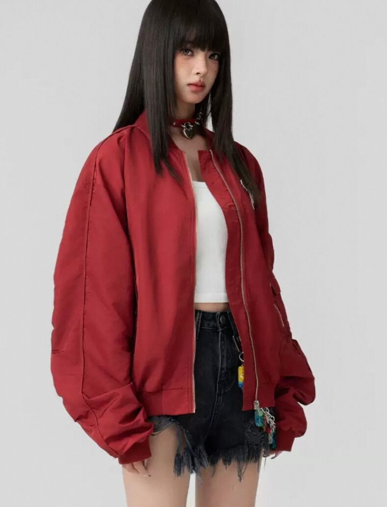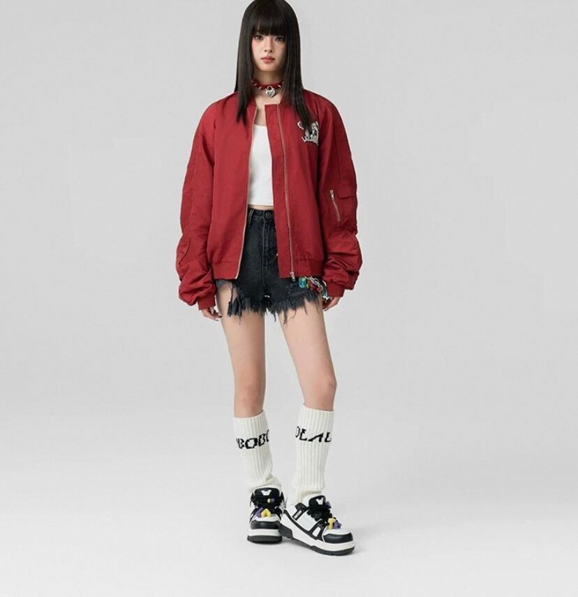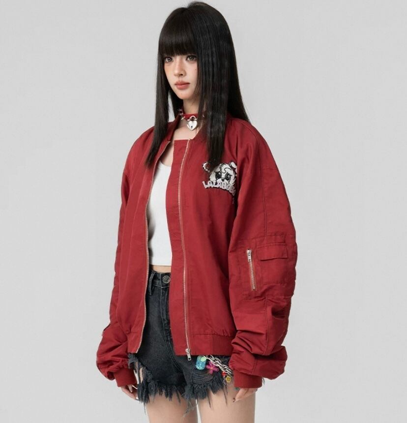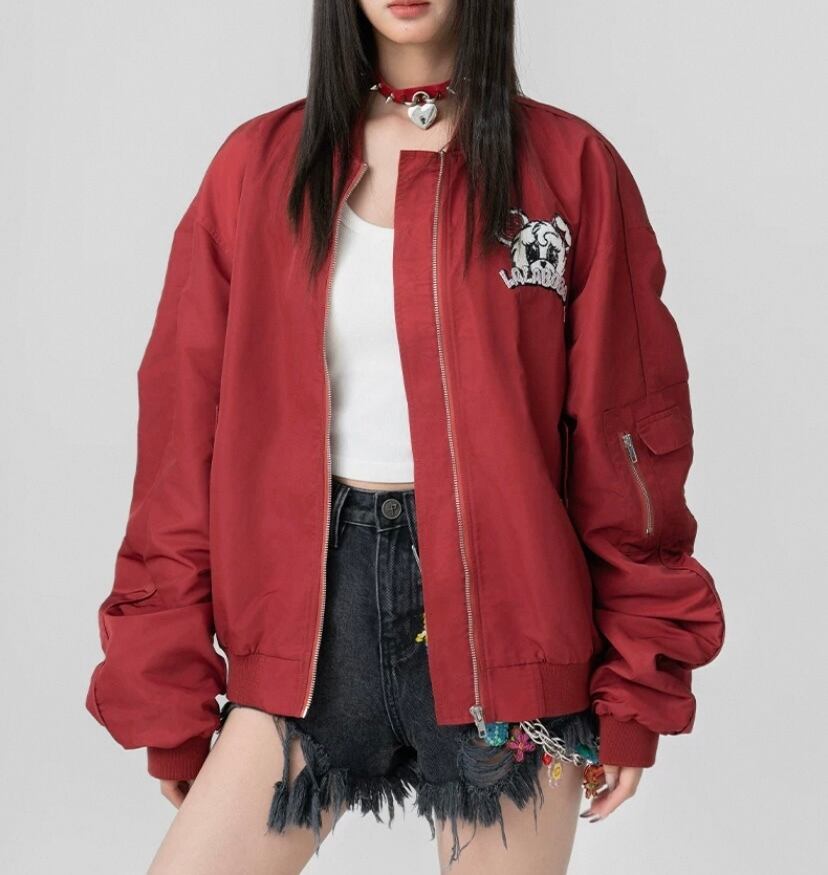 ★サイズ 赤 熊 ハート スエット ジャンバー、ブルゾン、カーディガン、トップス、アウターコート、かわいい リボン、原宿 ガーリー ストリート スウェット