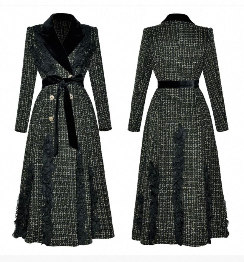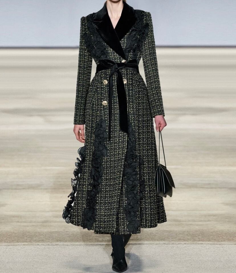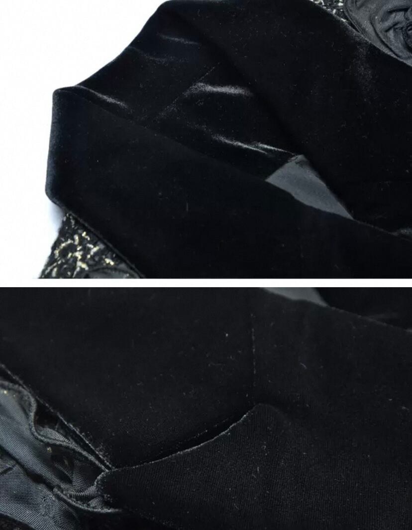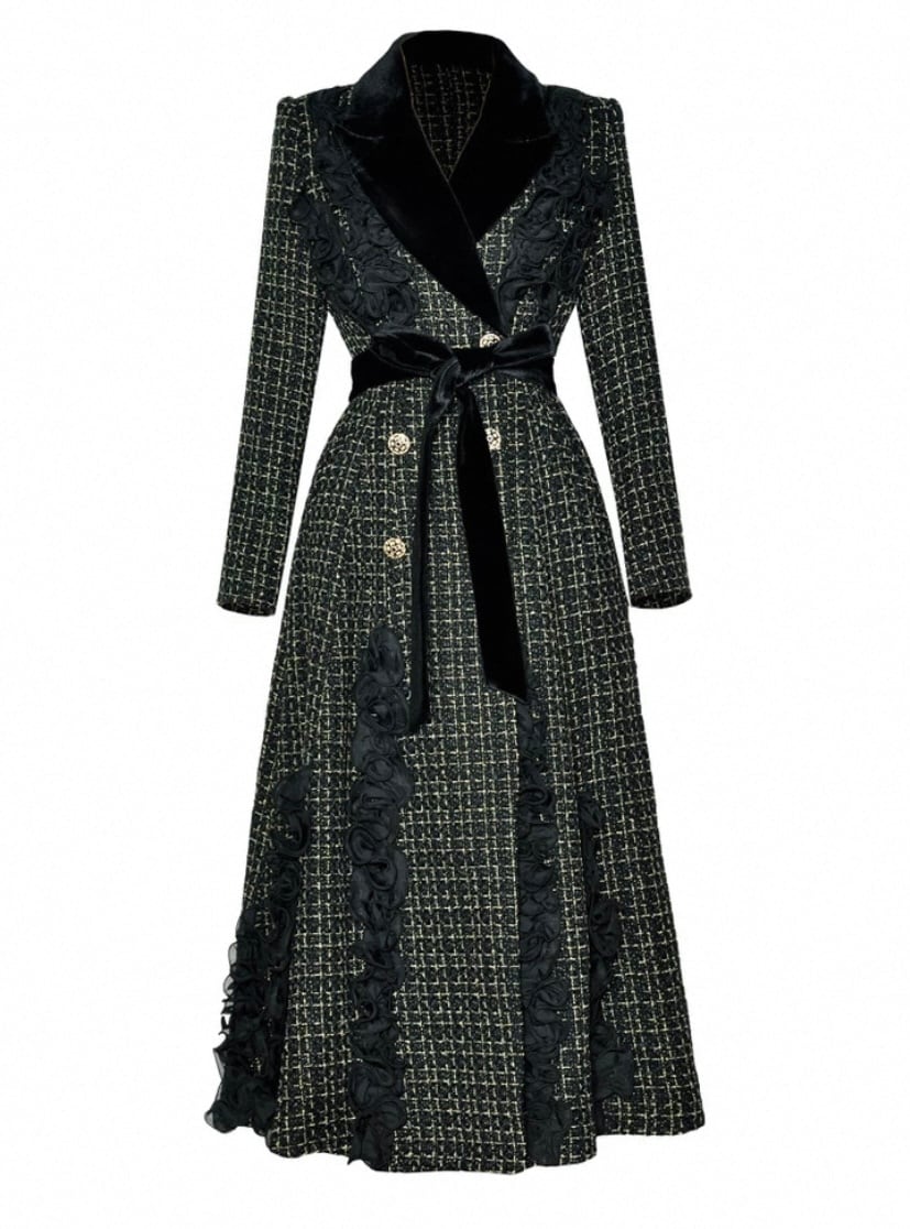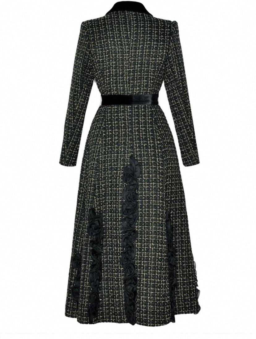 黒 ラメ ツイード ジャケット チェック、フリル アウター ロング ワンピース、カーディガン、ブルゾン コート、エレガント XL