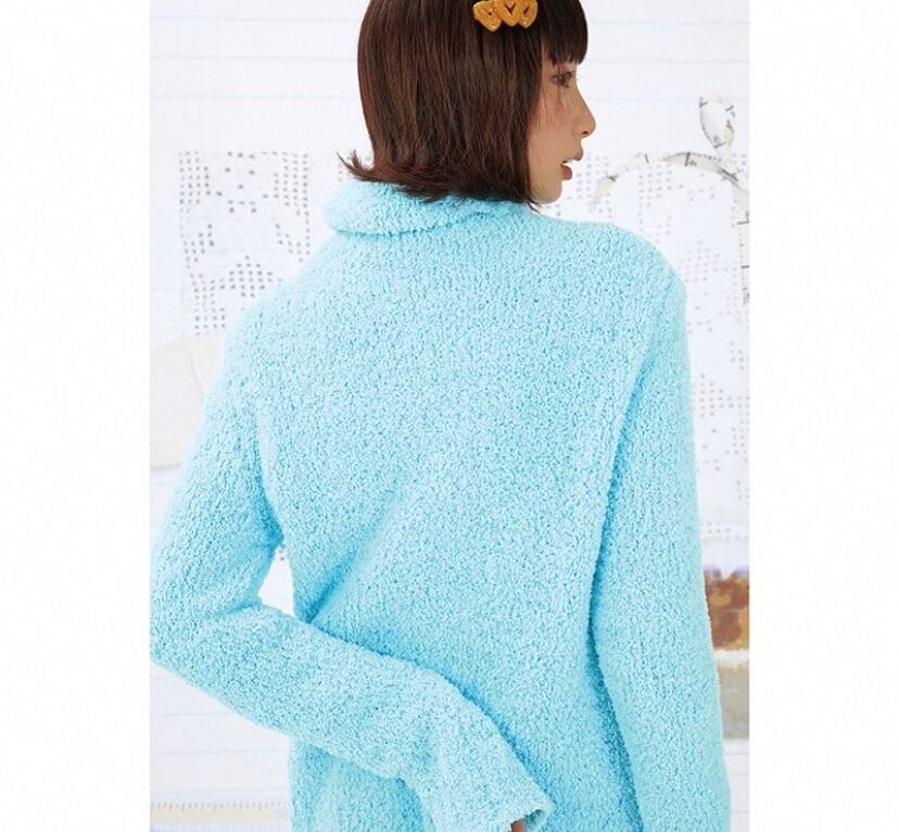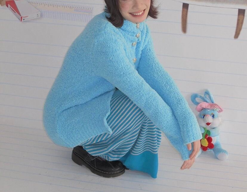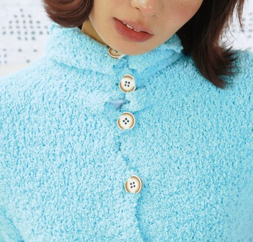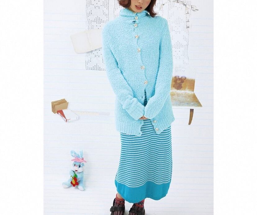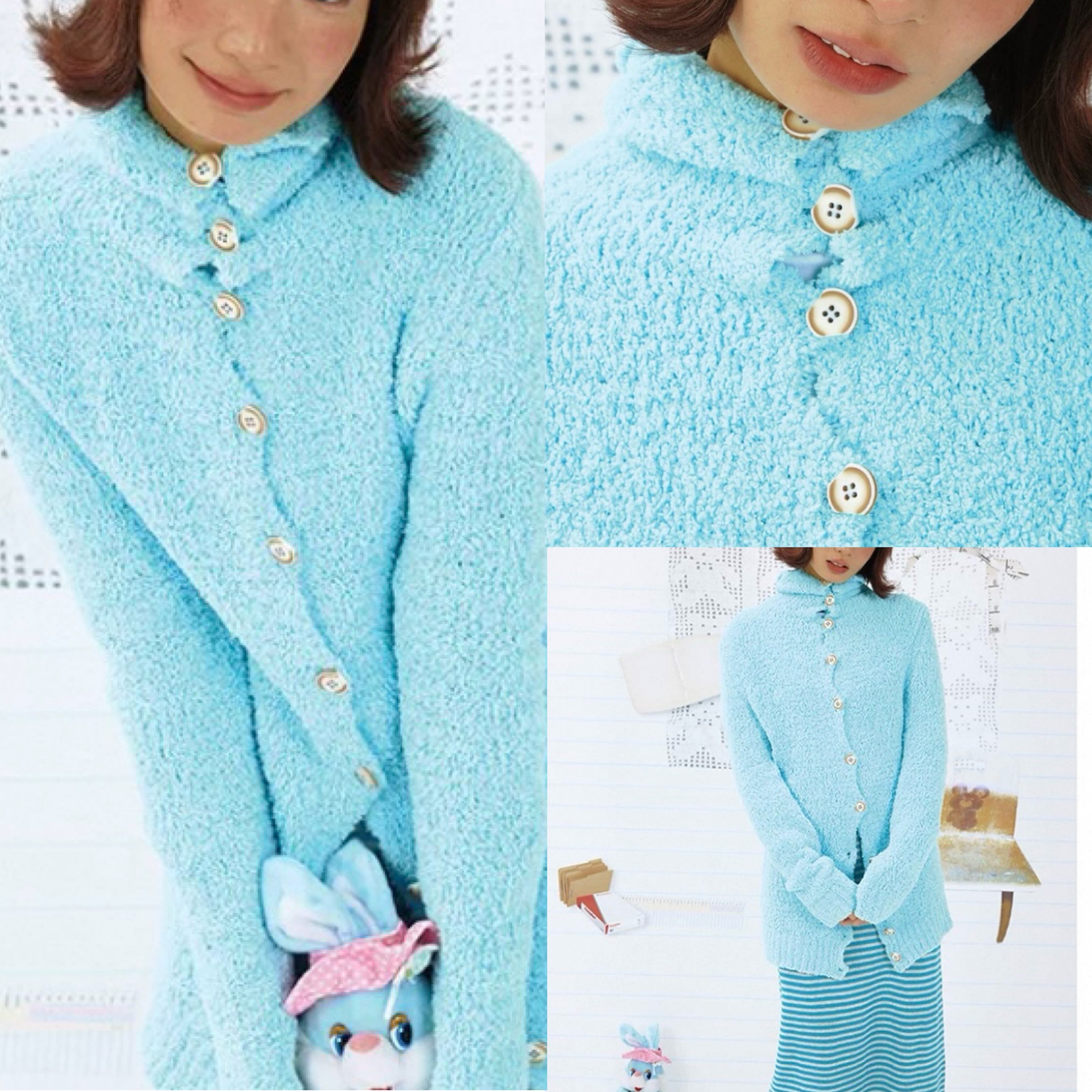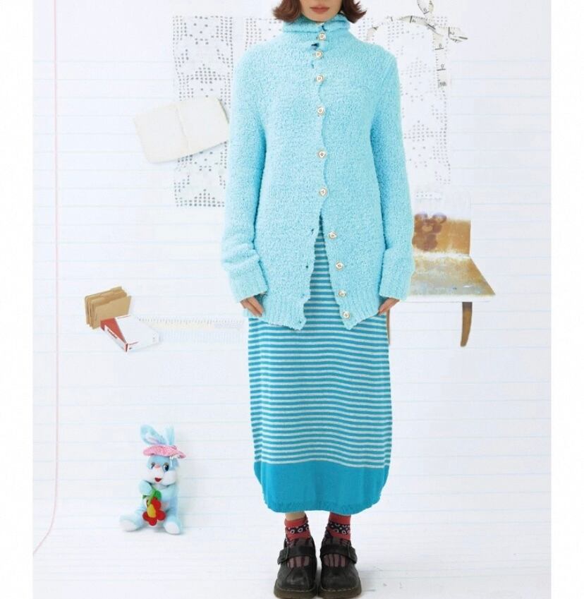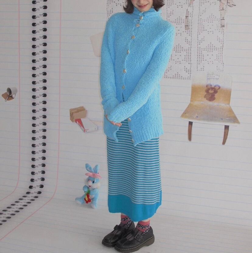 水色 ロング カーディガン、アウター、トップス、セーター、水、かわいい原宿、ハイネック ボタン ジャケット、カジュアル シンプル