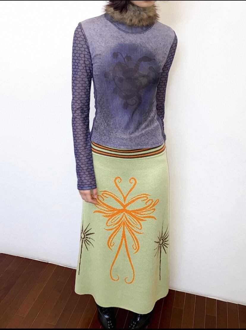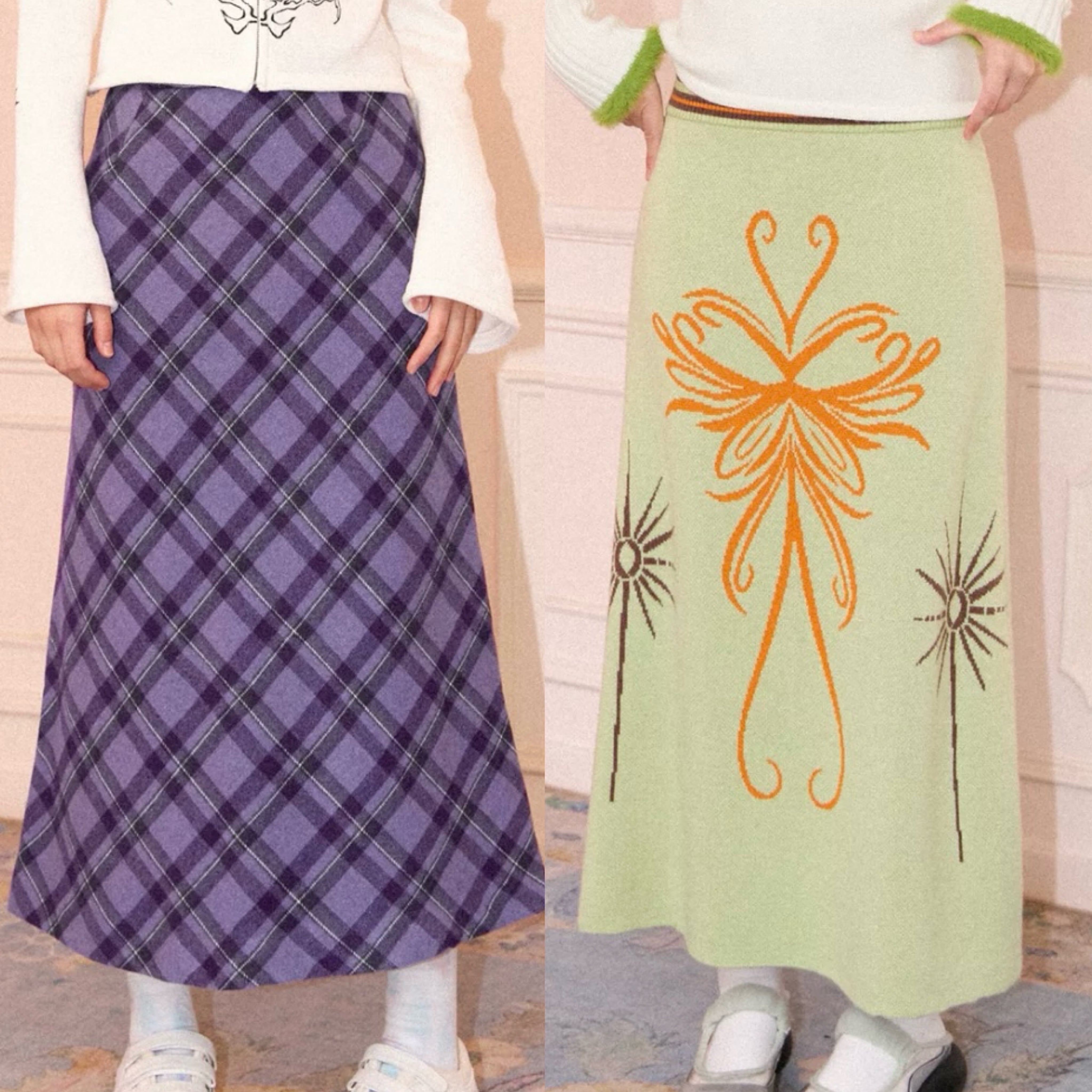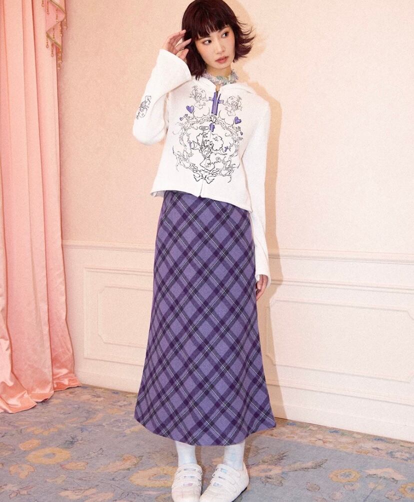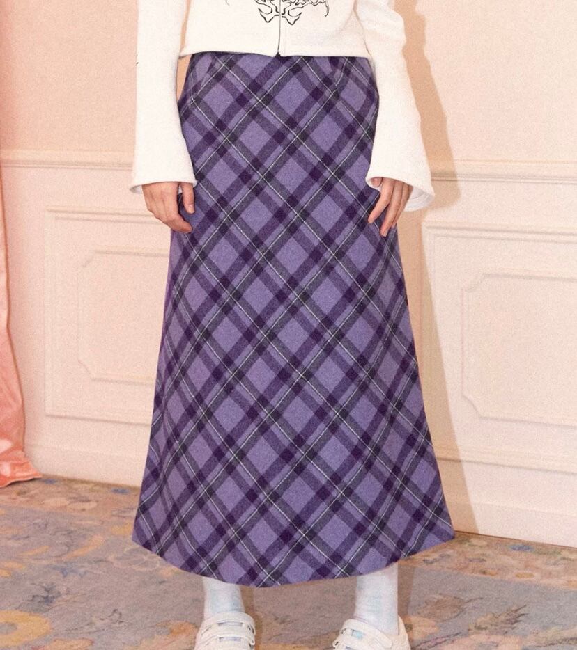 紫 チェック 緑 花柄、ボトムス タイト スカート 膝下 ロング マキシ 原宿 かわいい カジュアル