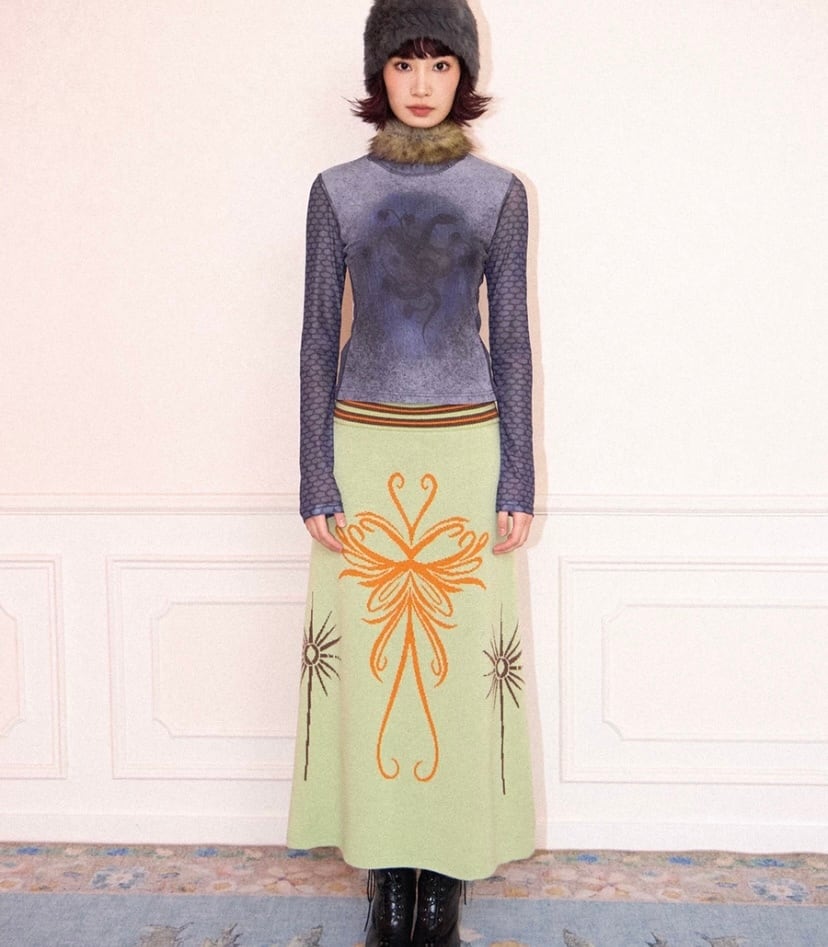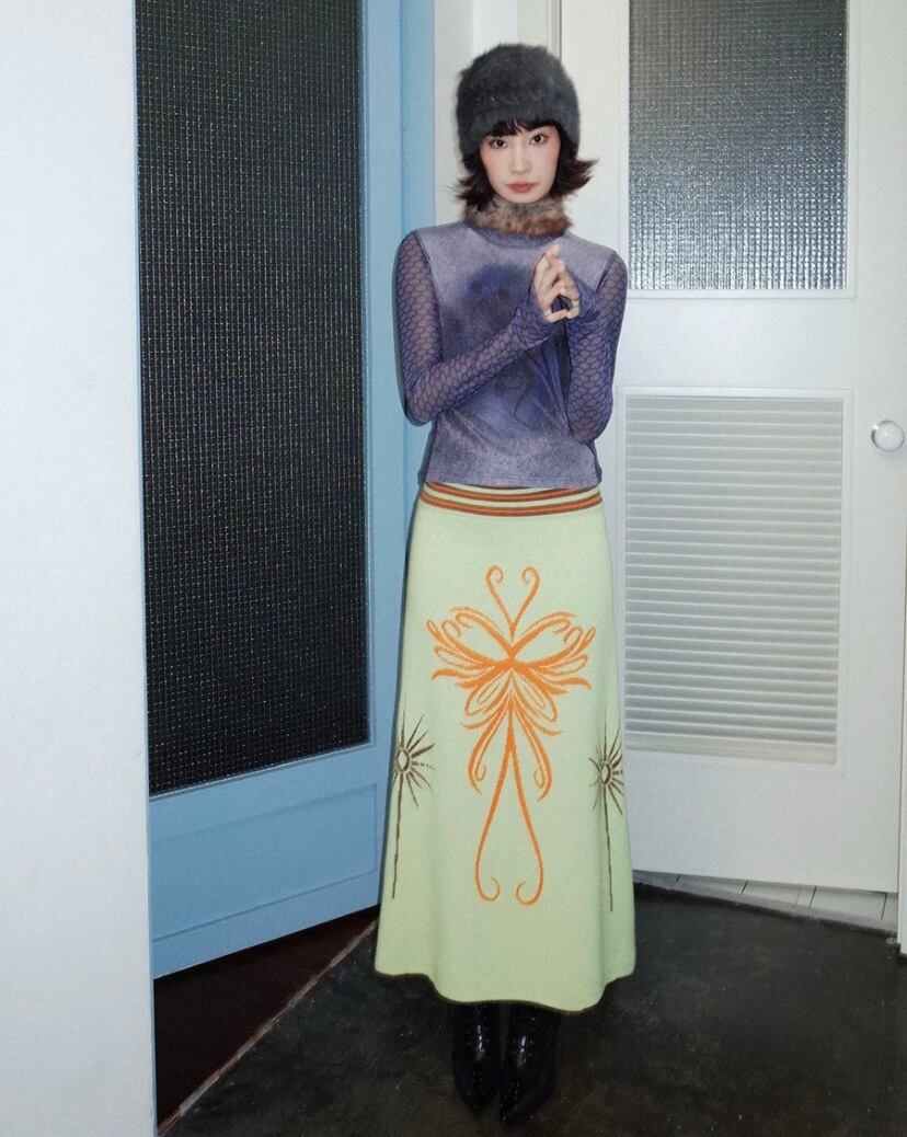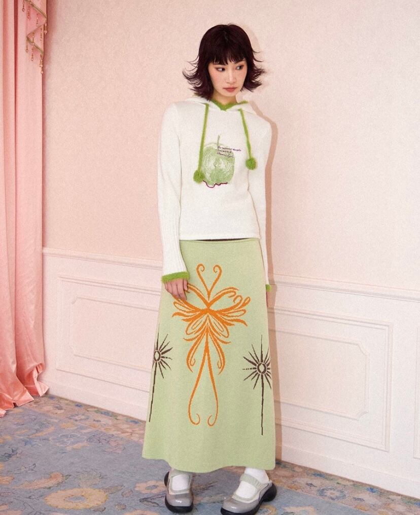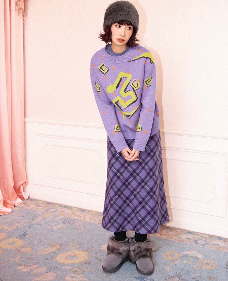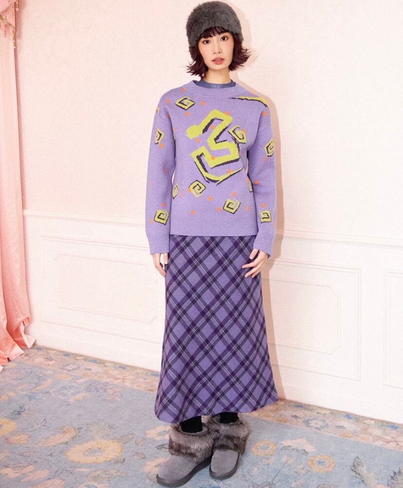 紫 チェック 緑 花柄、ボトムス タイト スカート 膝下 ロング マキシ 原宿 かわいい カジュアル