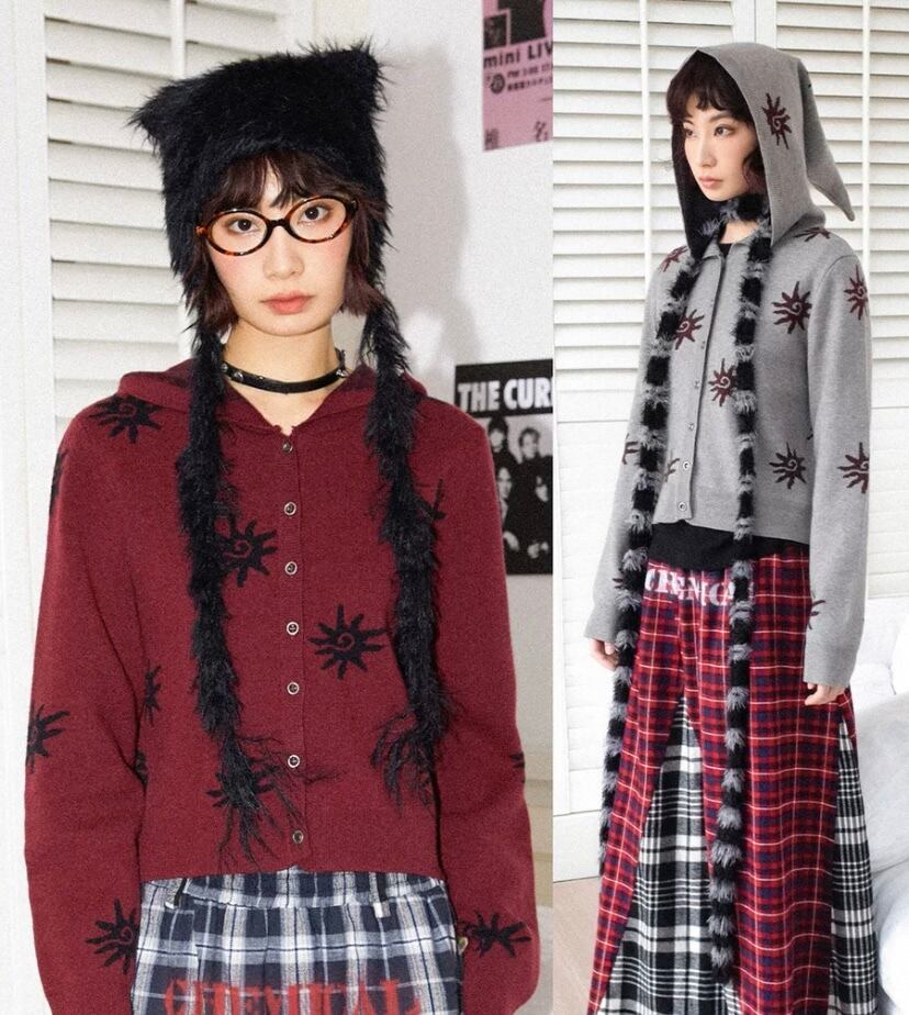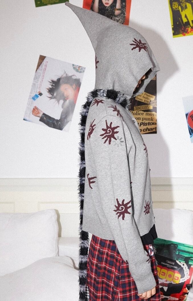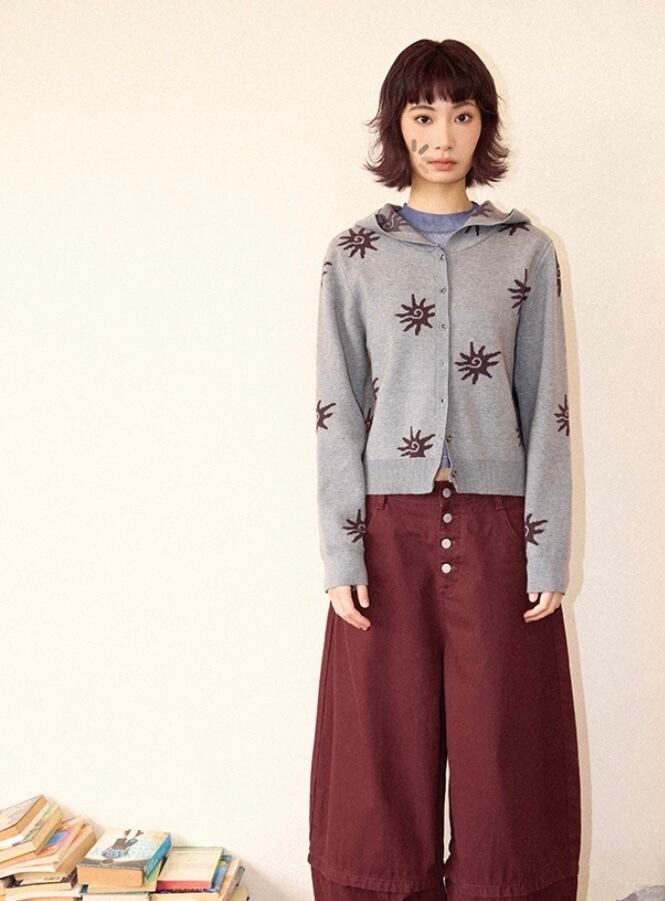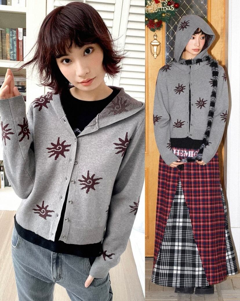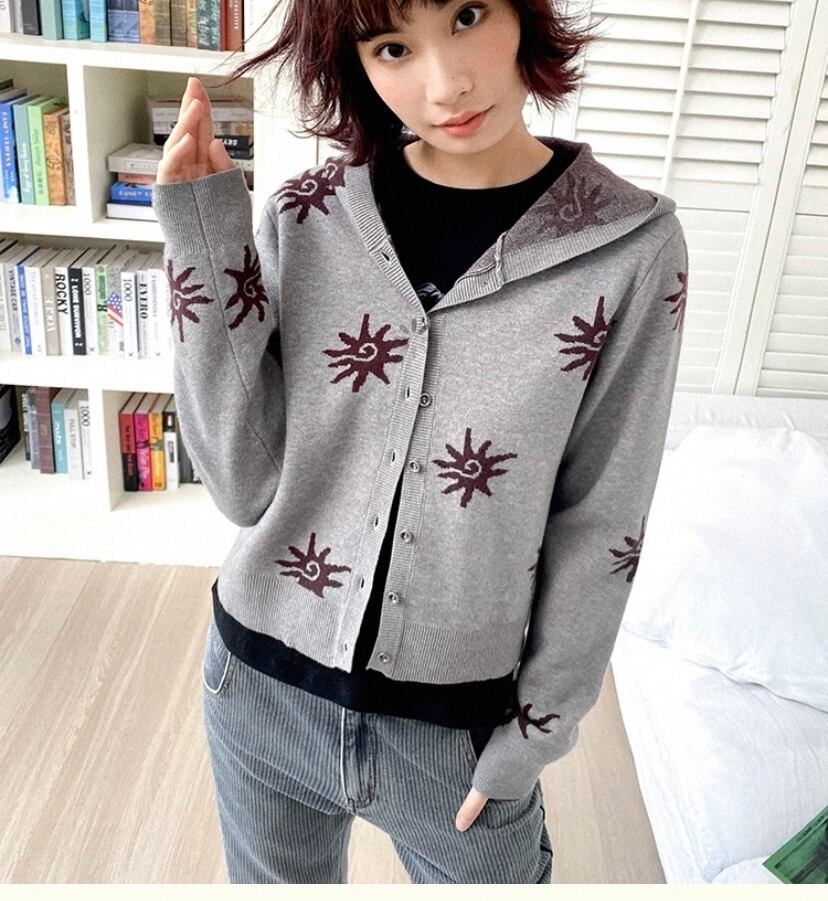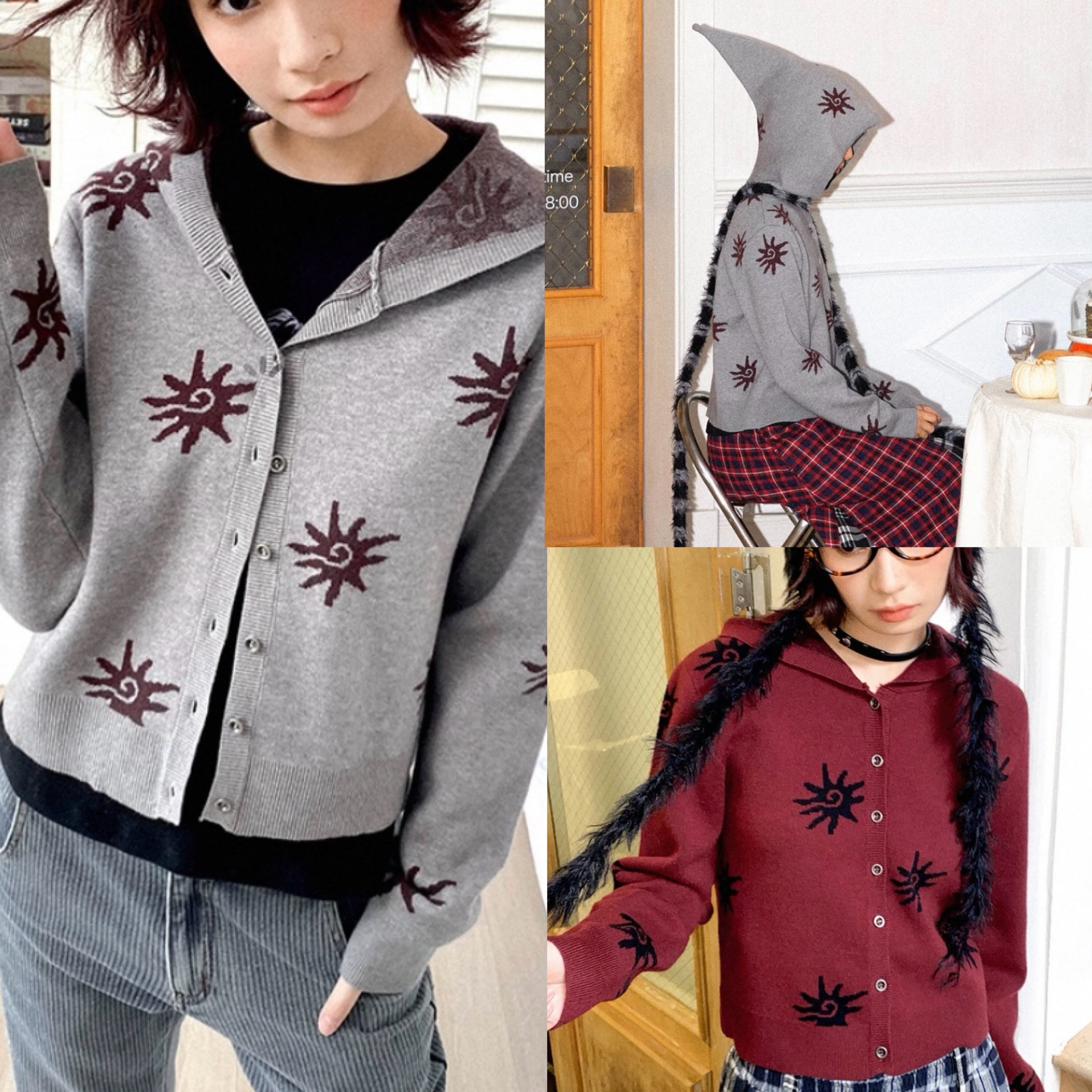 グレー 赤 花柄 フラワー パーカー、フード ジャケット、カーディガン、セーター、トップス、シンプル 原宿、使いやすい ストリート ショート