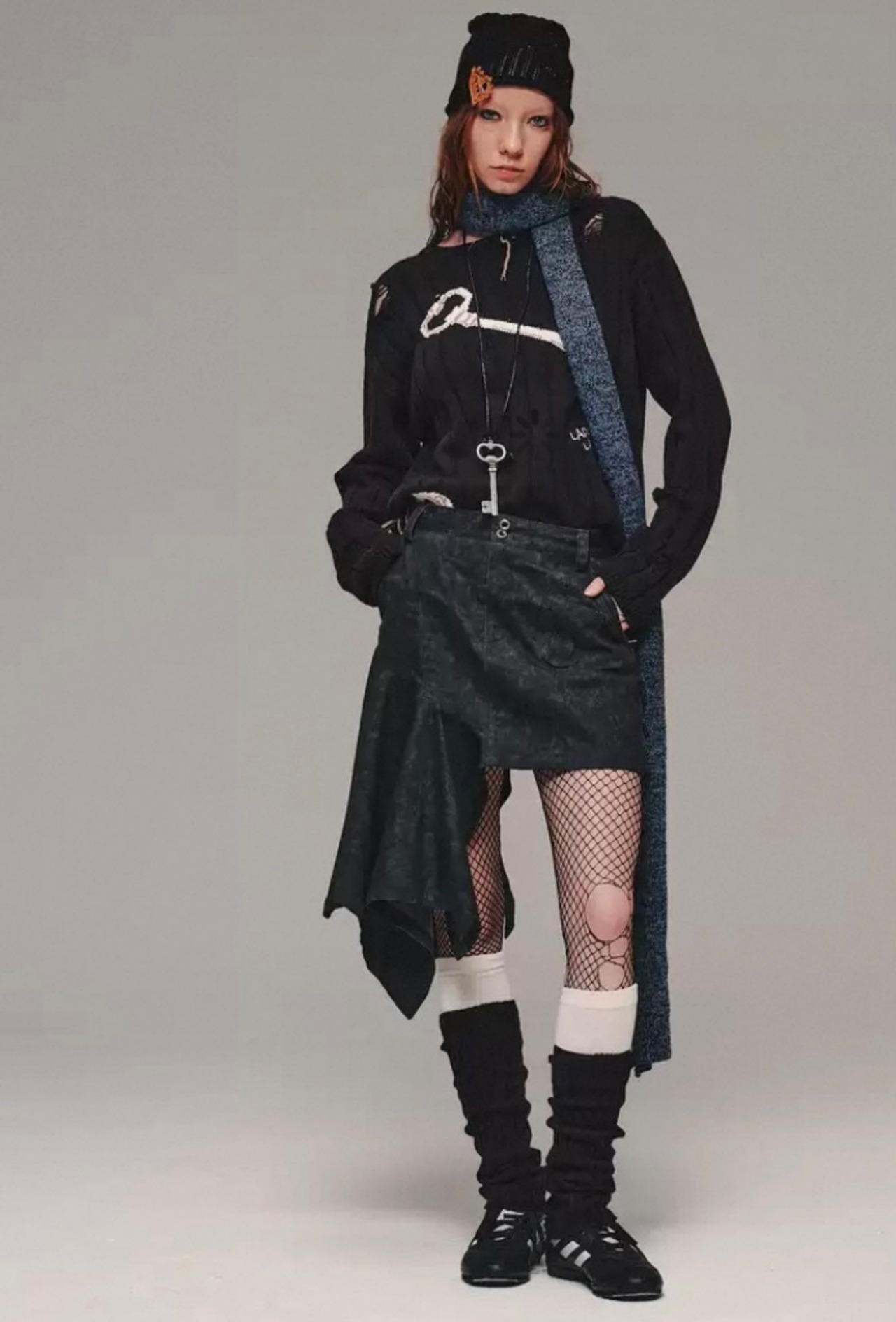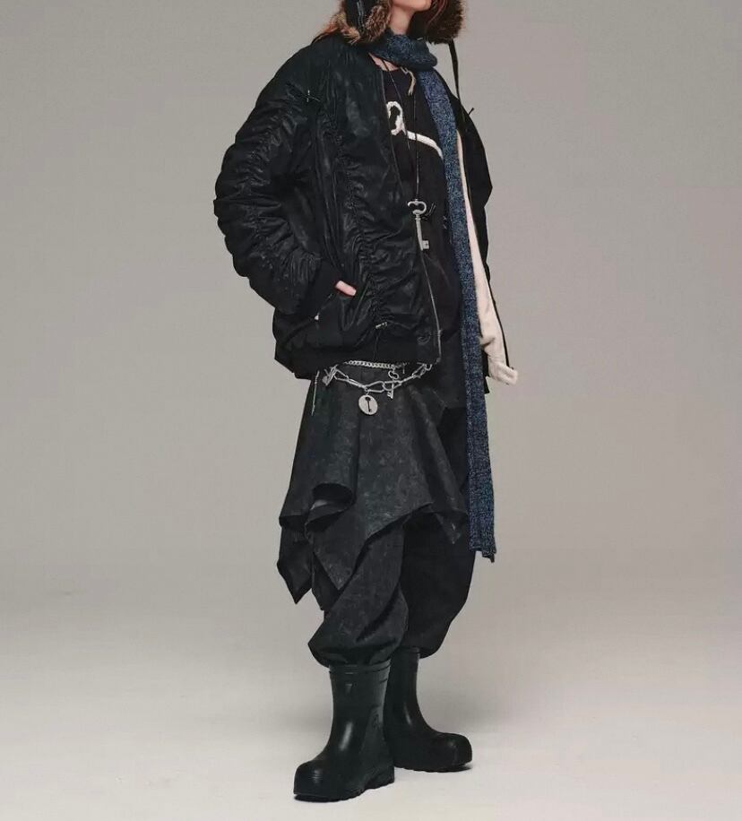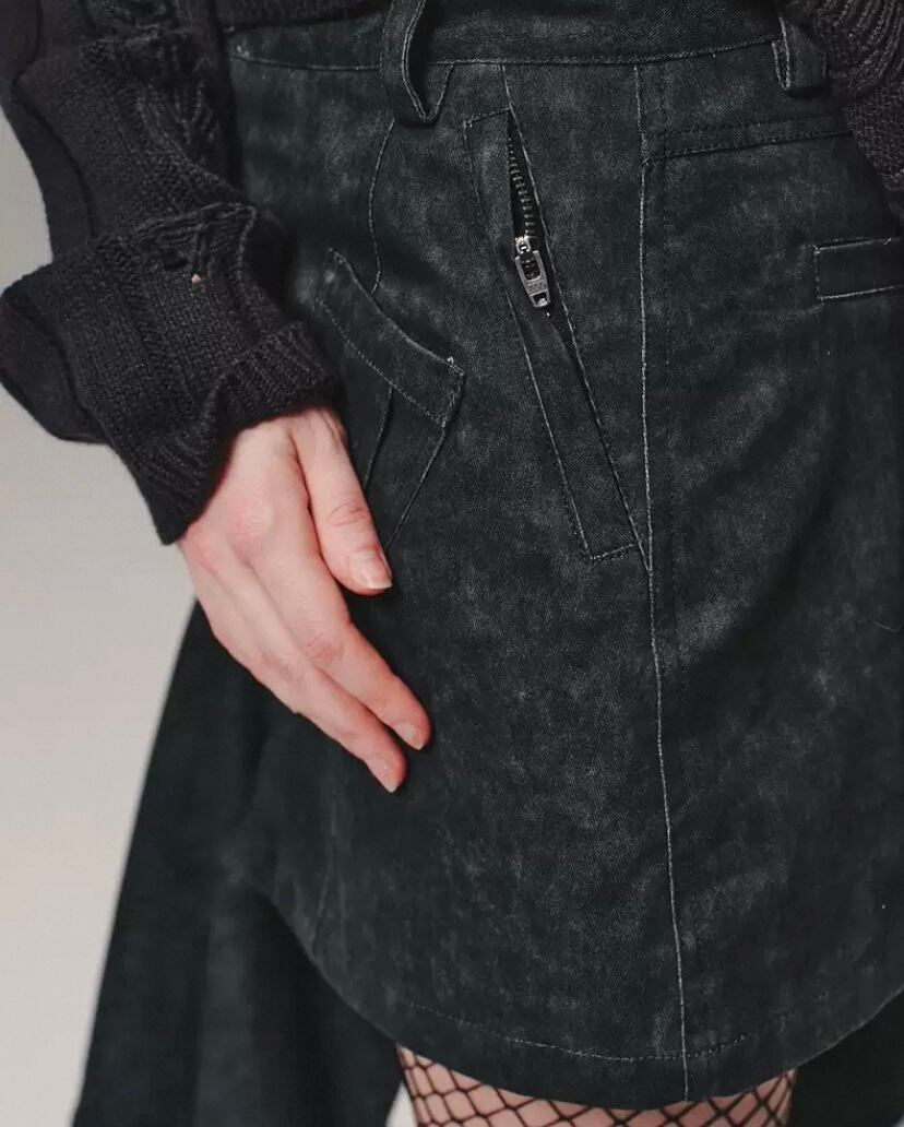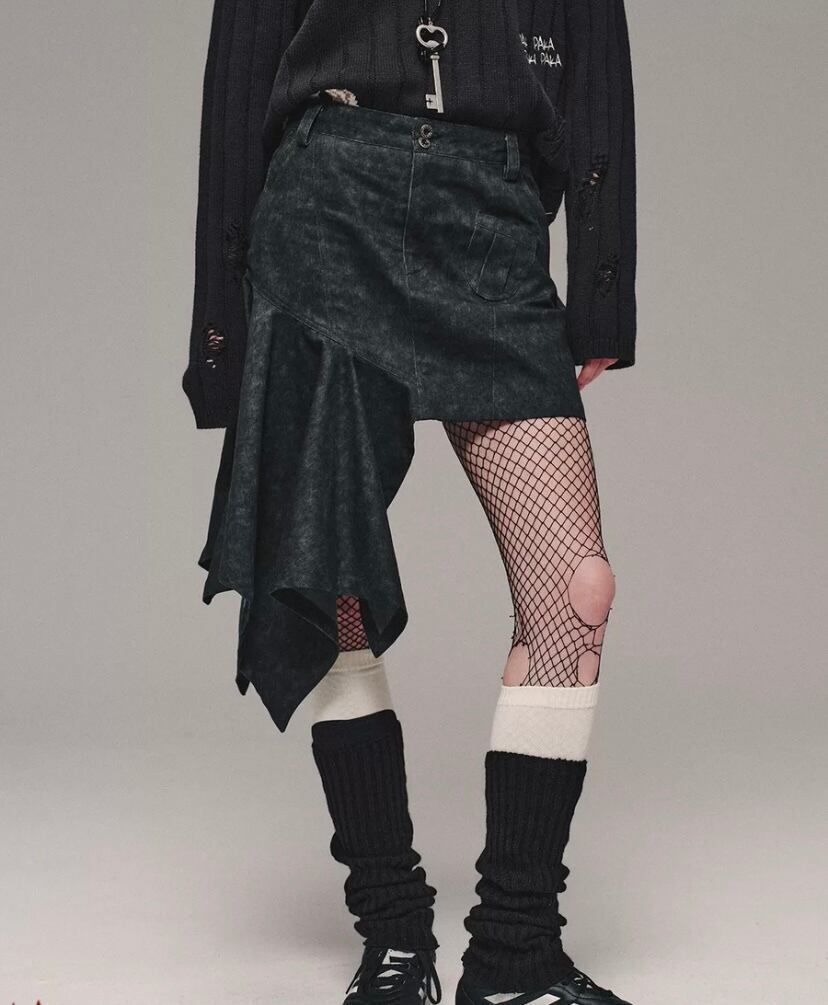 アシンメトリー、黒 ブラック ロック、重ね着 ミニスカート、ボトムス クラブ、ダンス、原宿、裏原宿、パンク かっこいい ワイルド レザー風 ショートパンツ デニム