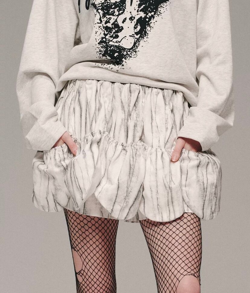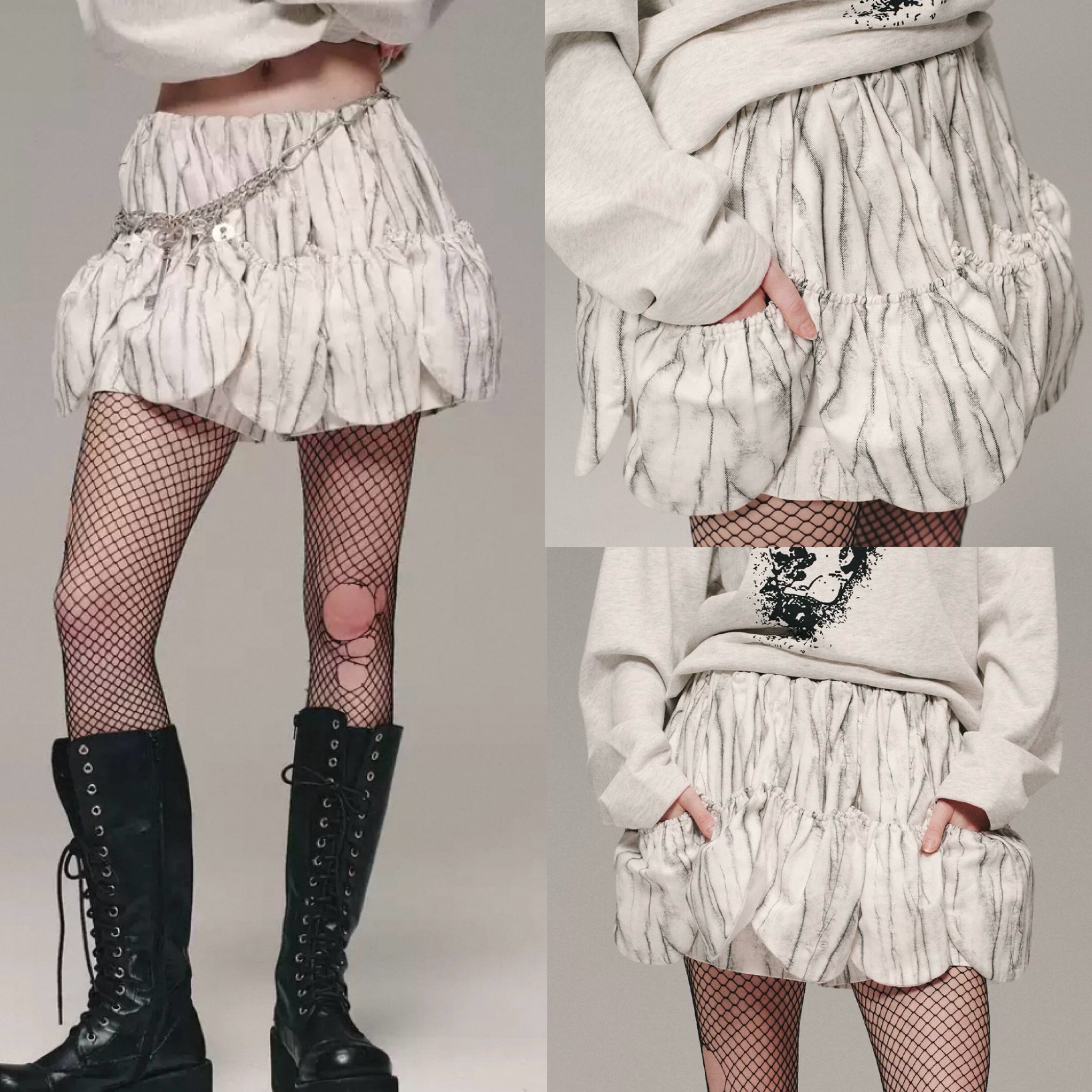 バルーン スカート ミニスカート ボトムス 白 ボーダー チェック。かわいい ショート パンツ カジュアル 原宿、ロック パンク