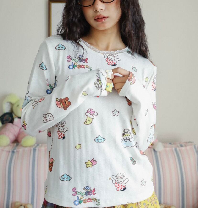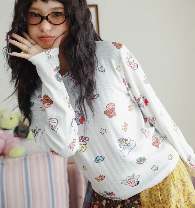 白 Tシャツ、エロボディ シャツ、ブラウス、トップス、原宿、ガーリー 落書き、かわいい シンプル 総柄