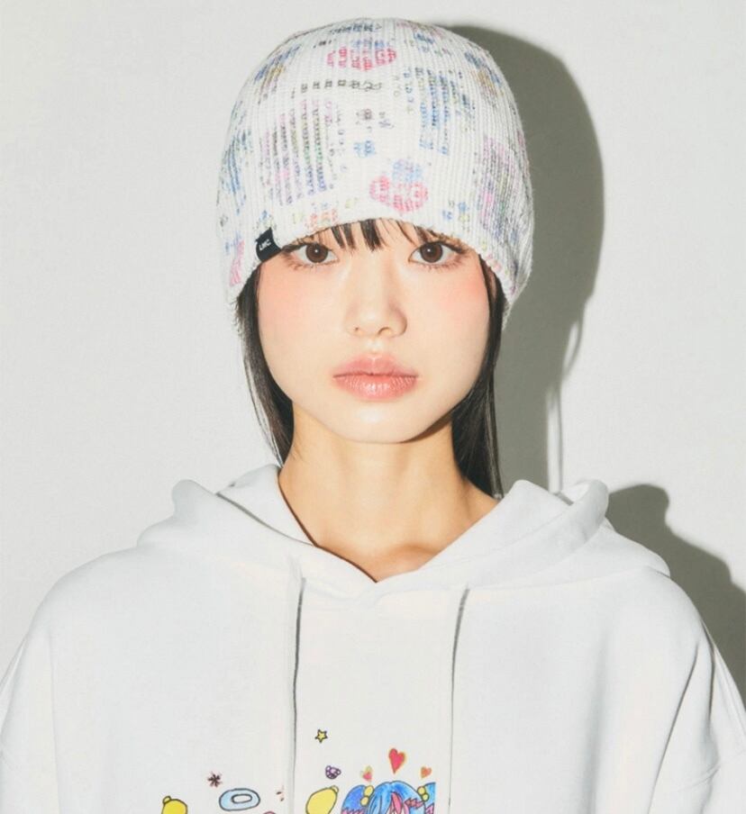 カラフル ピンク かわいい ニット 落書き 帽子 原宿 ストリート、白 ハート 水色、黄色 ガーリー、カジュアル 小物 ヘアバンド