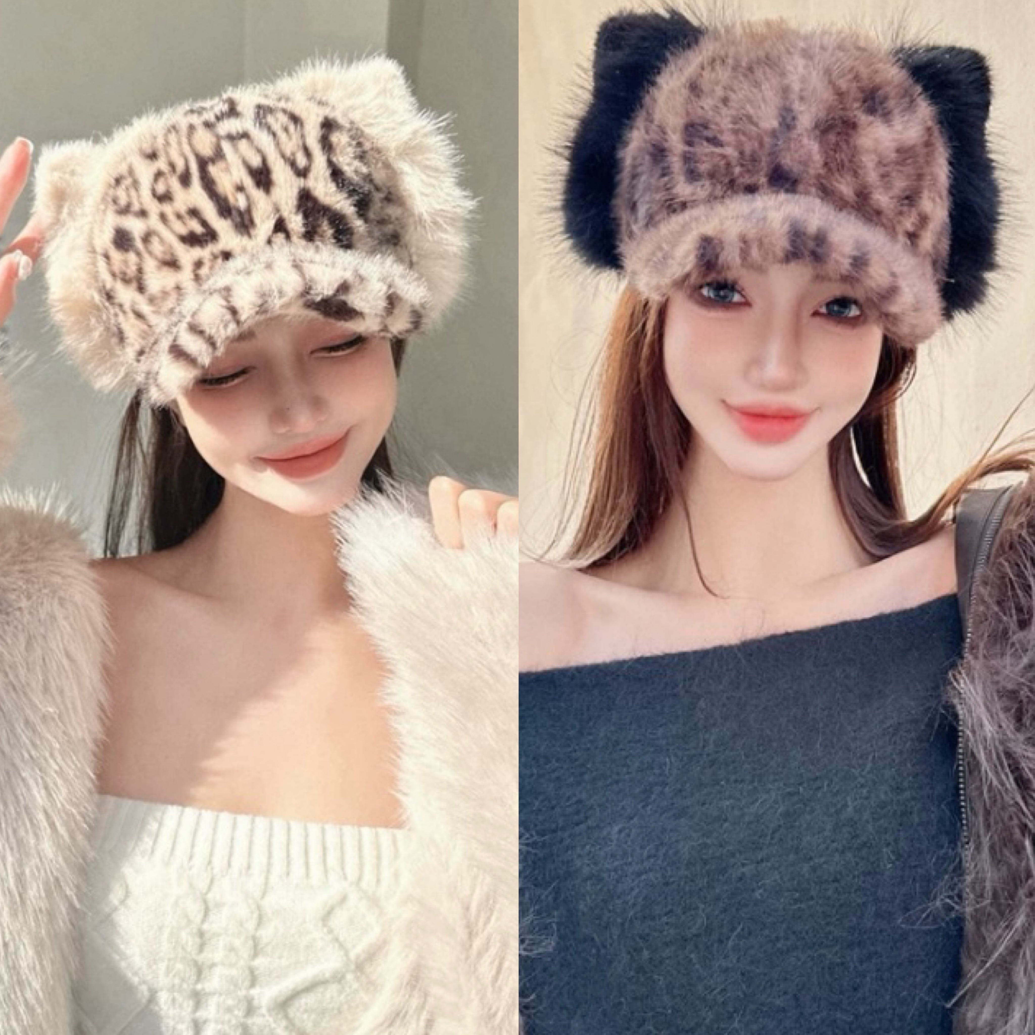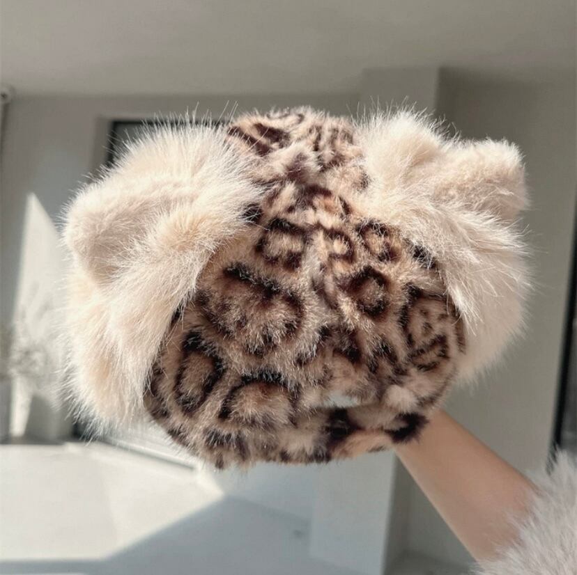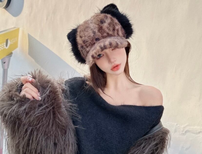 ファー 猫耳 ベージュ 黒 茶色 豹柄 レオパード 黒 リボン 耳当て カチューシャ ファー カラフル ピンク かわいい ニット 落書き 帽子 原宿 ストリート、白 ハート 水色、黄色 ガーリー、カジュアル 小物 ヘアバンド キャップ 帽子 リボン ファー ねこみみ