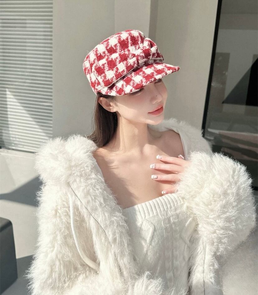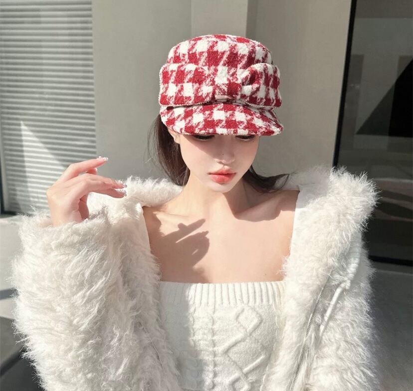 赤 黒 ベレー帽 キャスケット チェック 黒 リボン 耳当て カチューシャ ファー カラフル ピンク かわいい ニット 落書き 帽子 原宿 ストリート、白 ハート 水色、黄色 ガーリー、カジュアル 小物 ヘアバンド キャップ 帽子 リボン ファー