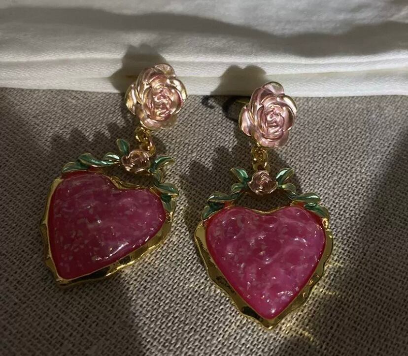 ハート ゆらゆら ロング ピンク バラ 花 緑