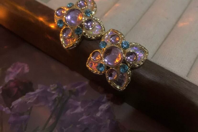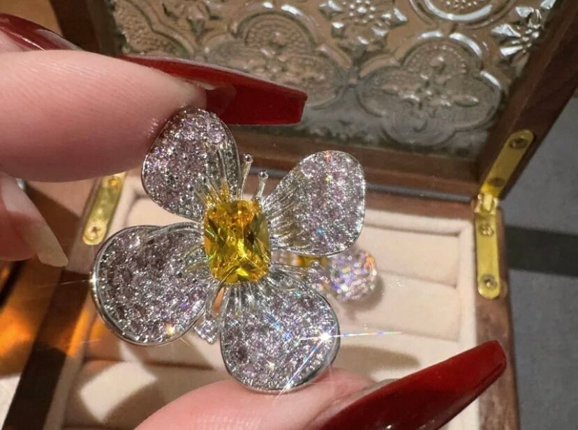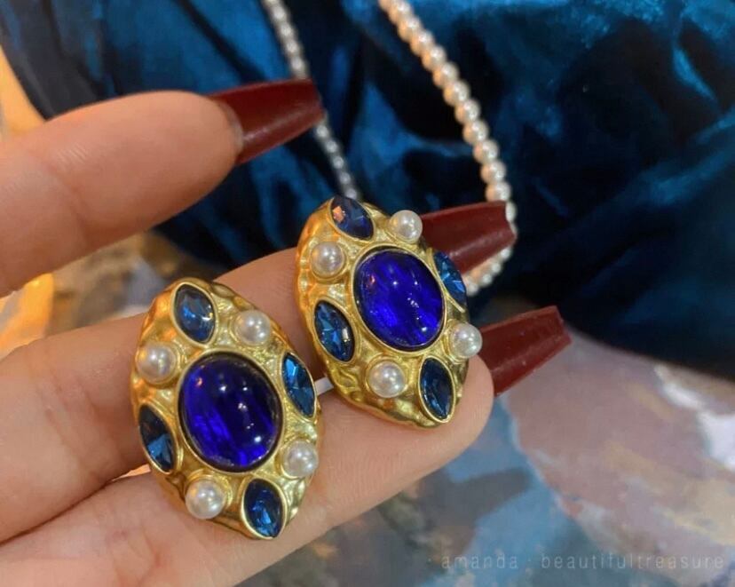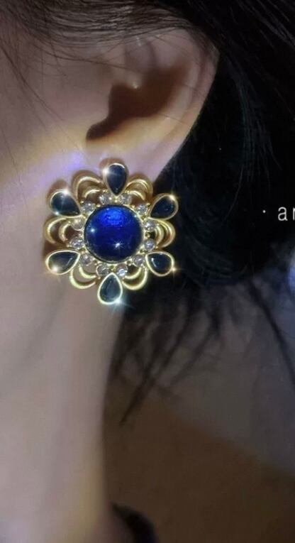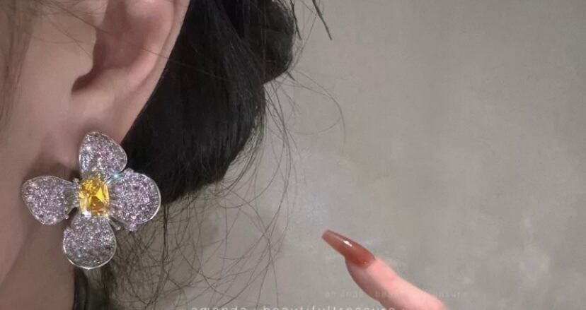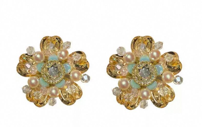 花 フラワー 水色 ブルー ネイビー ビーズ 黄色 ラインストーン