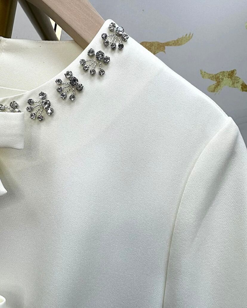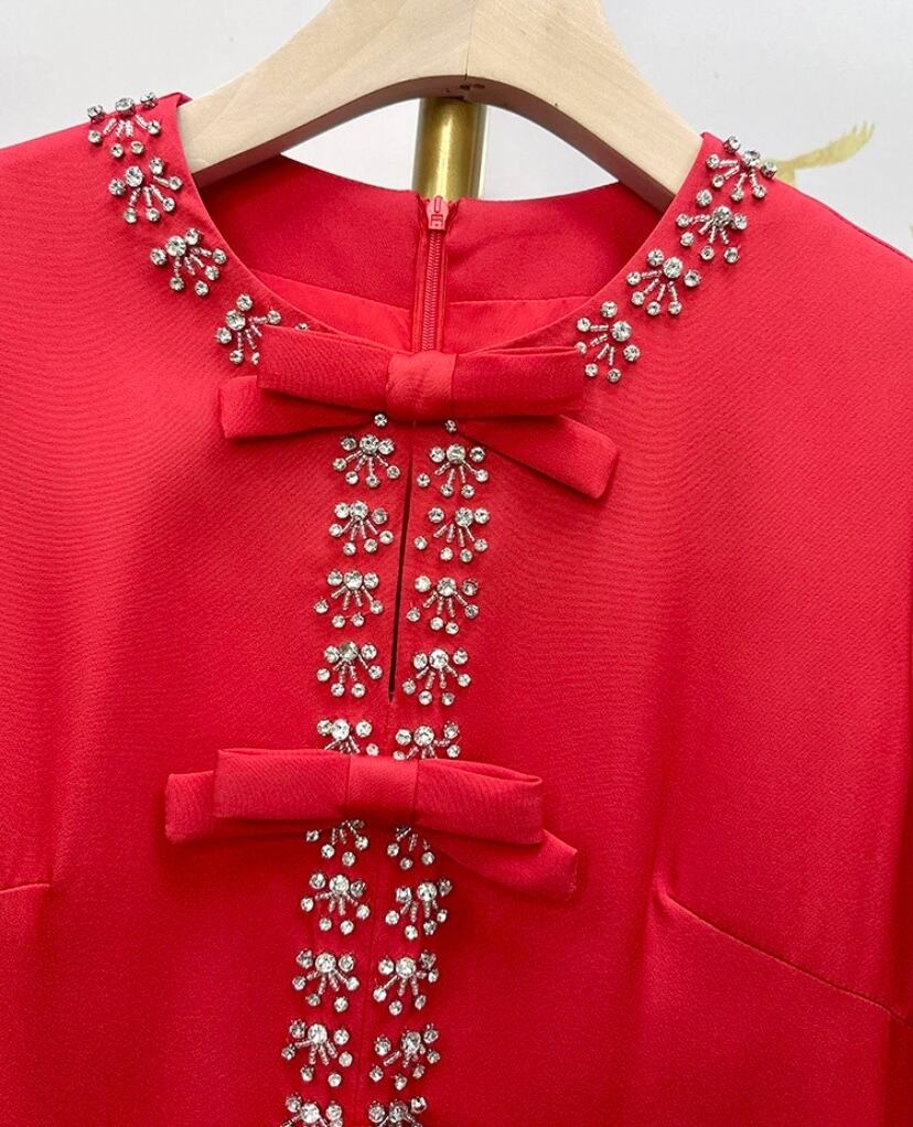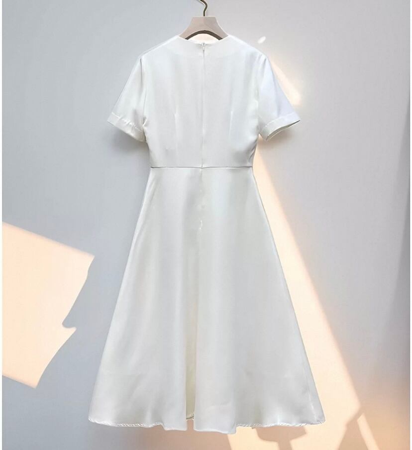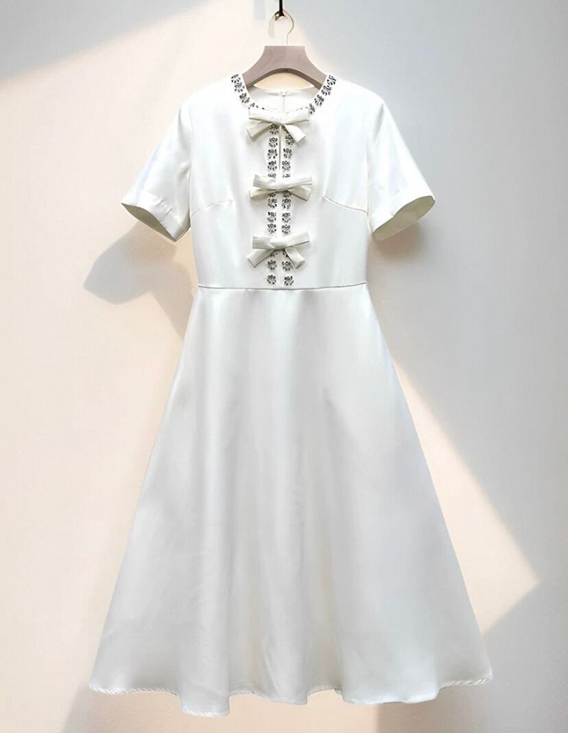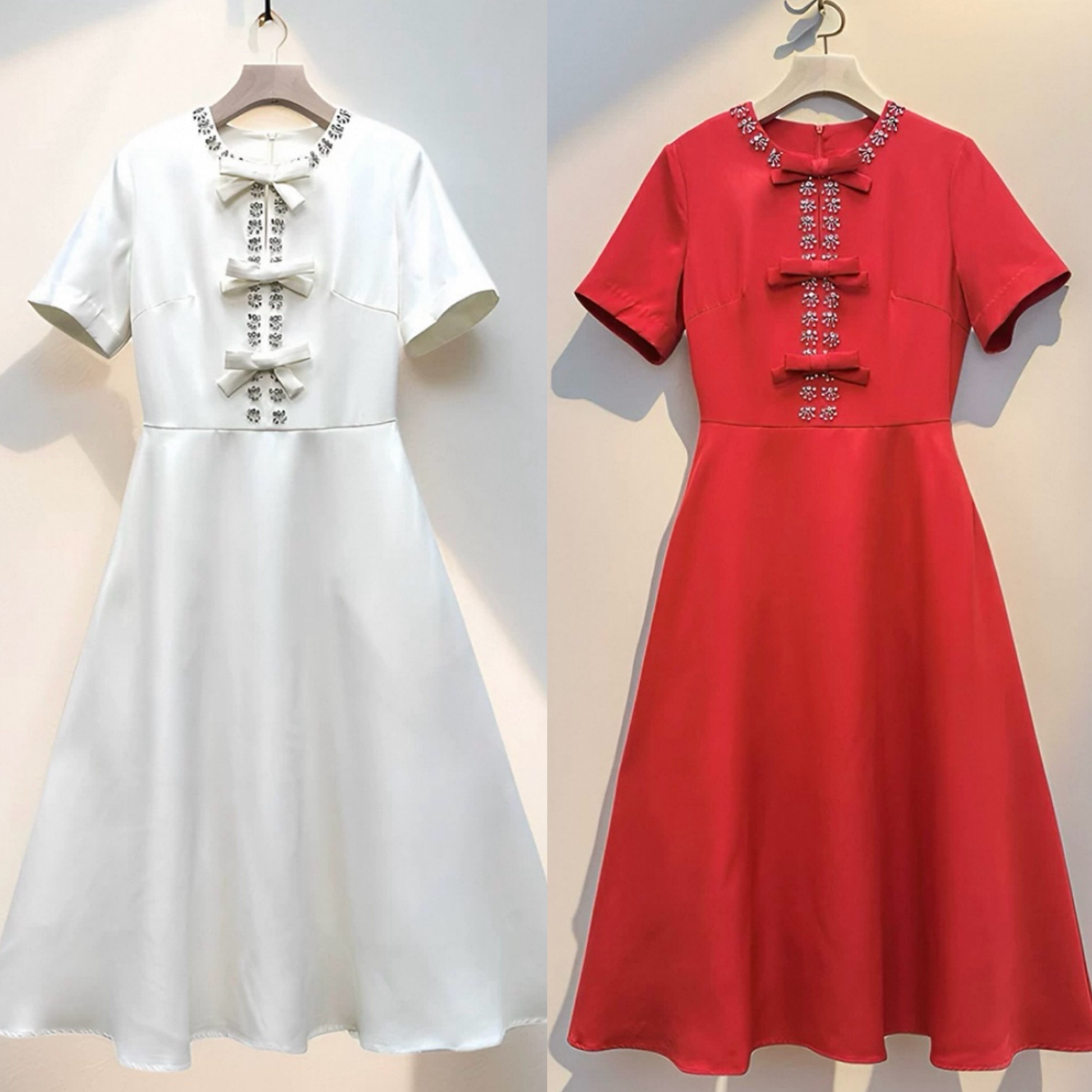 白 赤 ホワイト リボン、エレガント、ビーズ、ラインストーン、パーティードレス、エレガント、お嬢様、銀座 XL 表参道、きらきら ネックレス