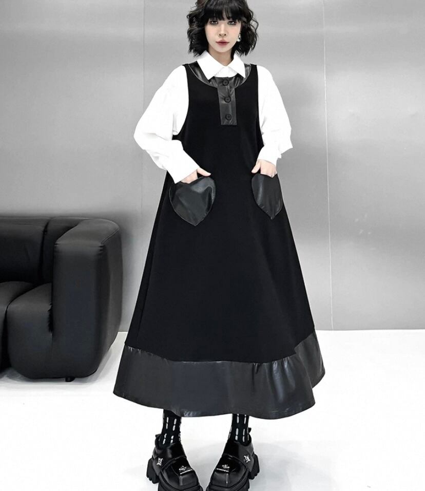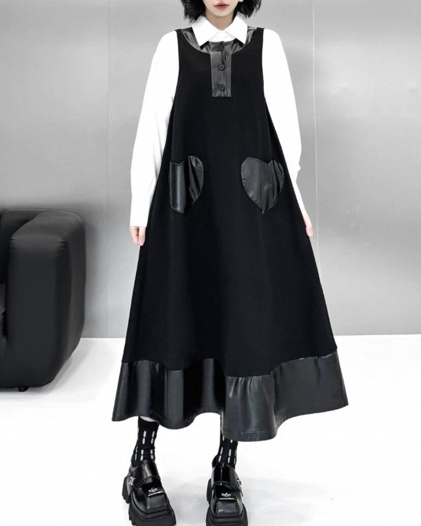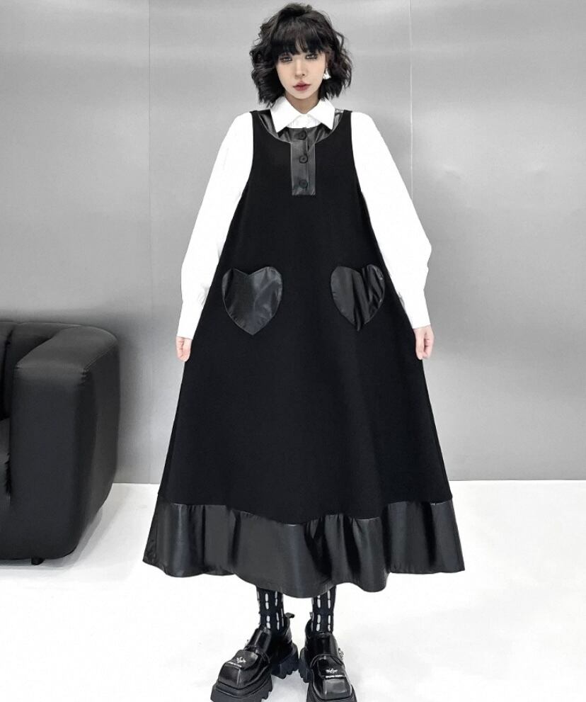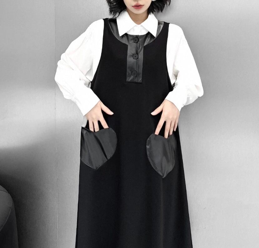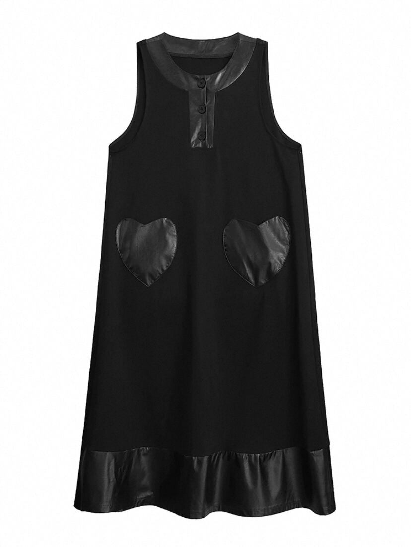 黒 ブラック フレアスカート ワンピース ハート ポケット モード カジュアル シンプル